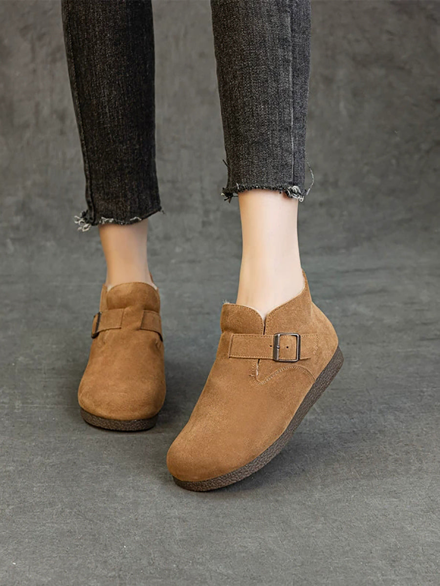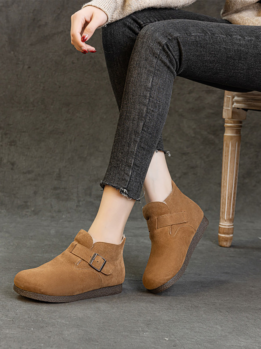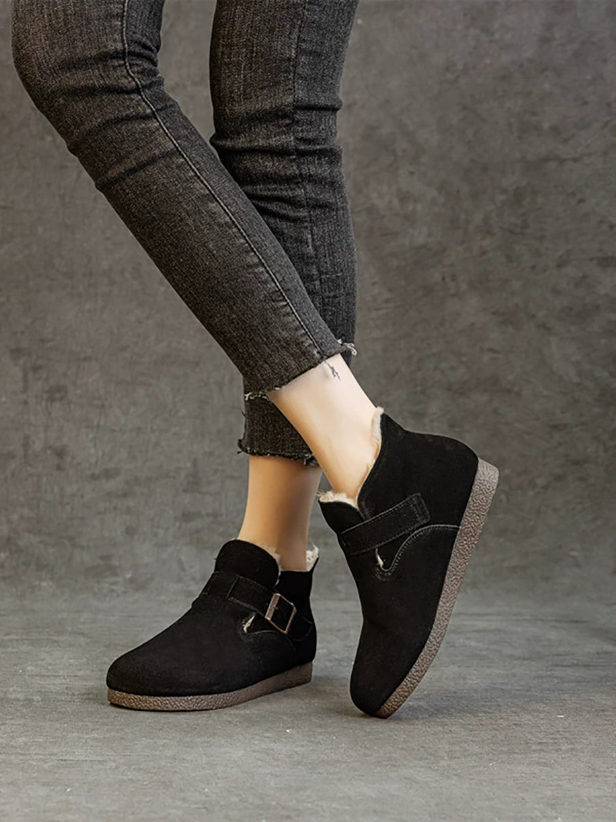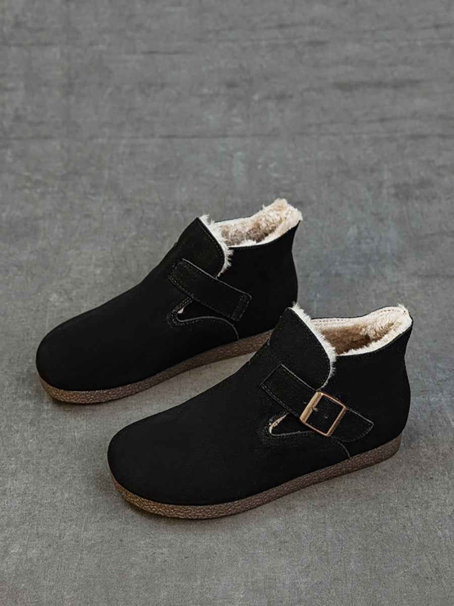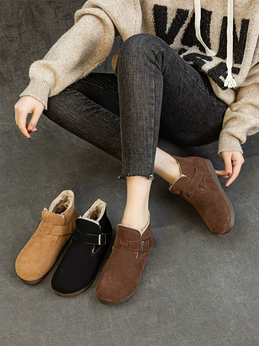 Sapatos femininos de inverno em couro legítimo com forro de lã.