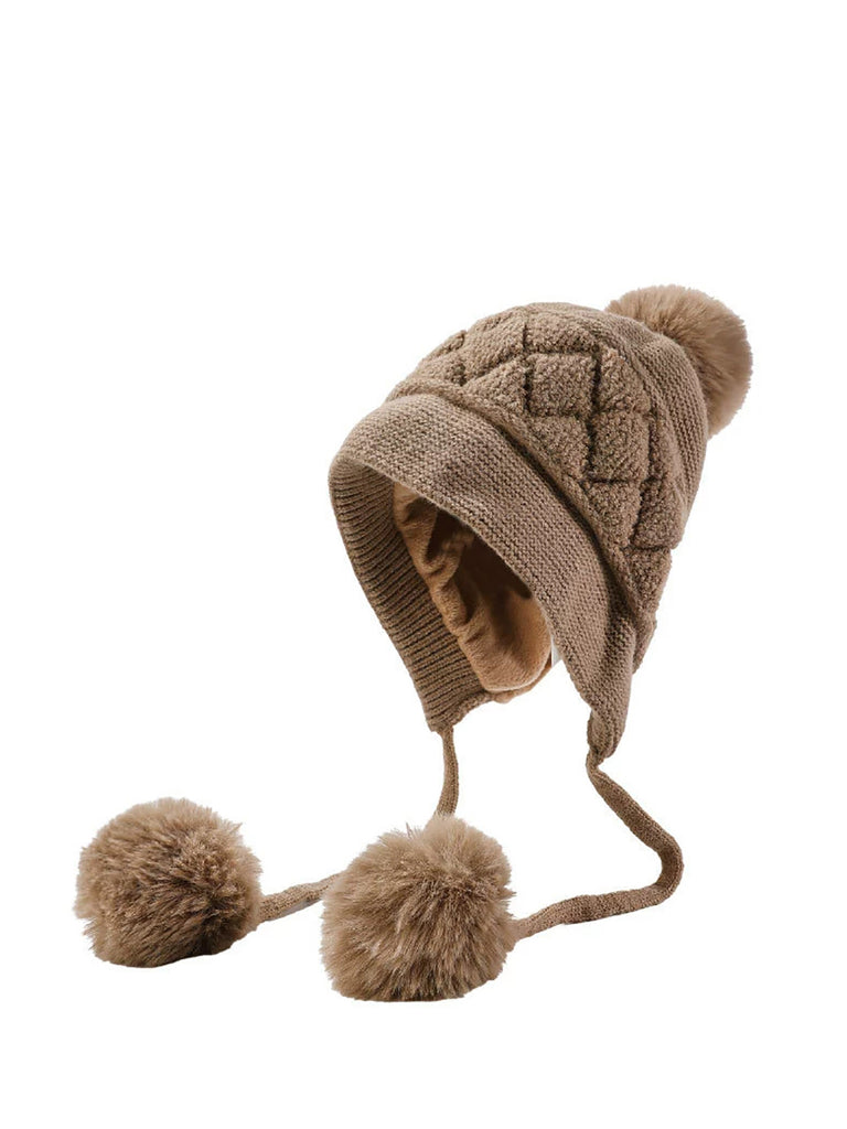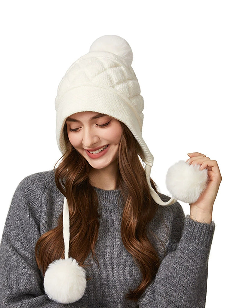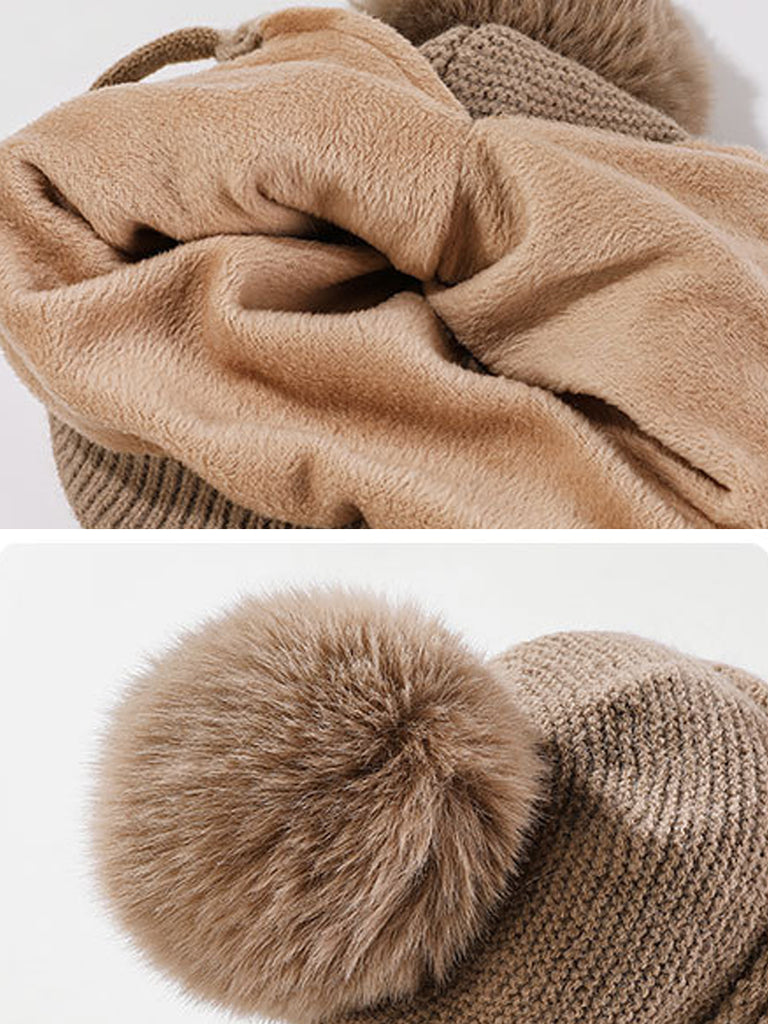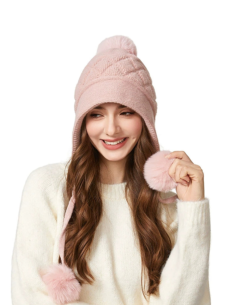 Gorro de malha feminino com bola de pelo de inverno para manter aquecido