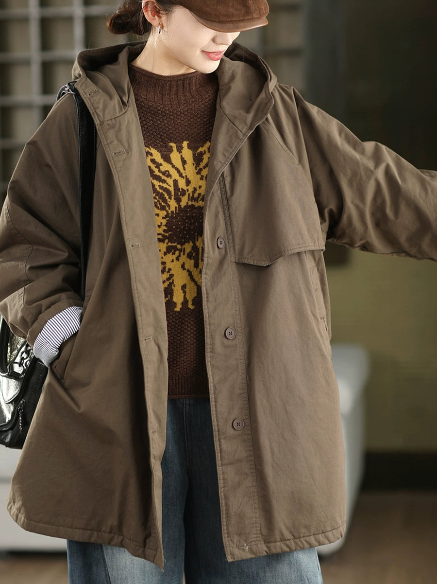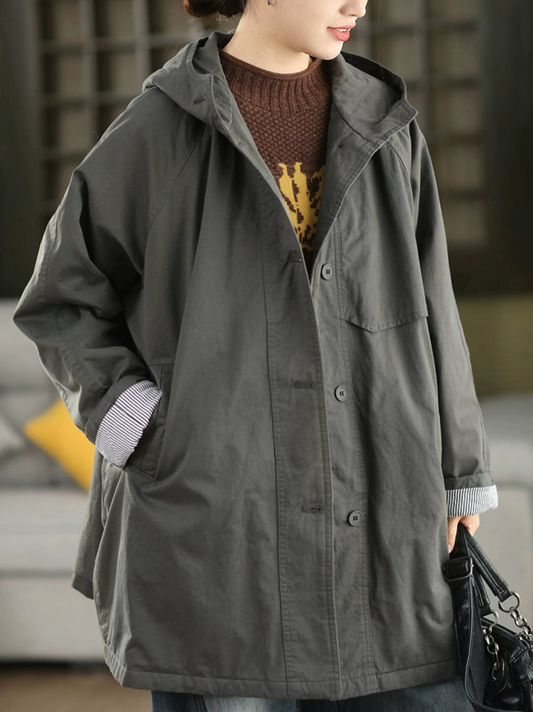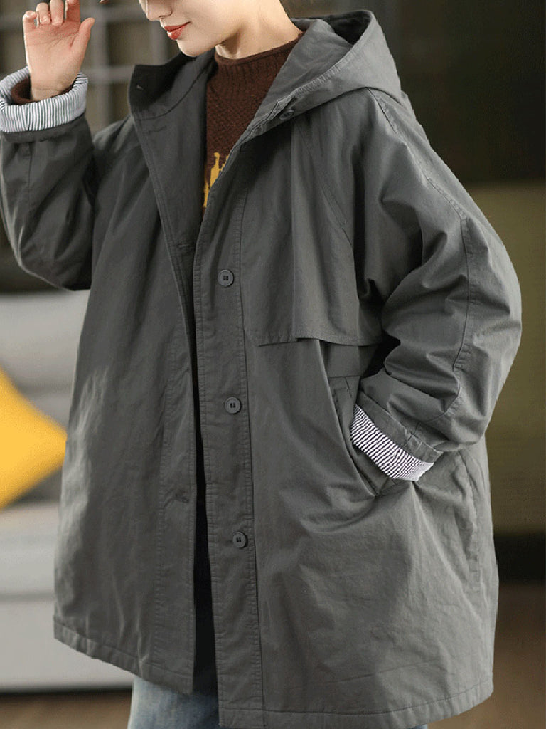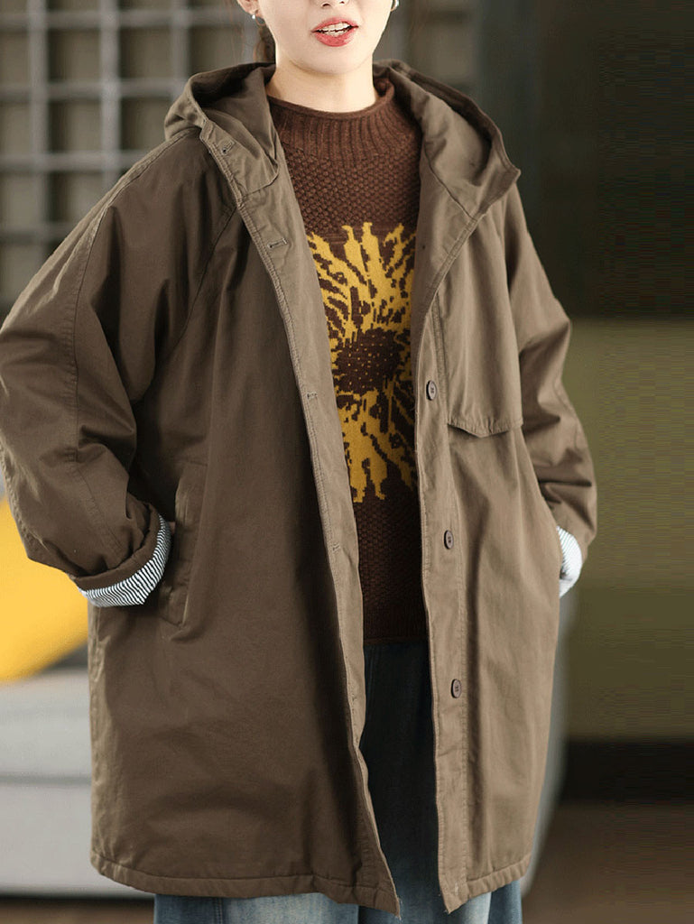 Casaco feminino de inverno com capuz acolchoado, cor lisa, 100% algodão.