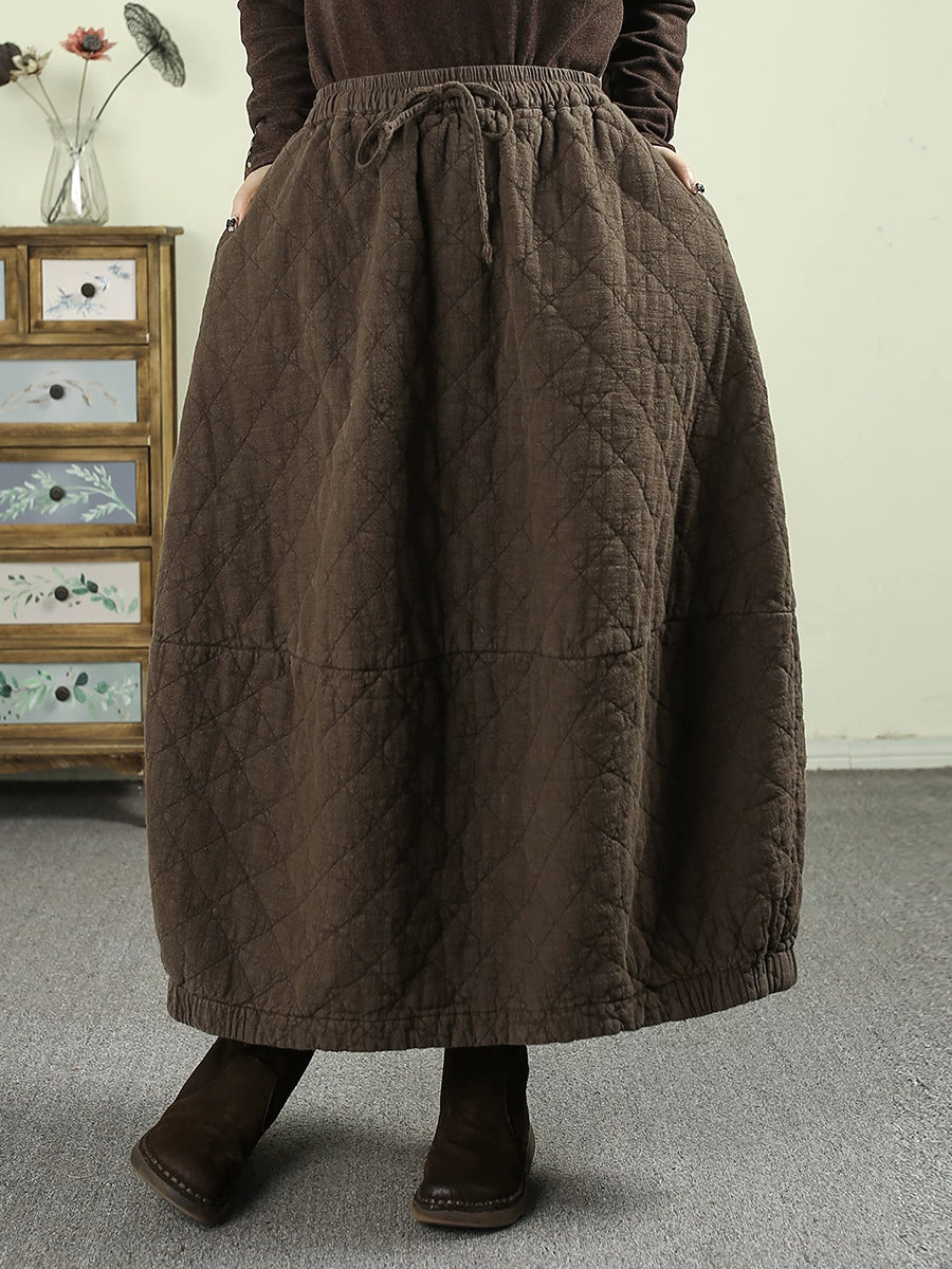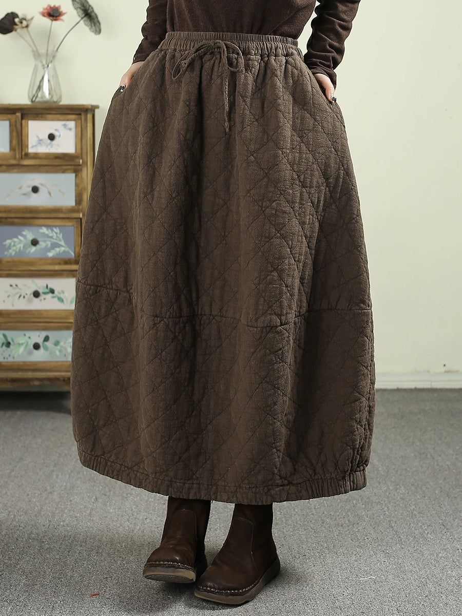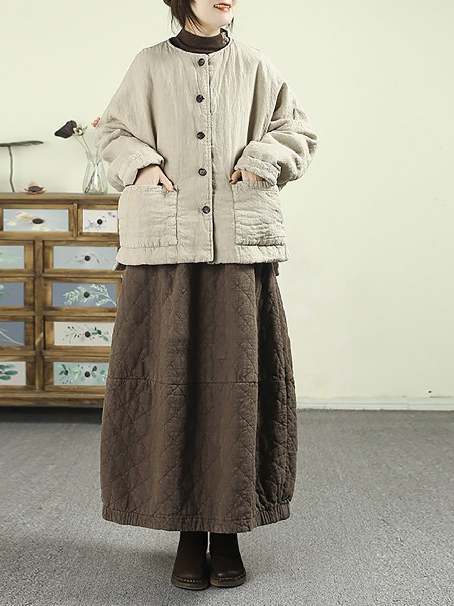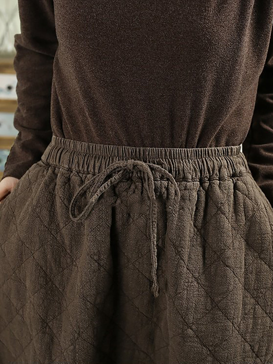Saia acolchoada feminina de inverno, cor lisa, 100% linho.