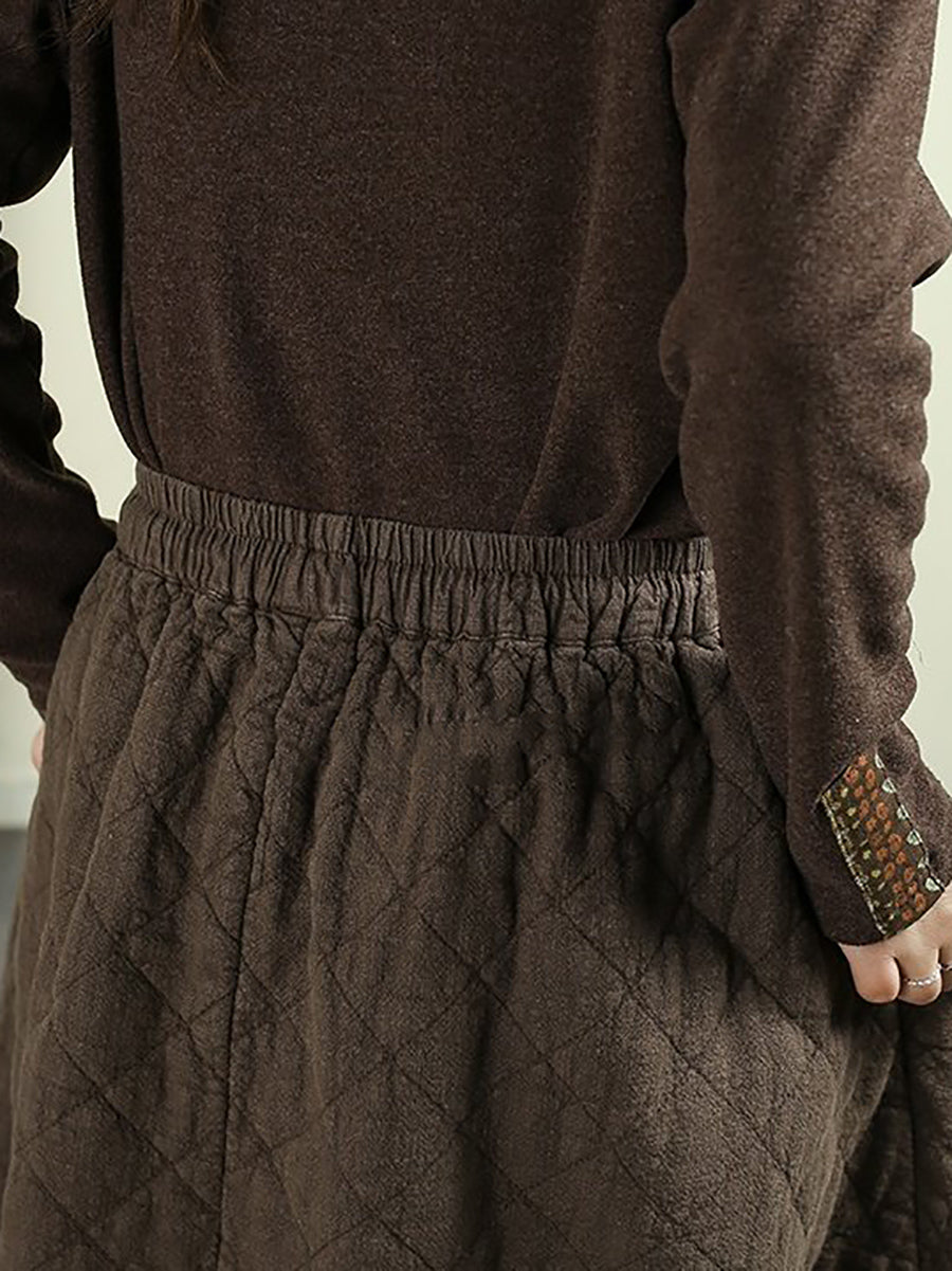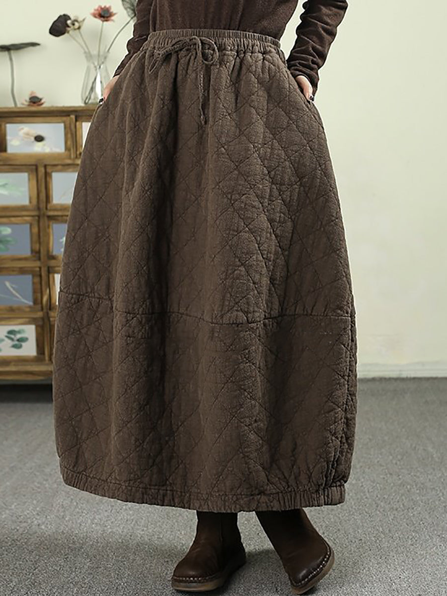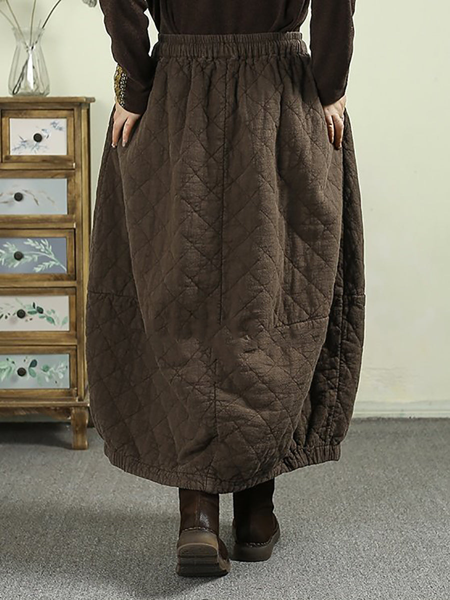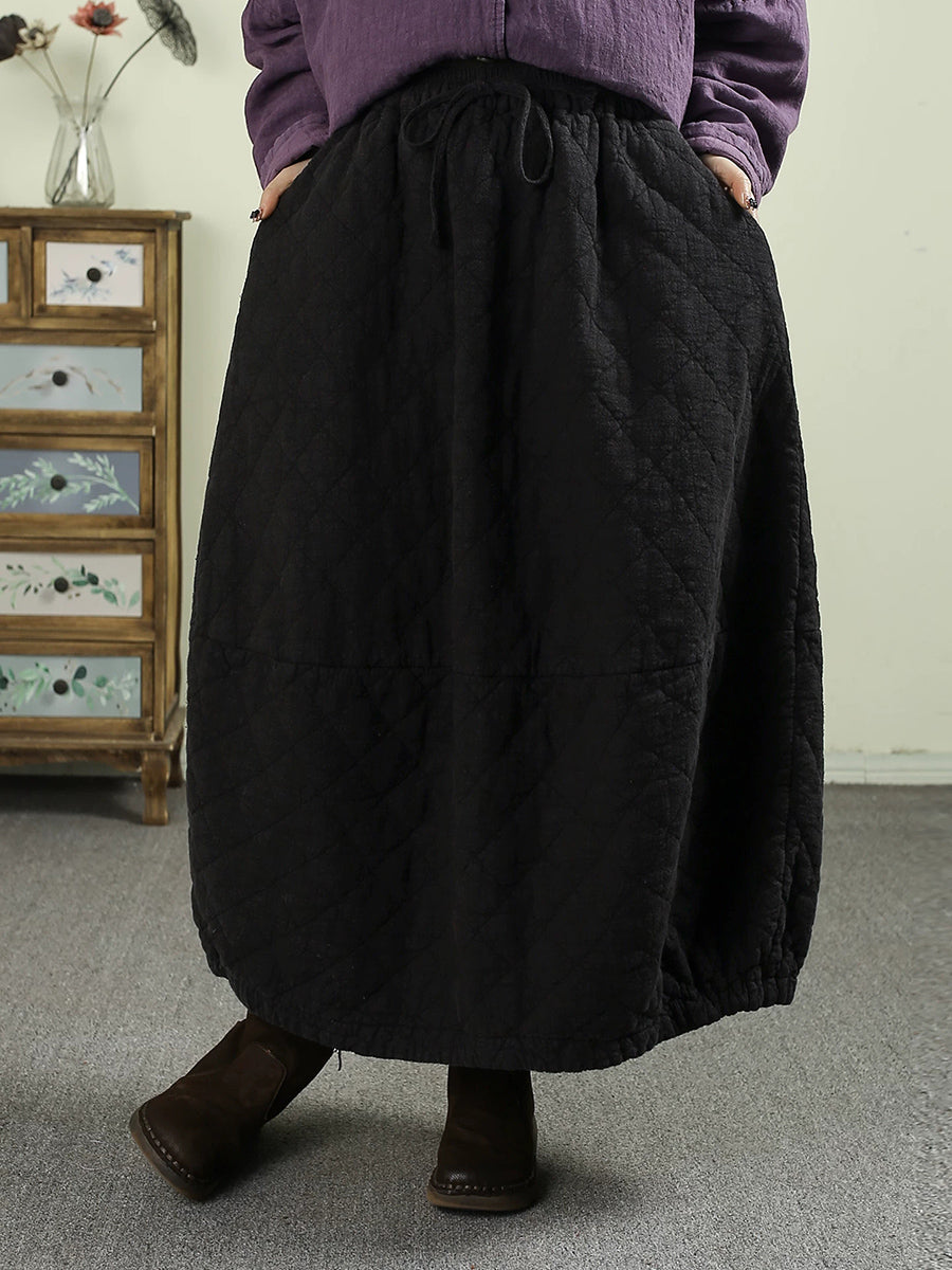 Saia acolchoada feminina de inverno, cor lisa, 100% linho.