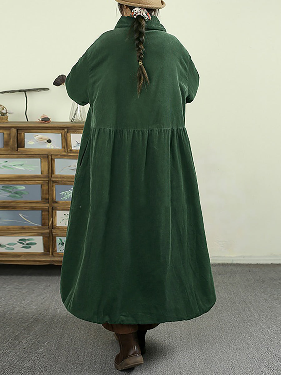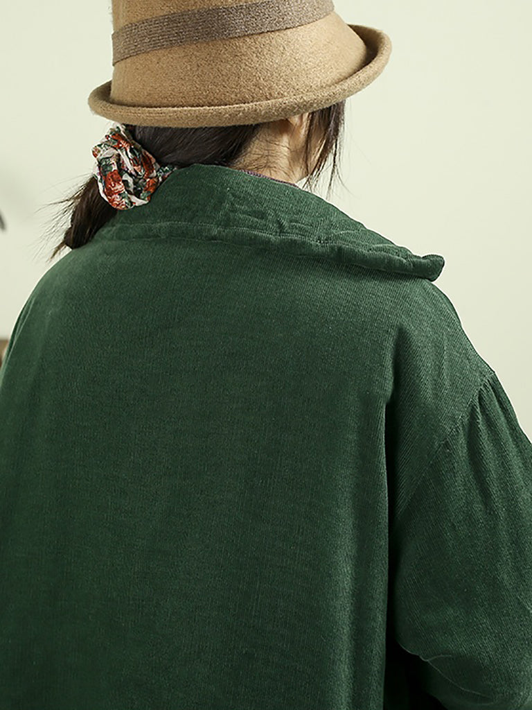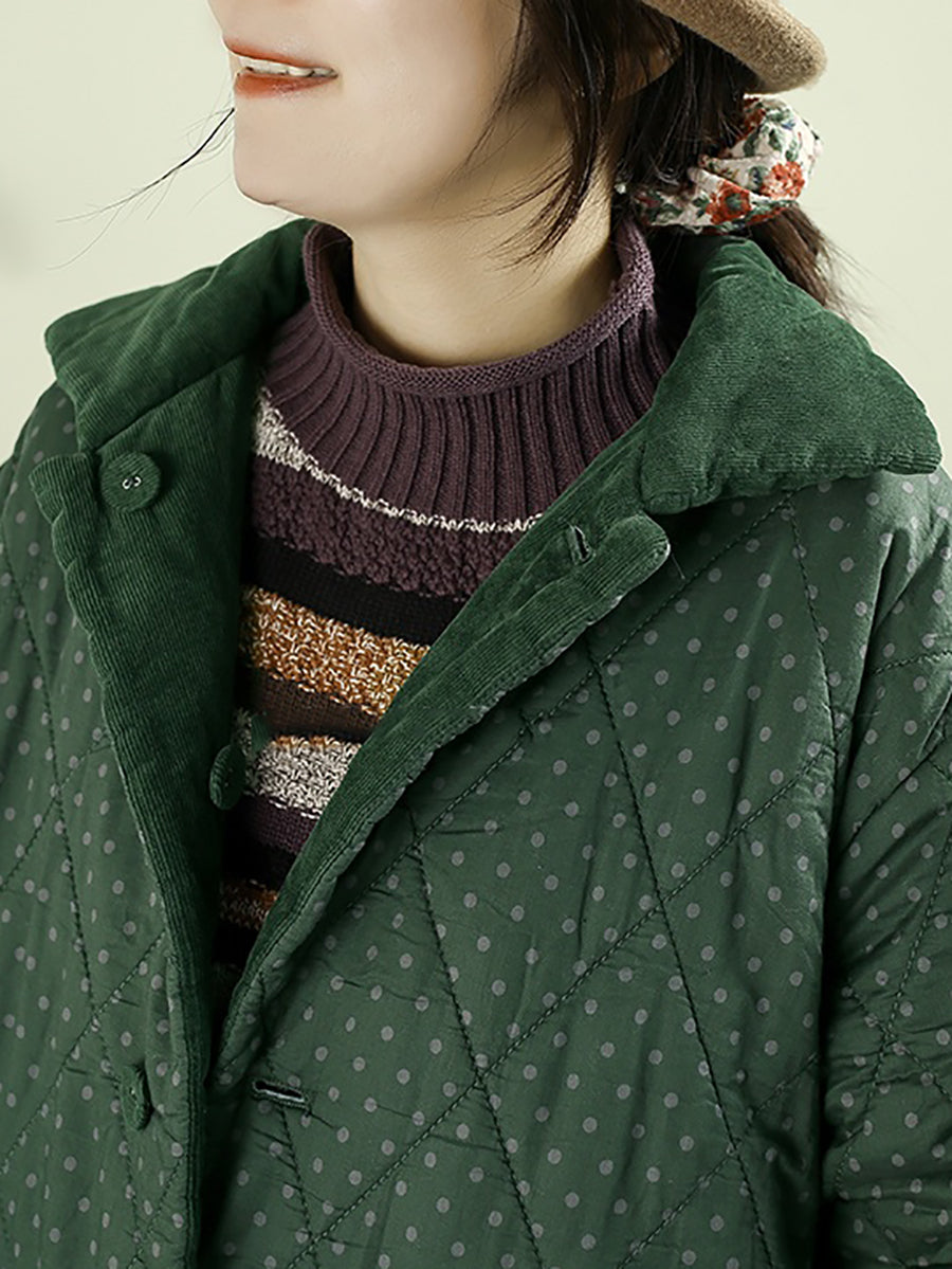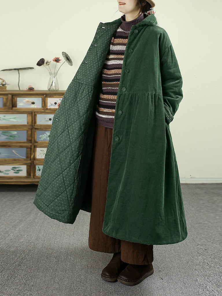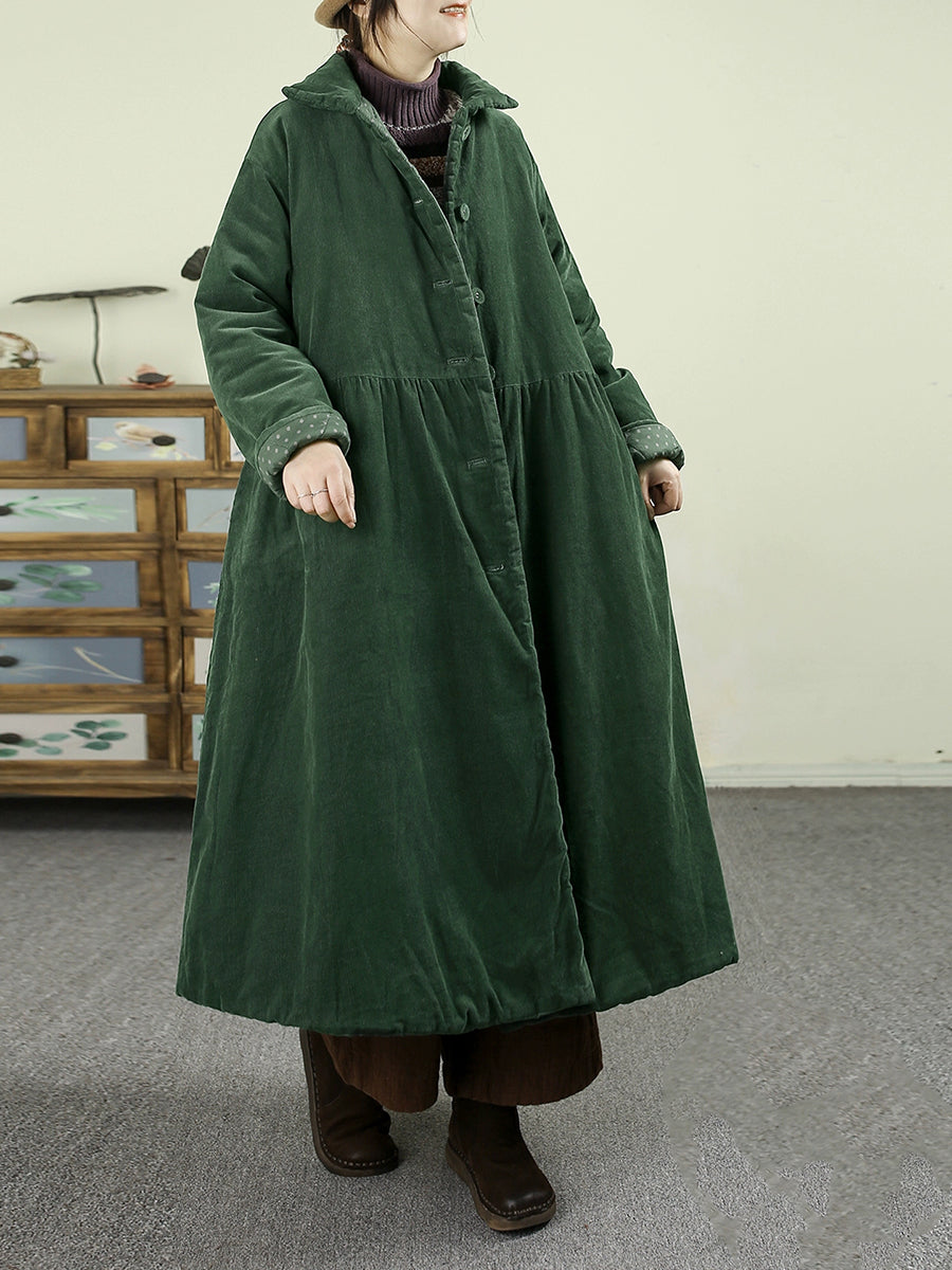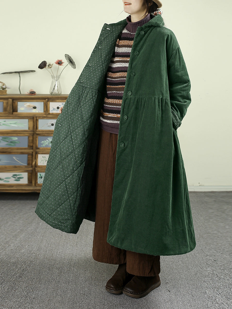 Casaco feminino de inverno em veludo cotelê acolchoado, cor lisa, dupla face.