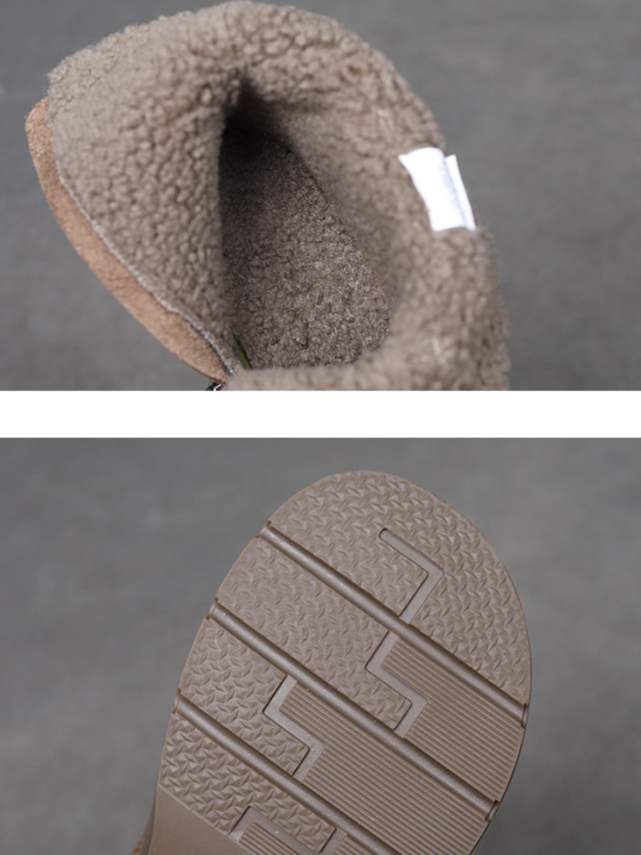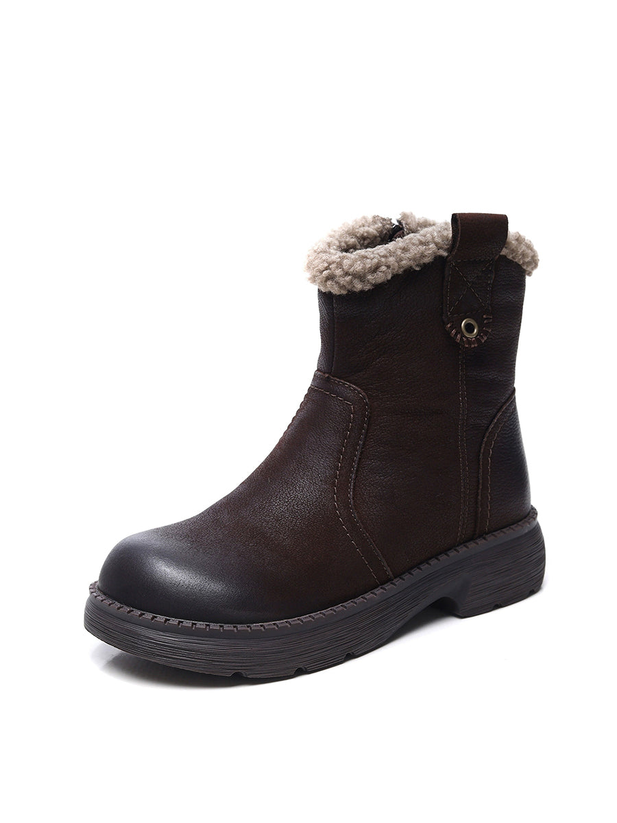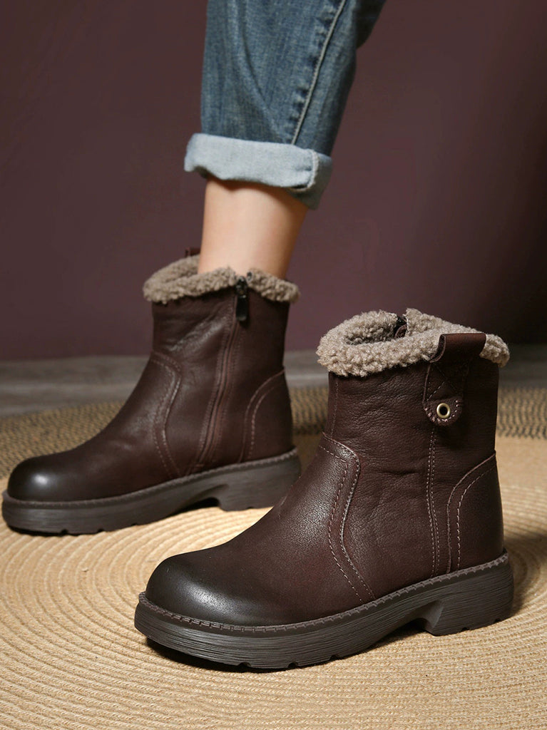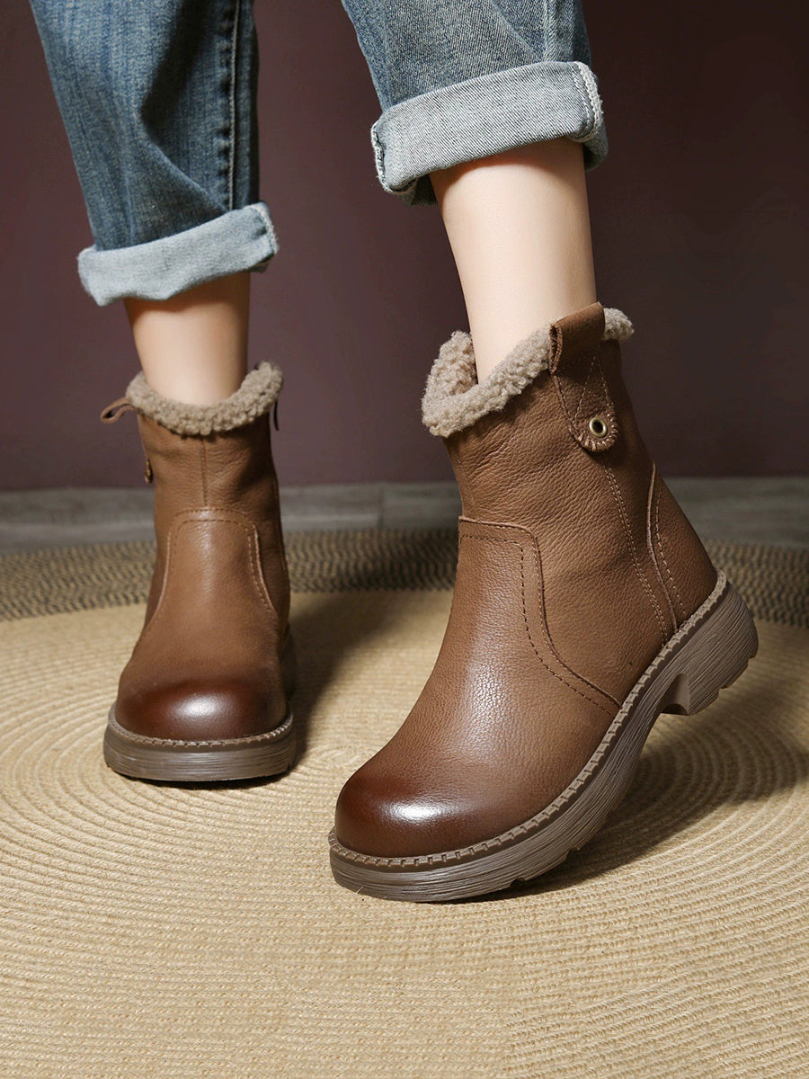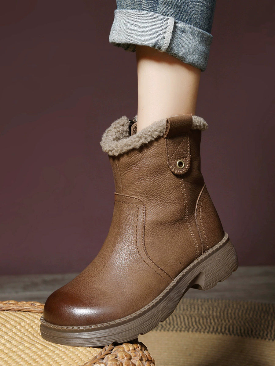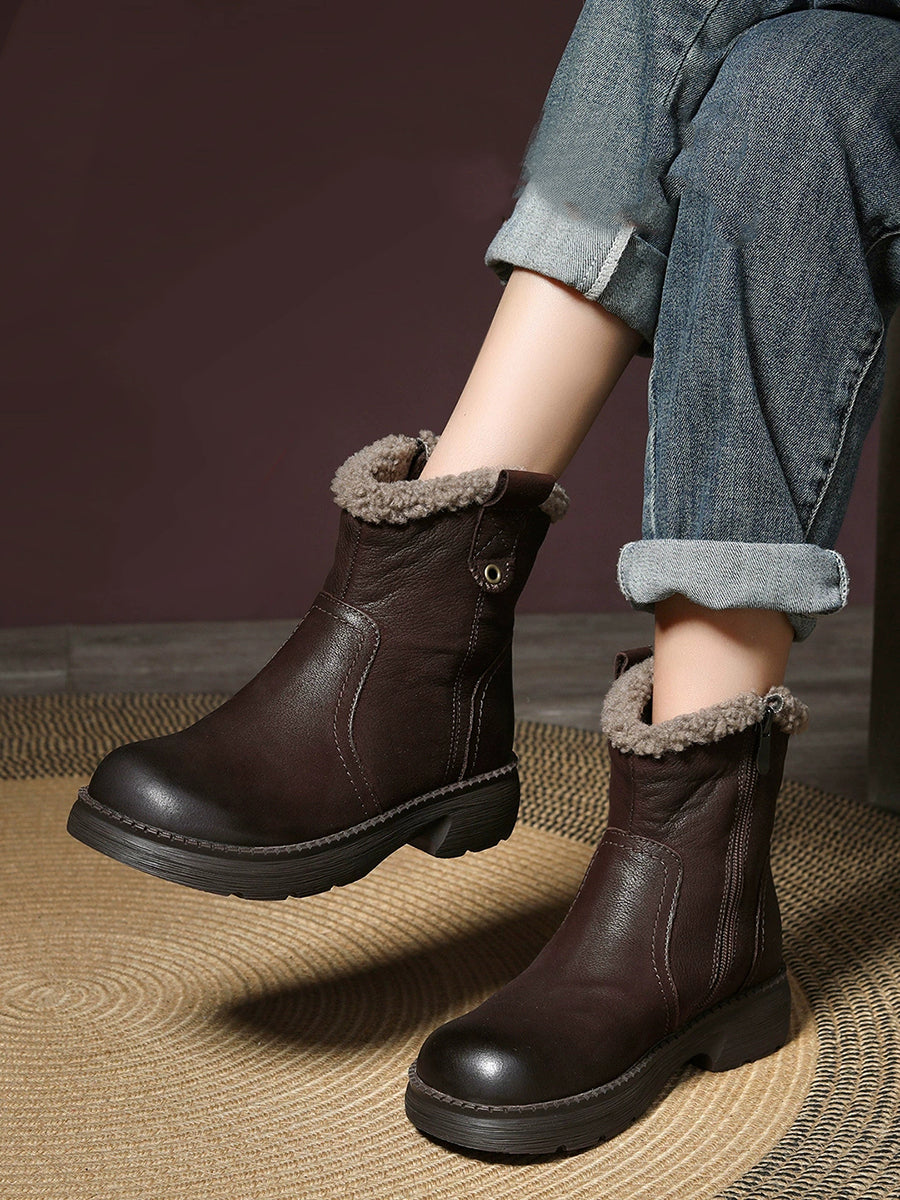 Botas femininas de inverno em couro legítimo de cor lisa com forro de lã