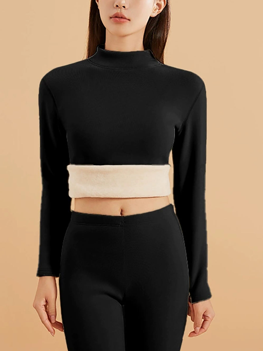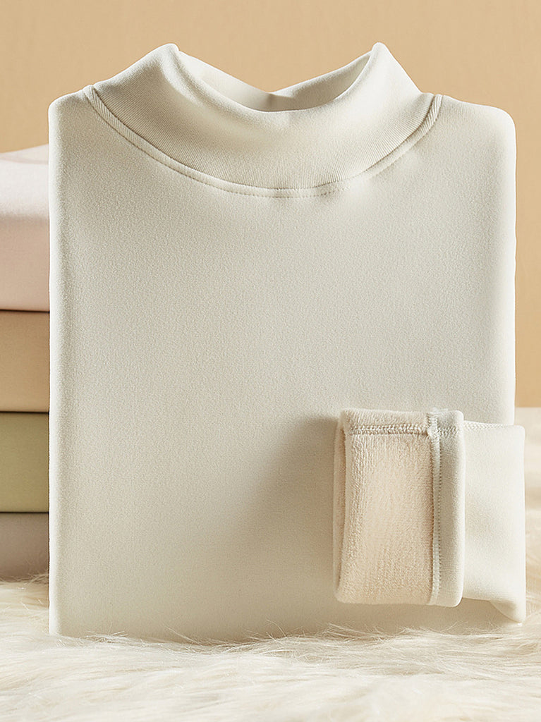 Blusa feminina de inverno lisa com gola alta até a metade do corpo