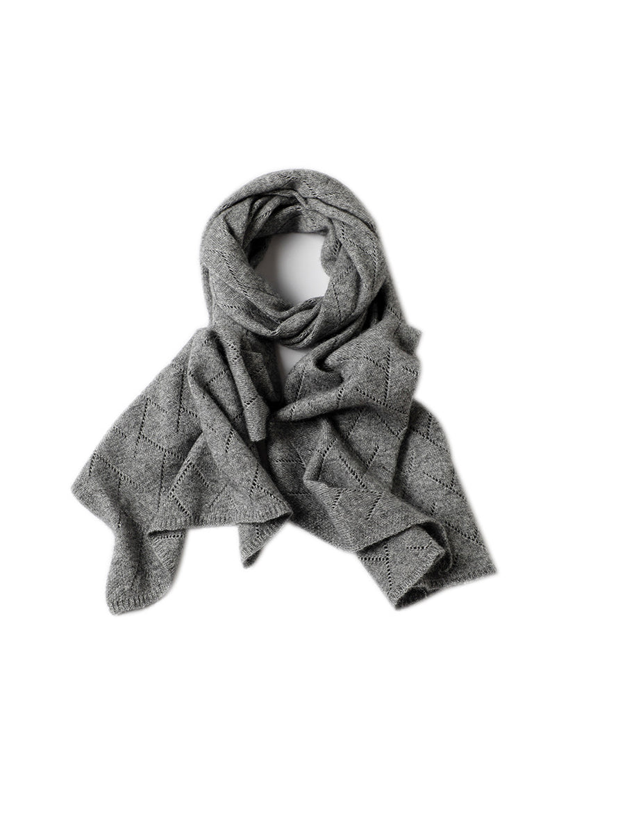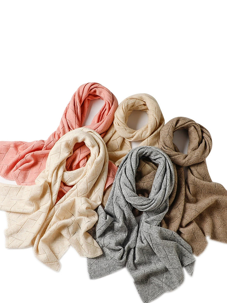 Xale/Cachecol Feminino de Inverno em Tricô Vazado de Cor Lisa