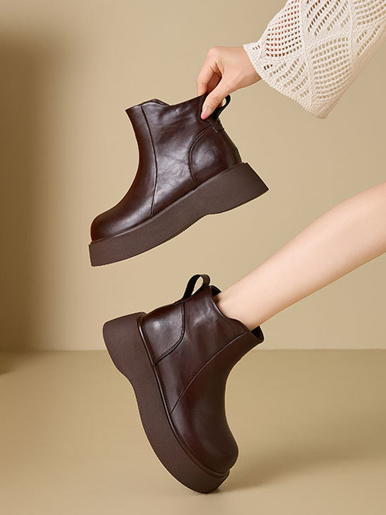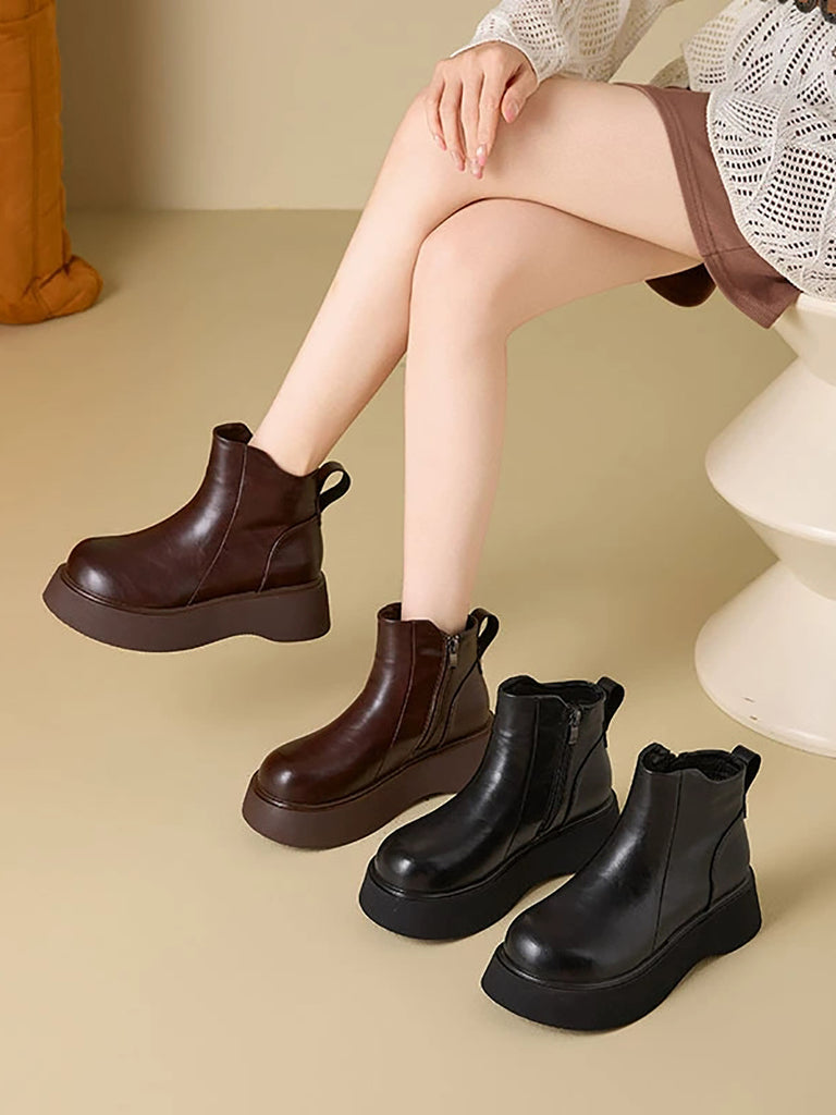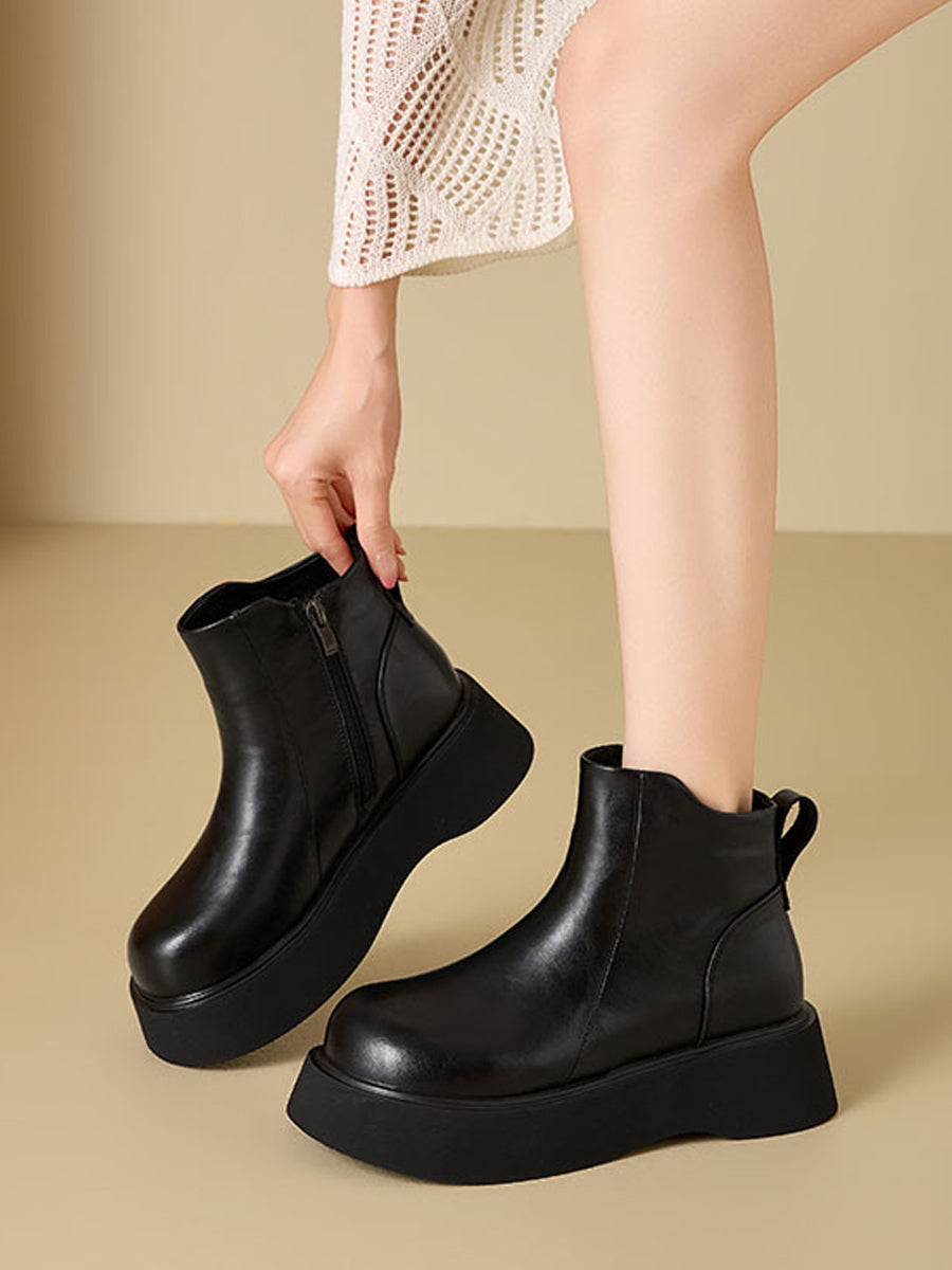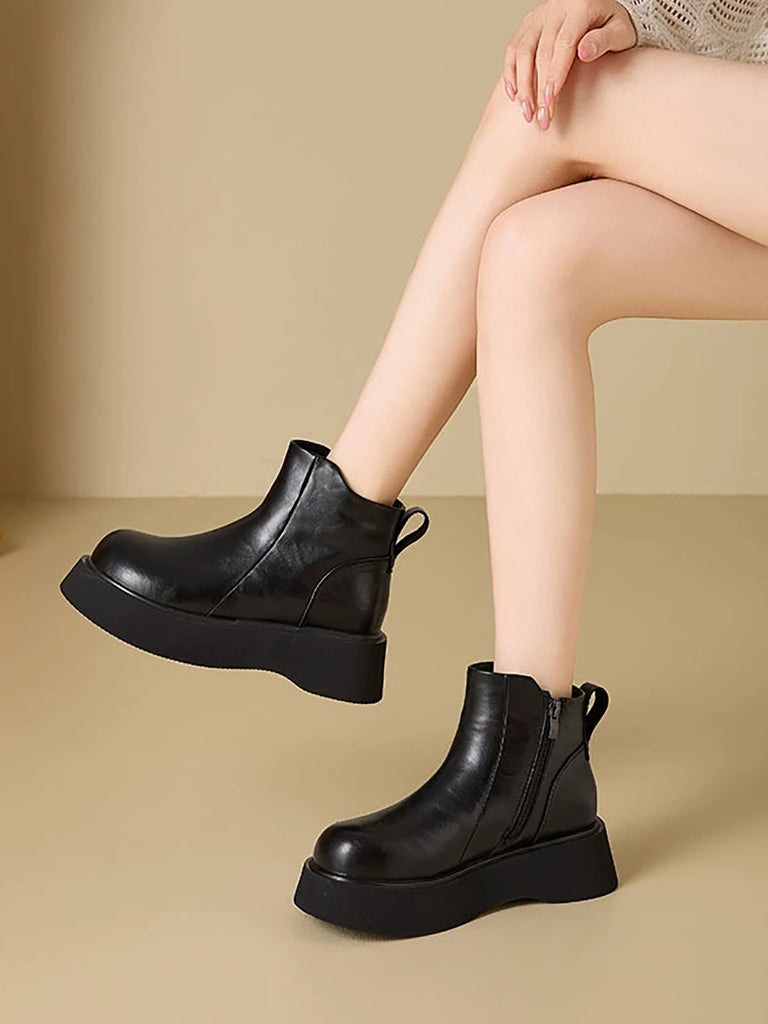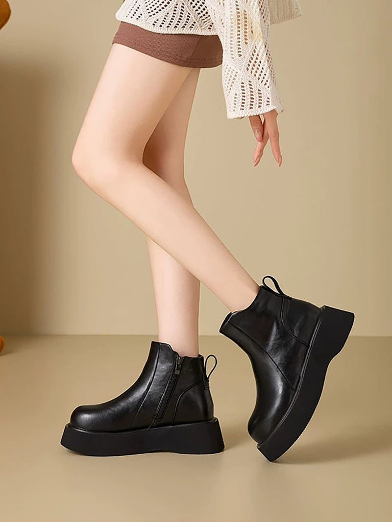 Botas de plataforma femininas de couro de cor lisa para o inverno
