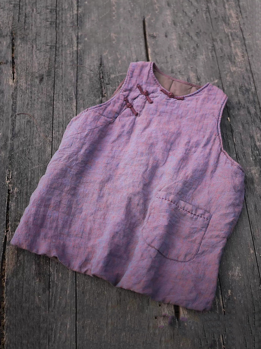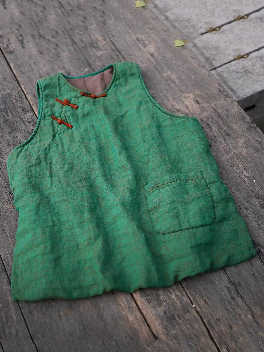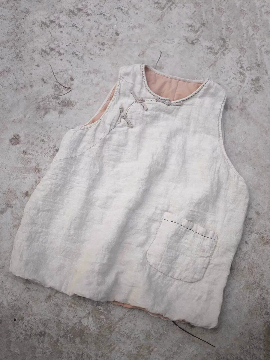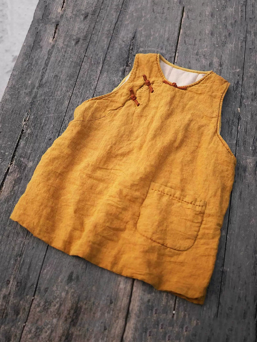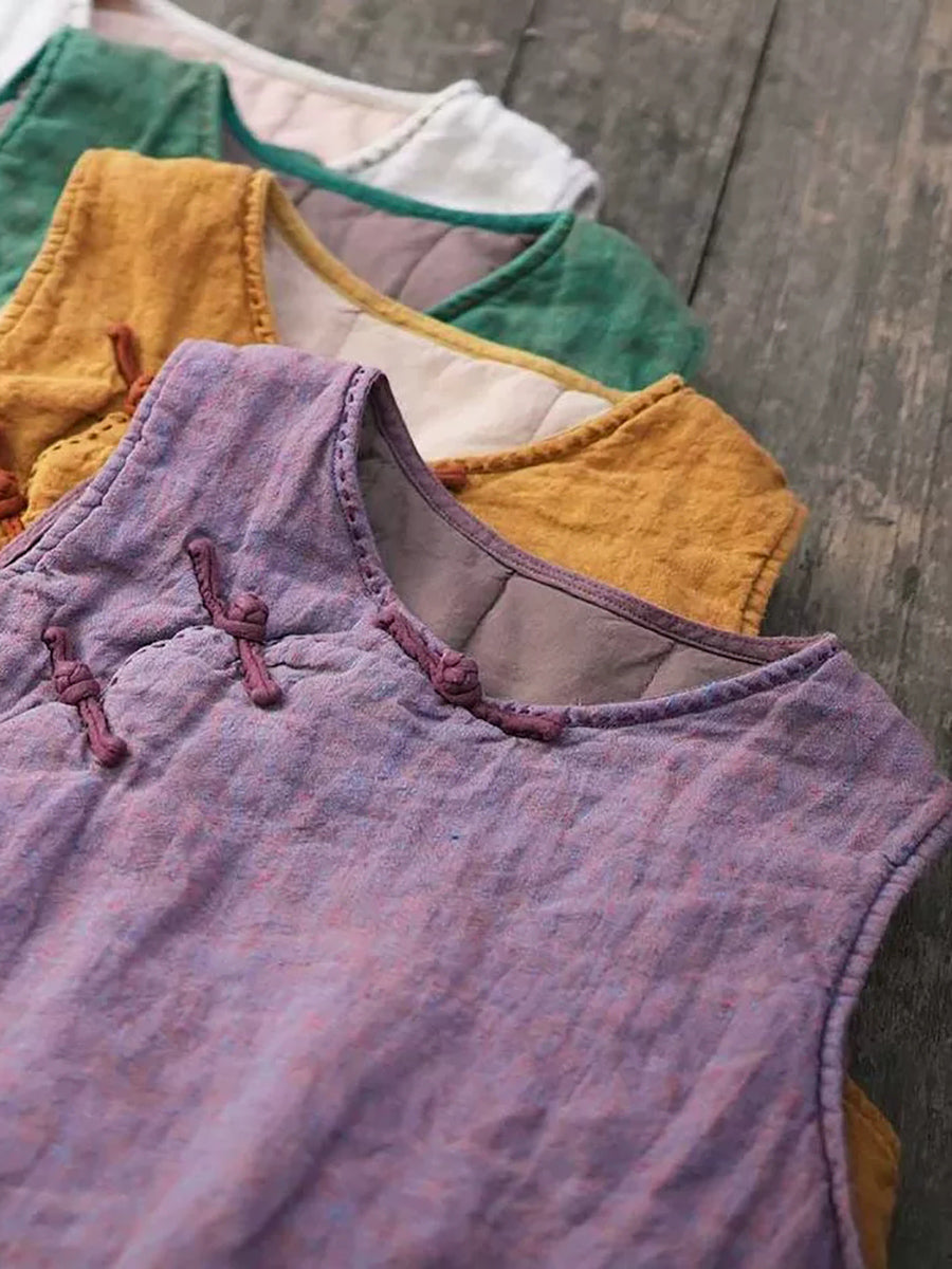 Colete acolchoado feminino de linho com gola redonda e cor lisa para o inverno