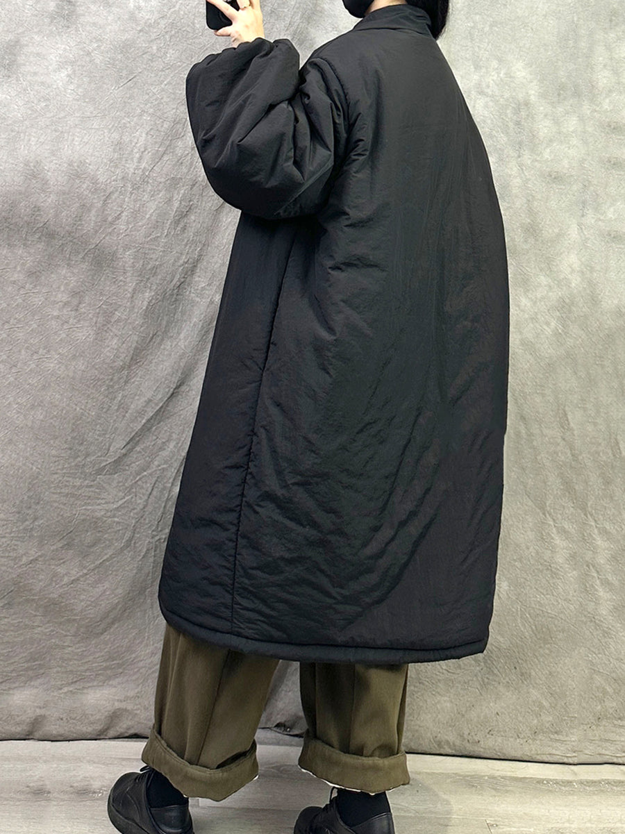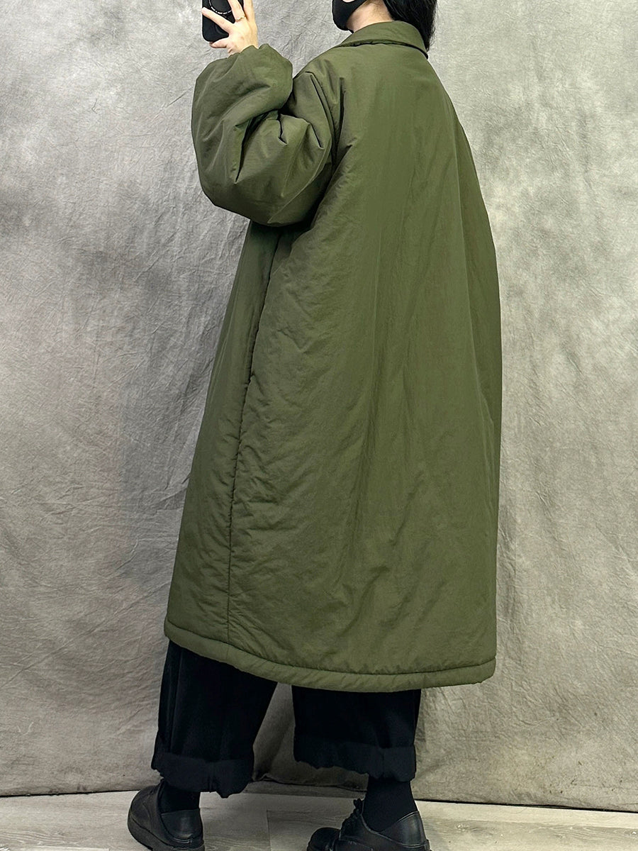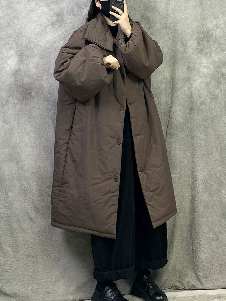 Casaco longo acolchoado feminino de inverno em cor lisa com gola dobrável.
