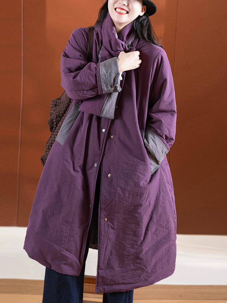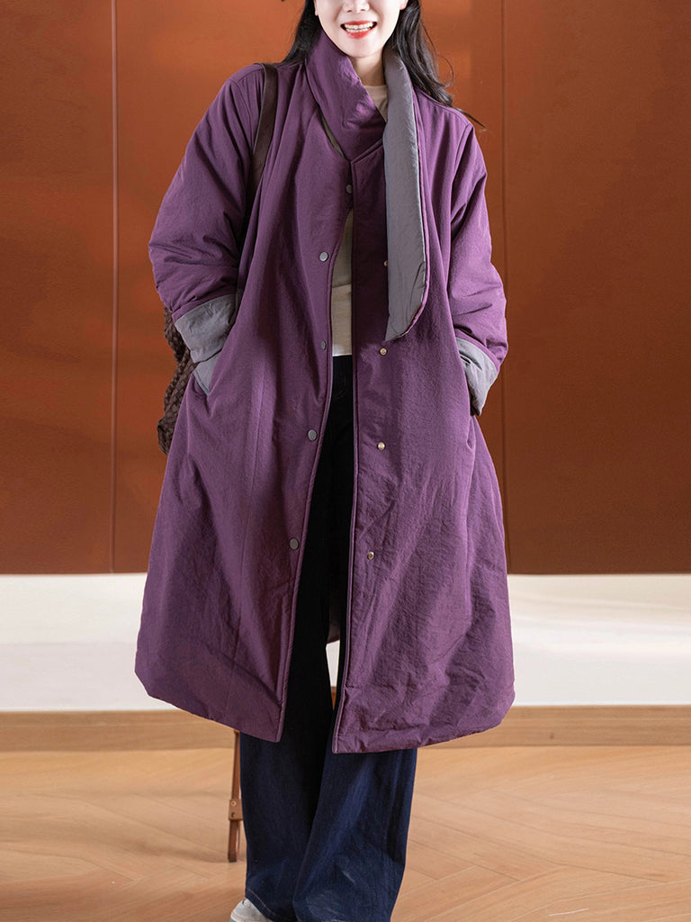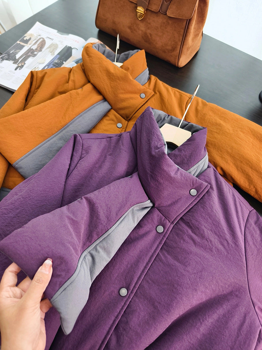 Casaco acolchoado feminino de inverno em cor lisa com gola dobrável.