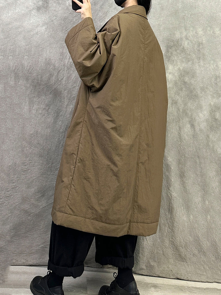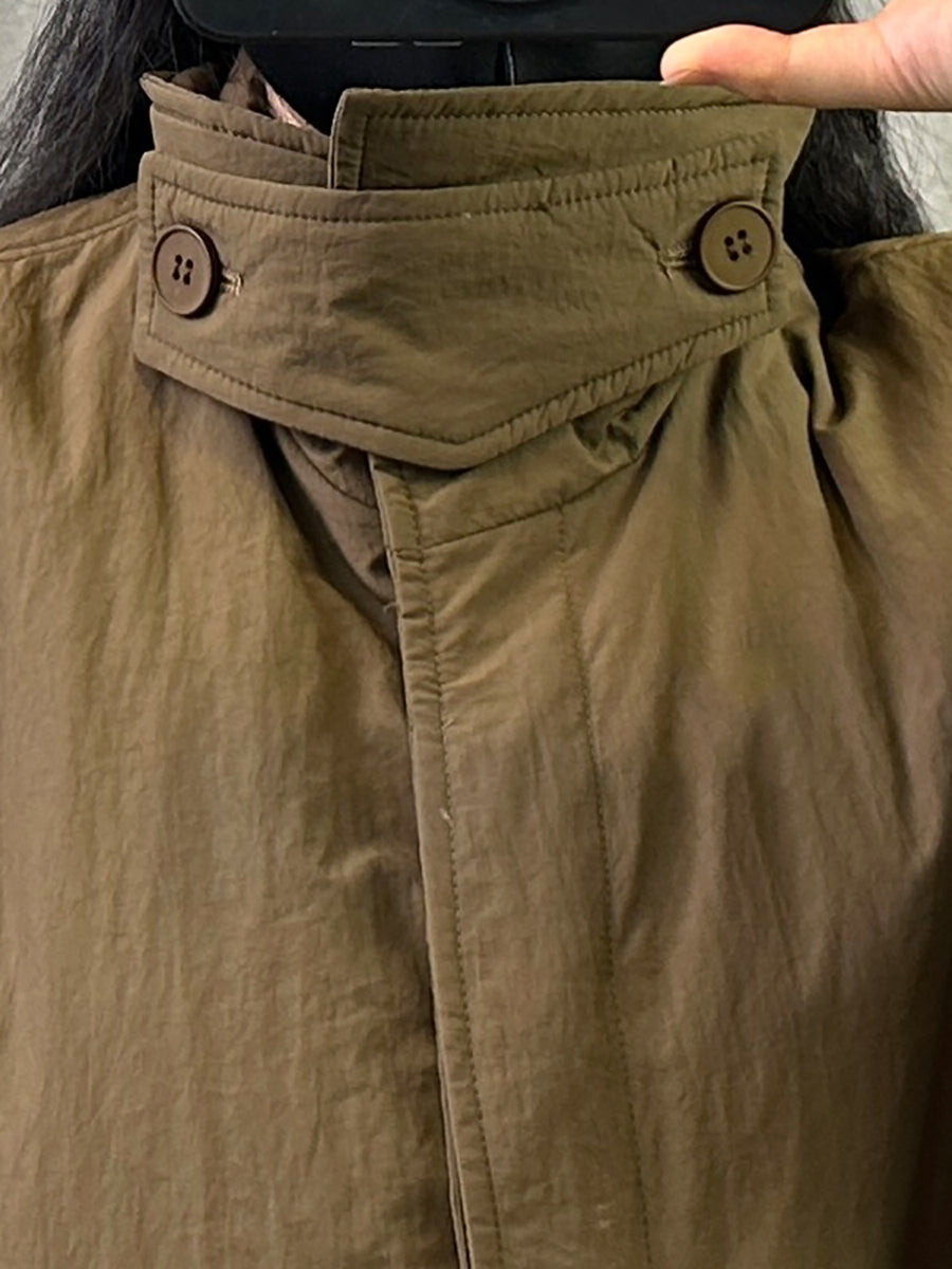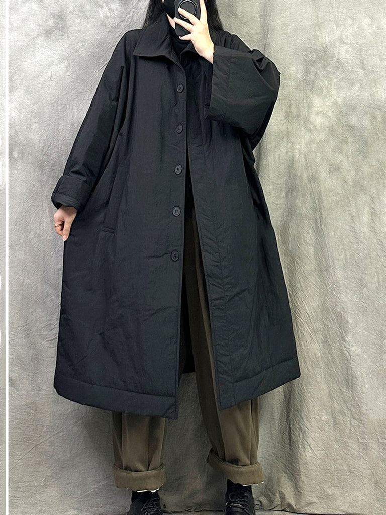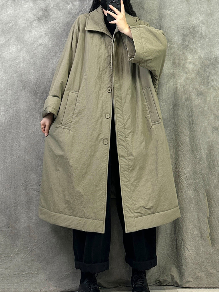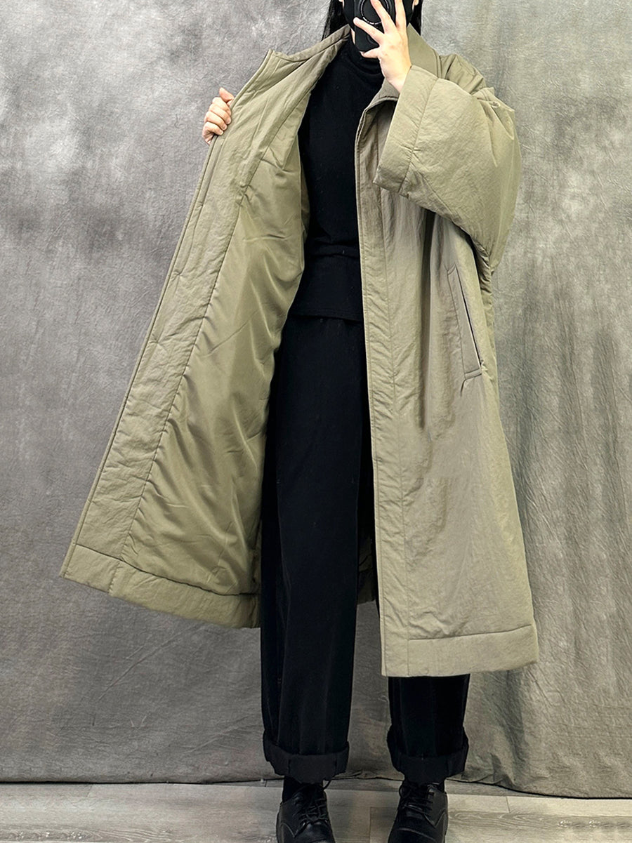 Casaco feminino de inverno acolchoado com gola dobrável e cor lisa.