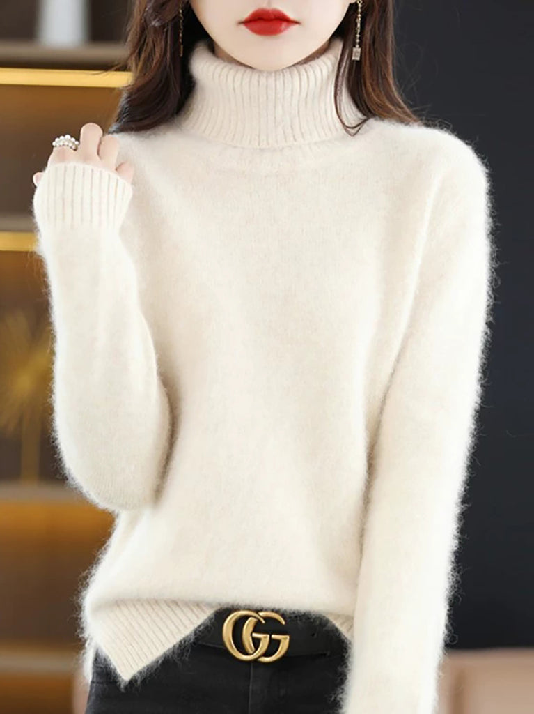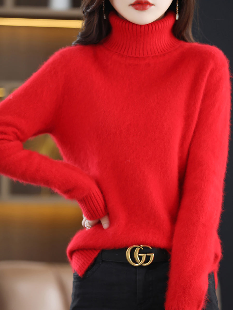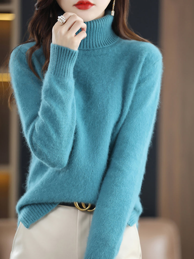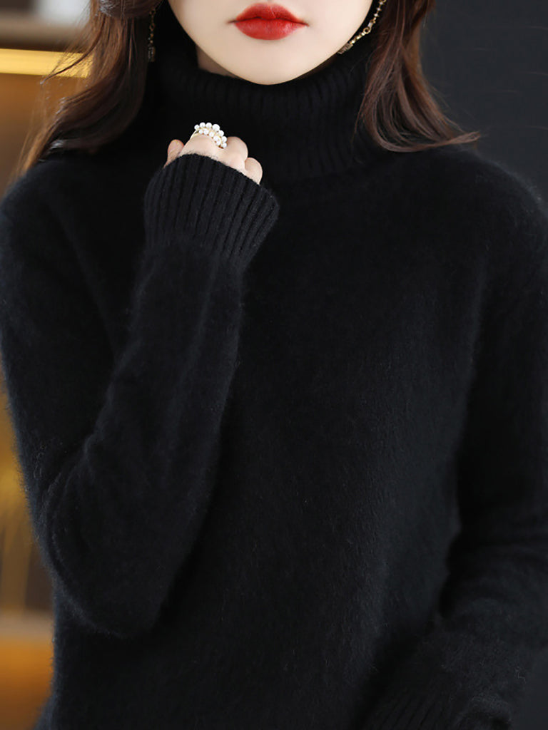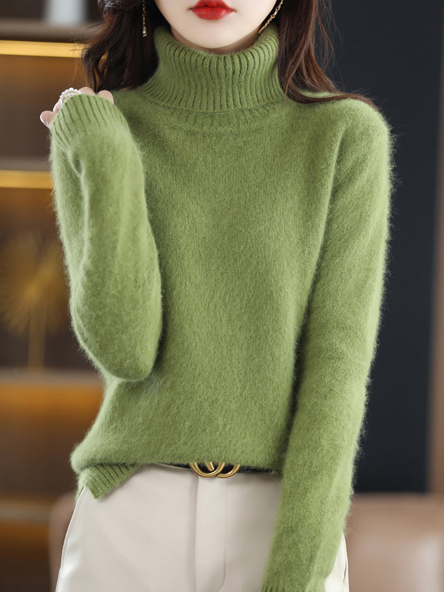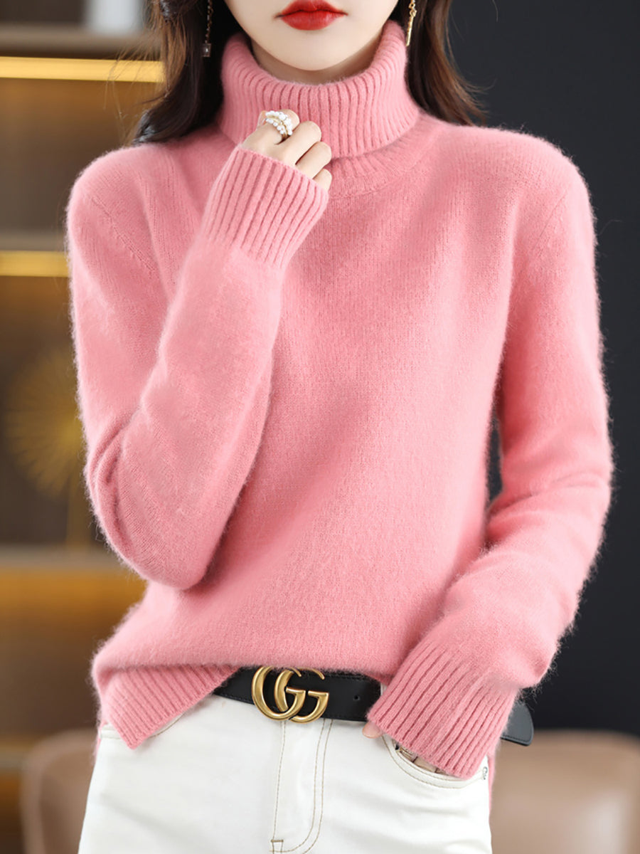 Suéter feminino de gola alta de cor lisa para o inverno