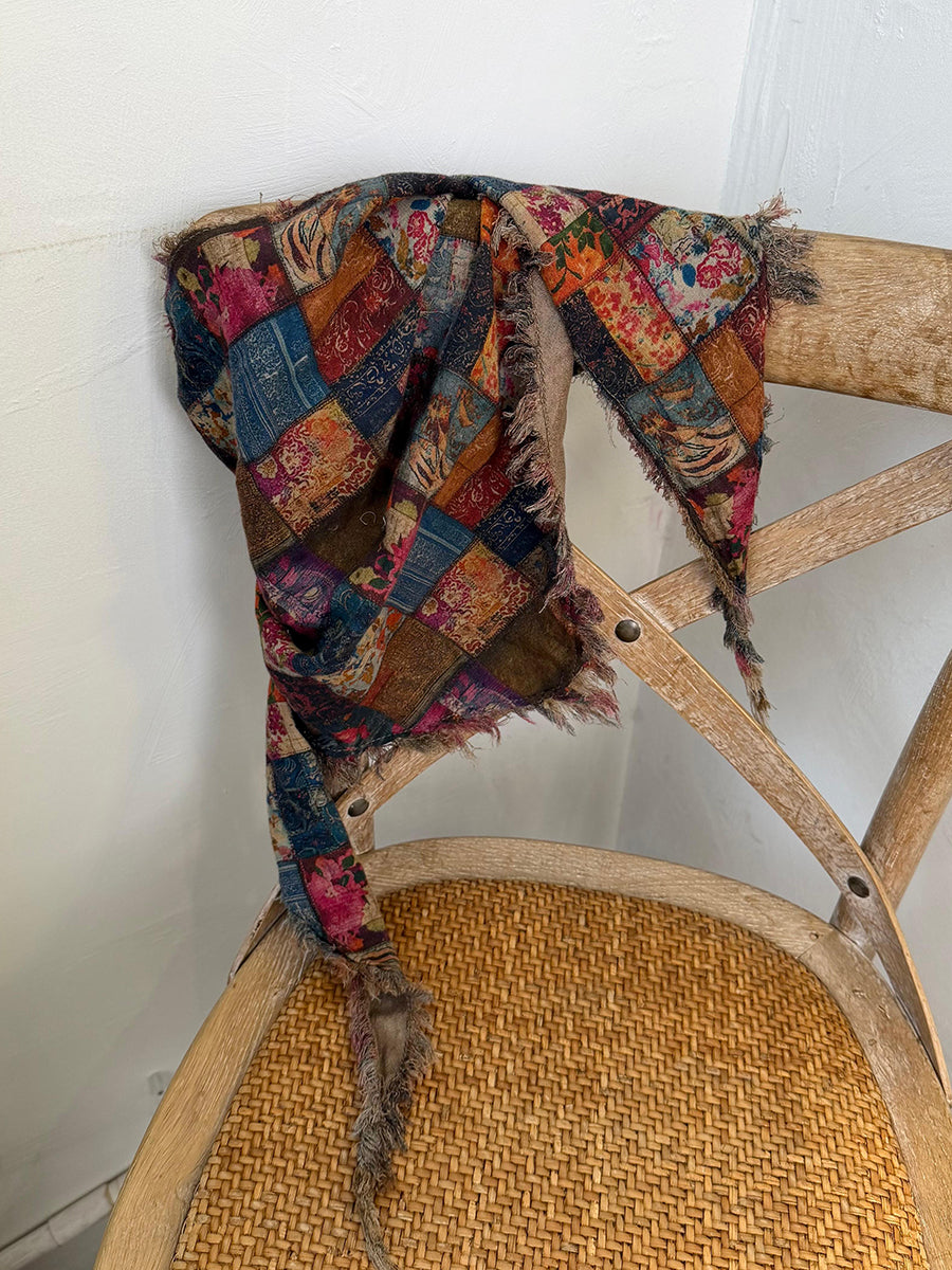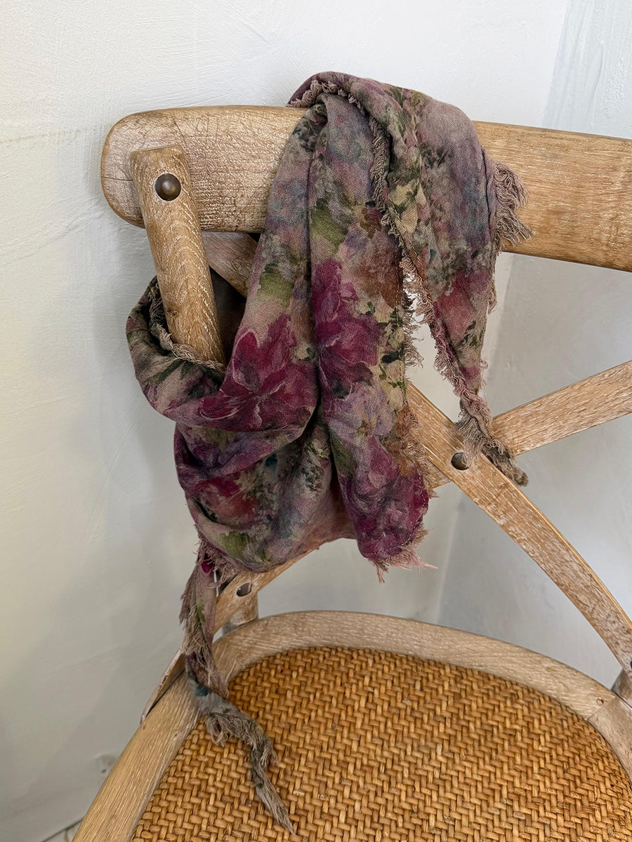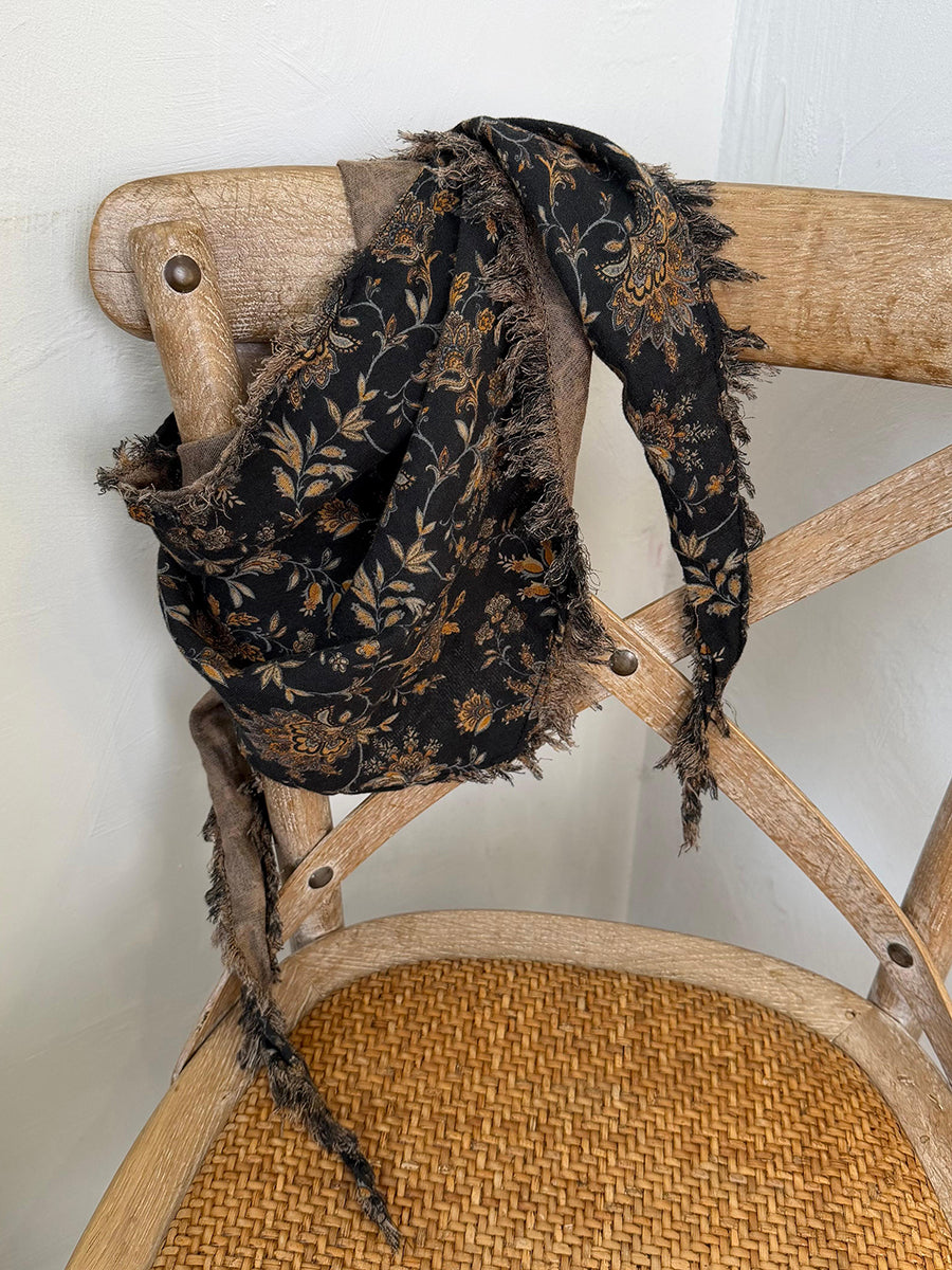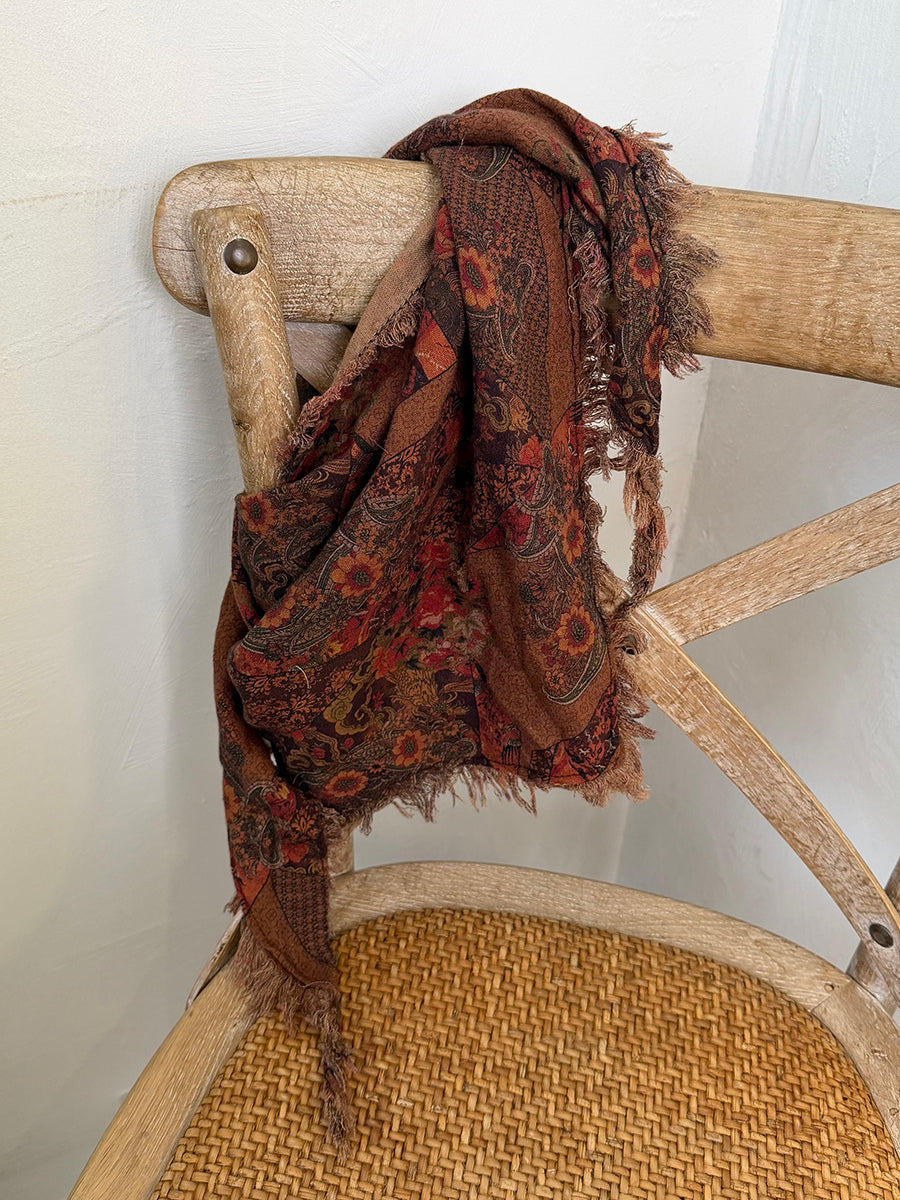 Cachecol triangular feminino de inverno com estampa floral retrô