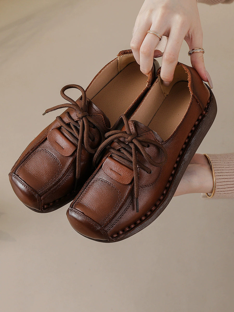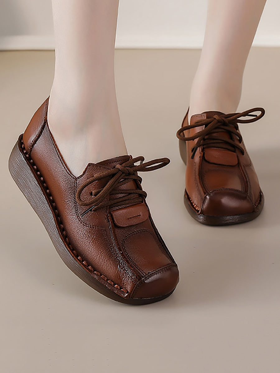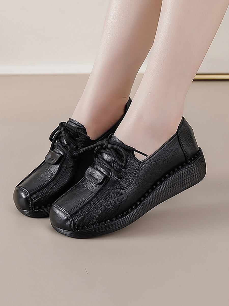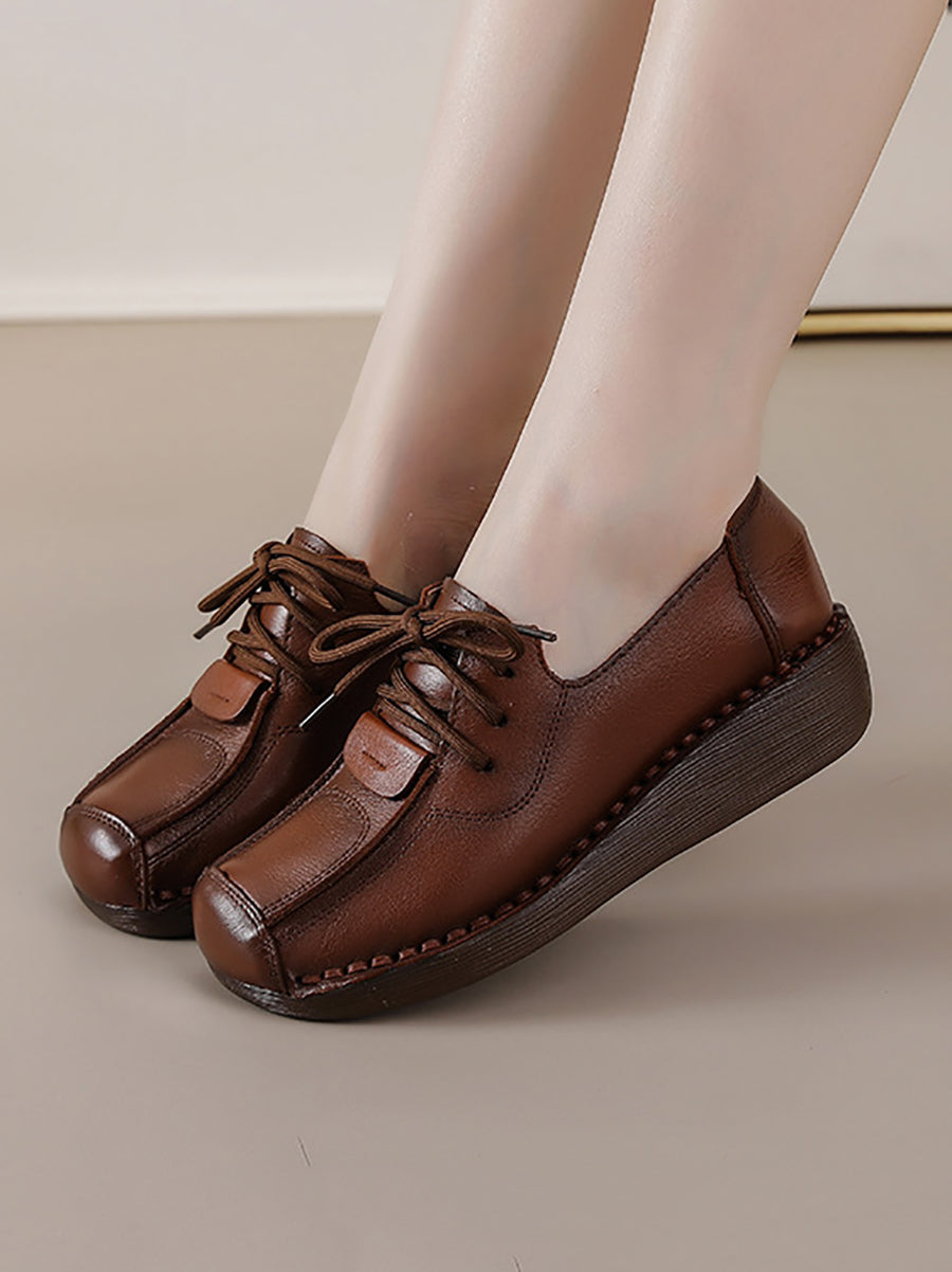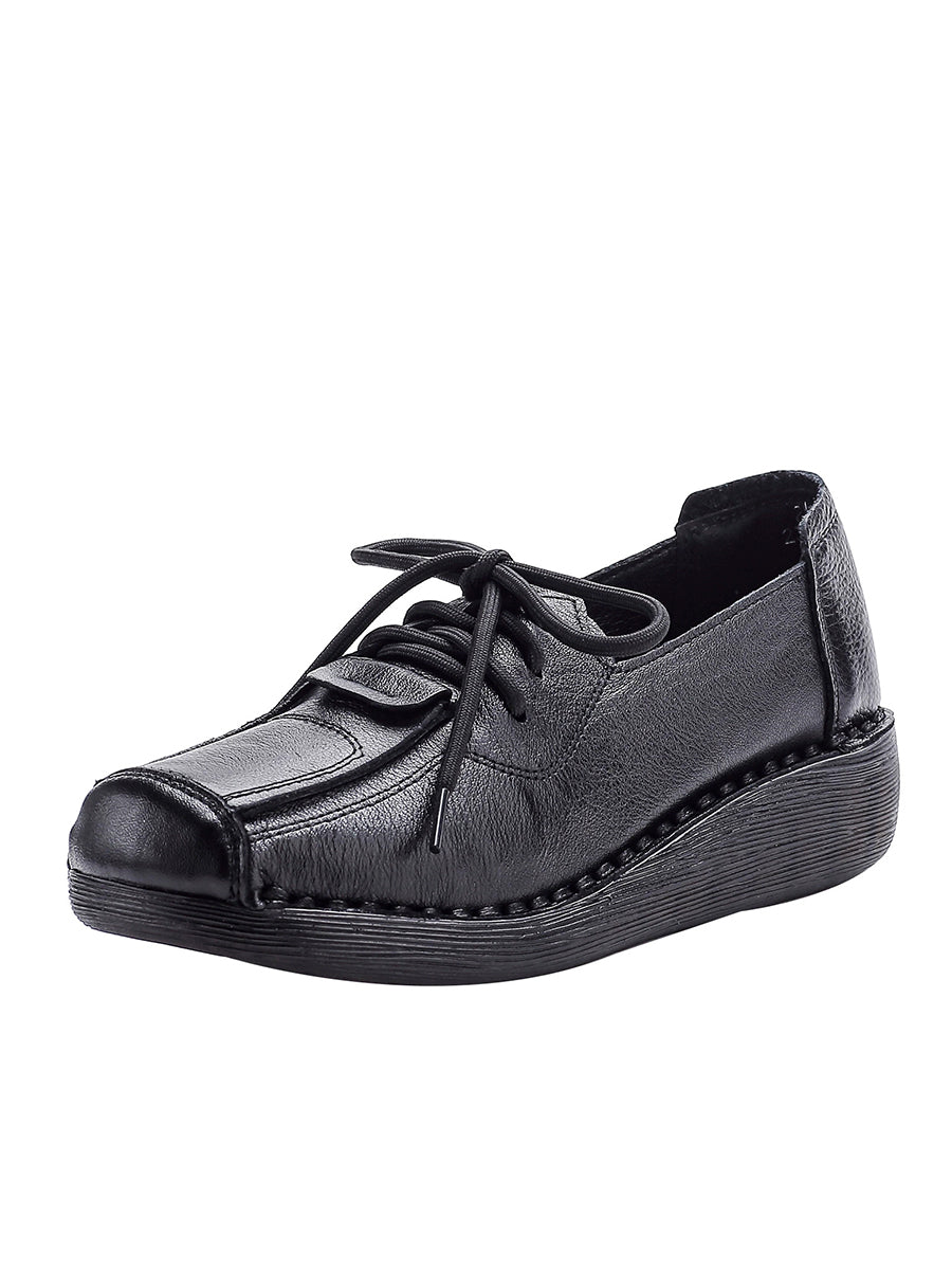Sapatos plataforma femininos de inverno estilo retrô em couro legítimo