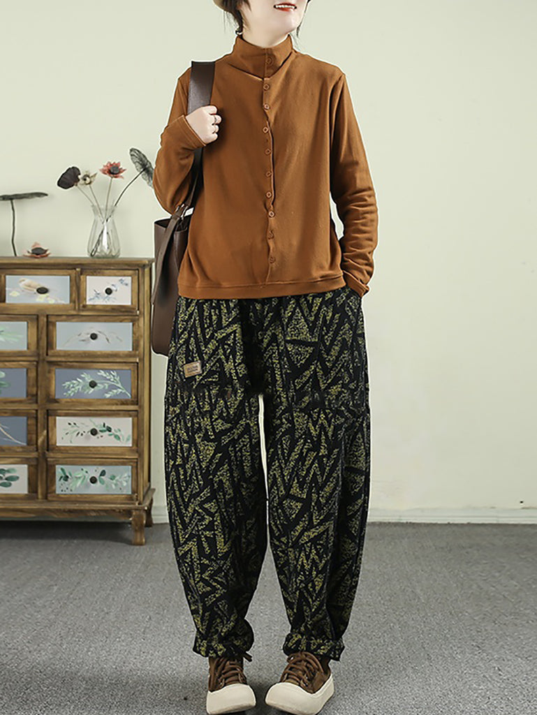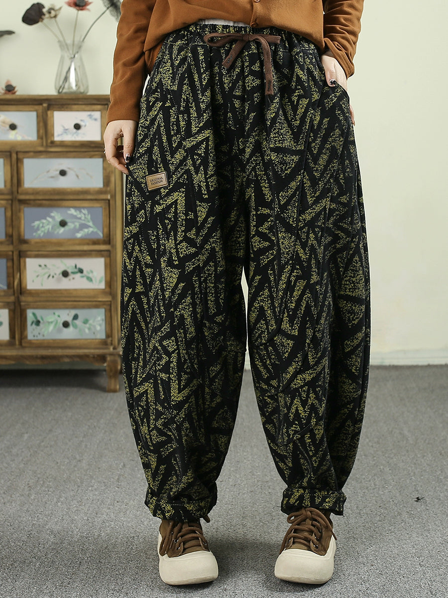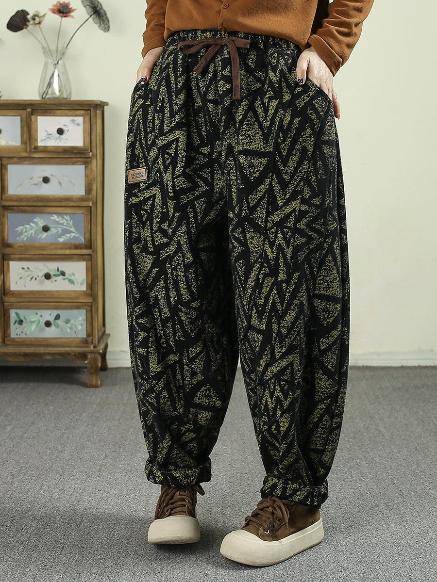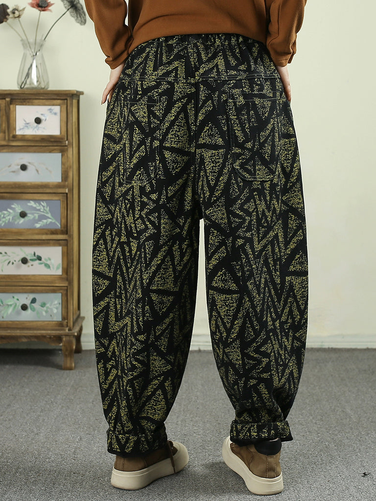 Calça Harem Feminina de Inverno com Estampa Geométrica Retrô e Forro de Lã