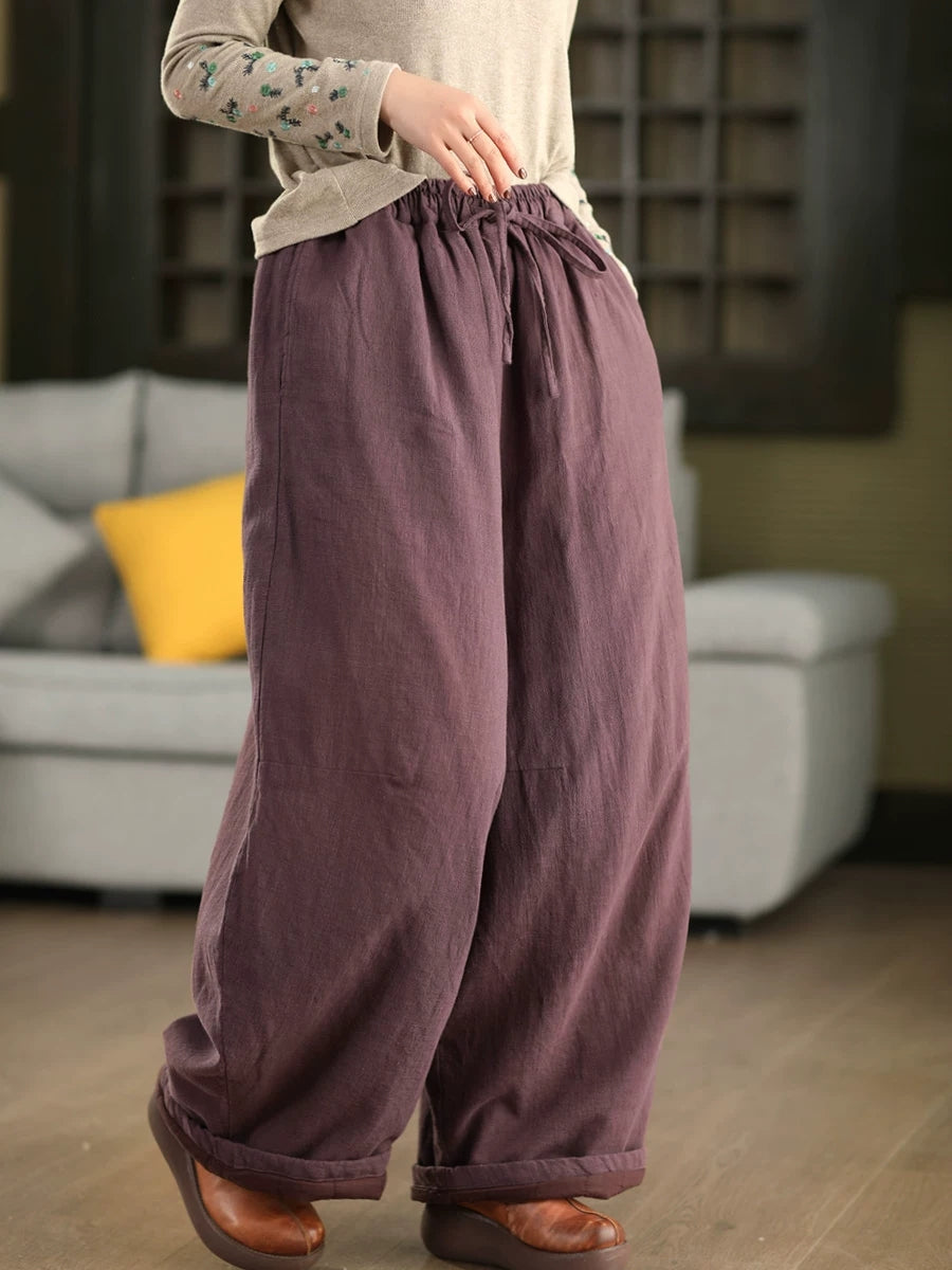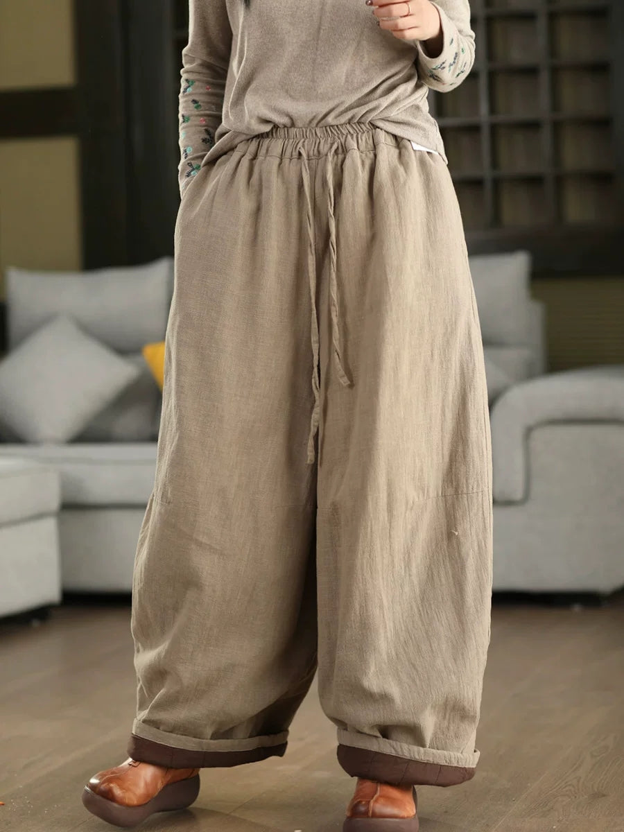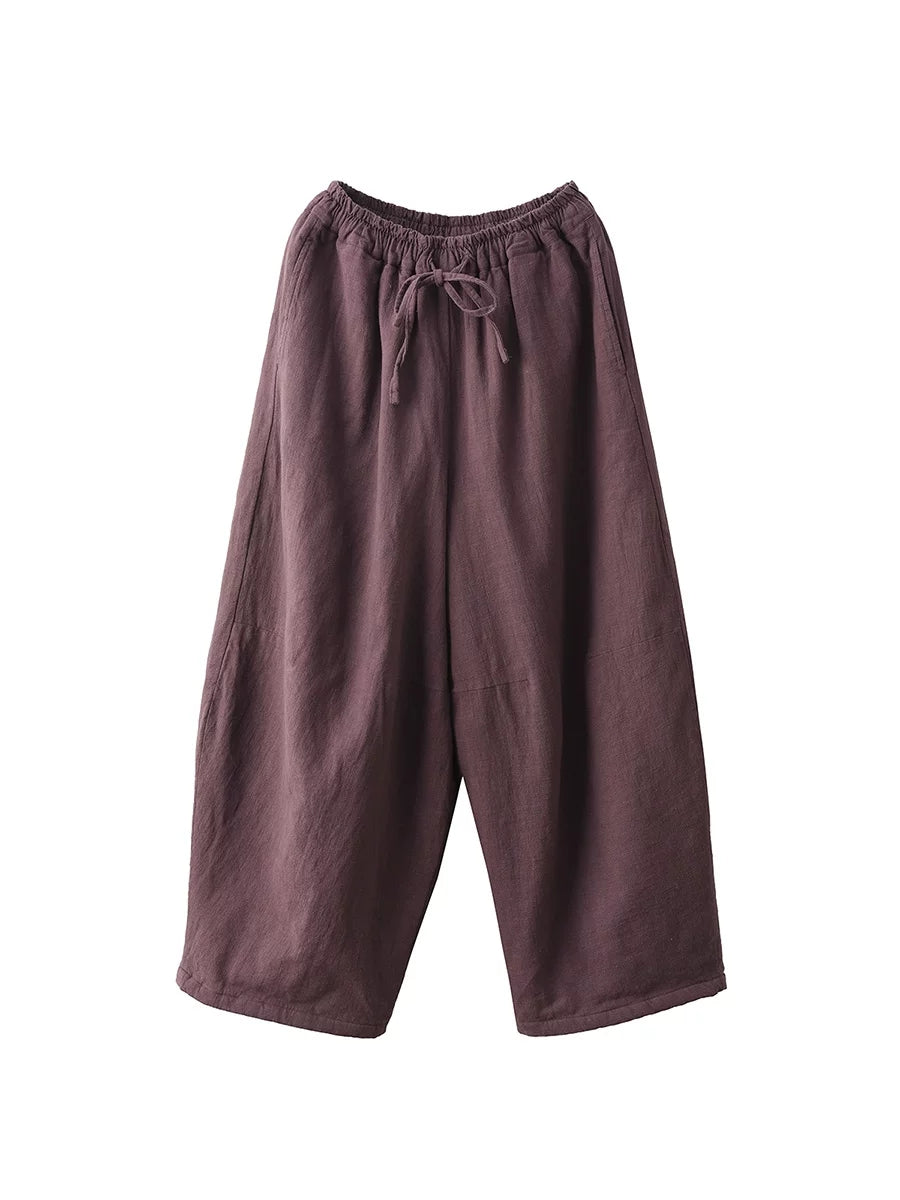 Calça reta acolchoada feminina retrô de inverno, cor lisa, 100% linho.