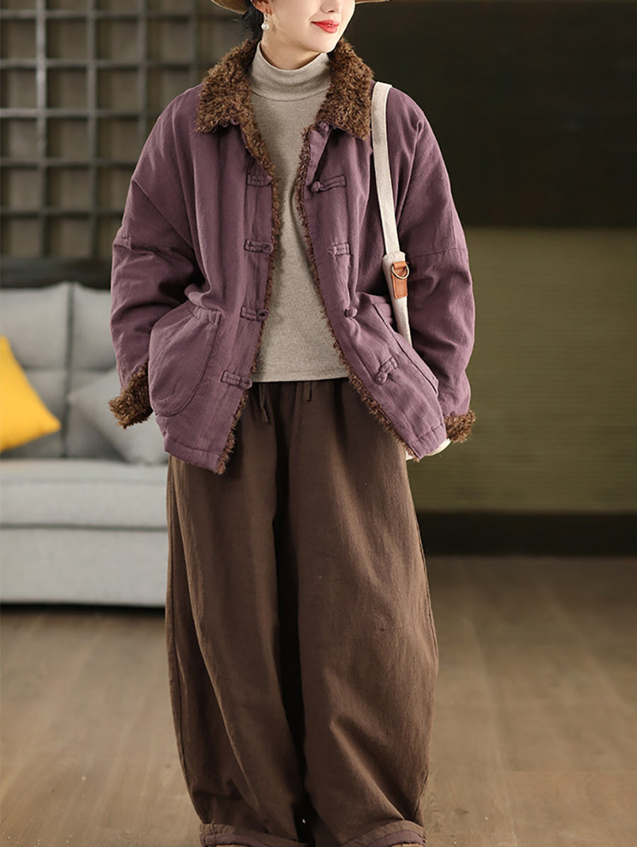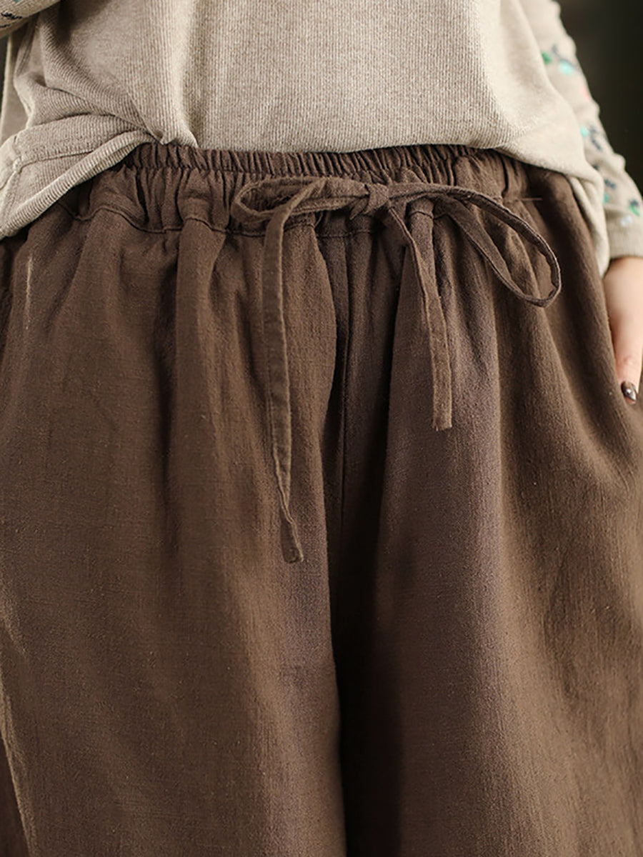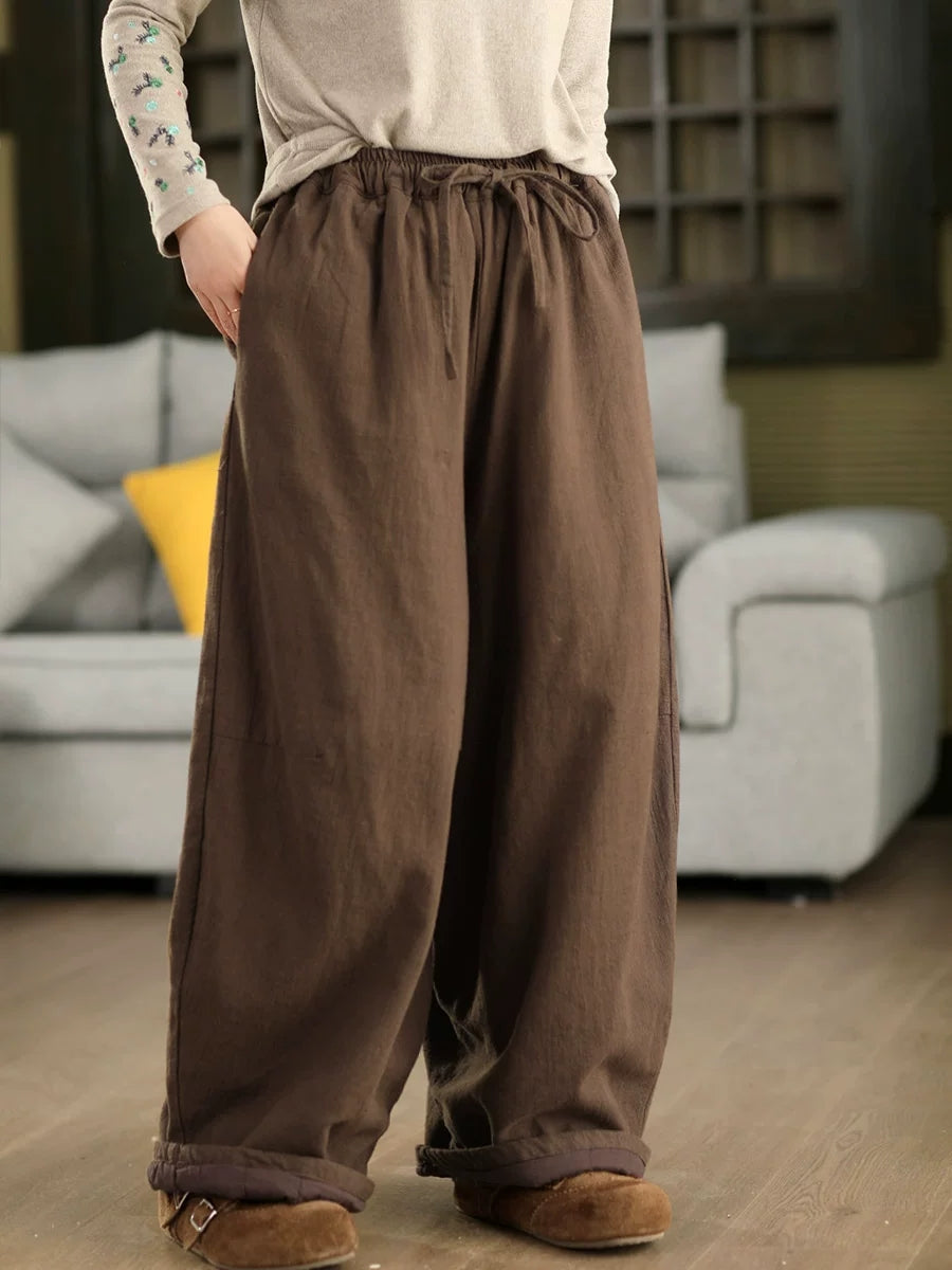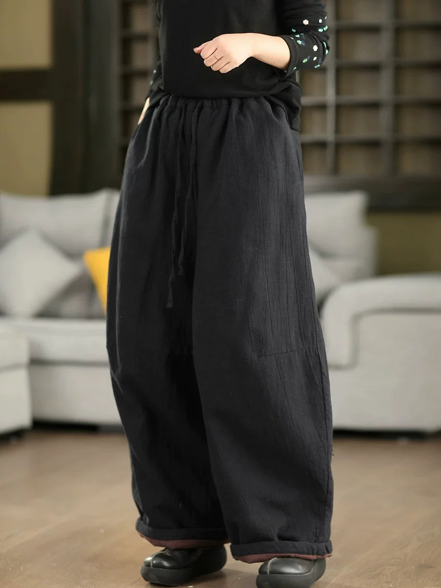 Calça reta acolchoada feminina retrô de inverno, cor lisa, 100% linho.