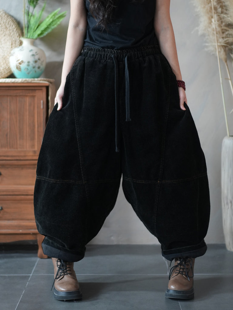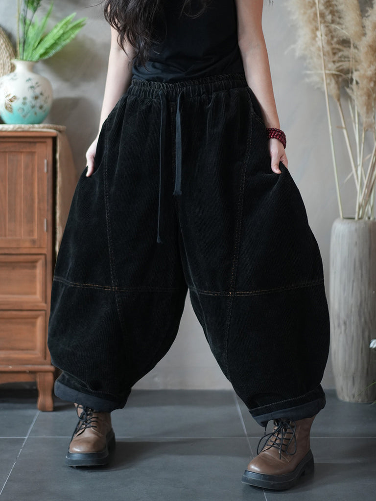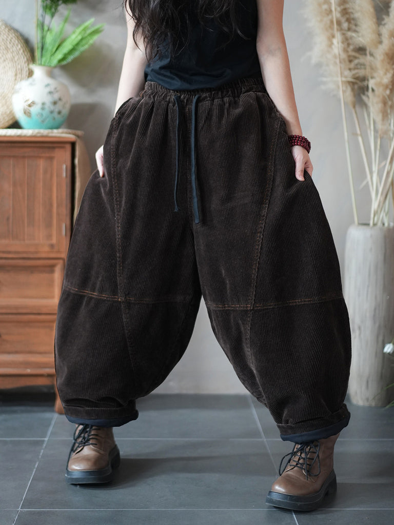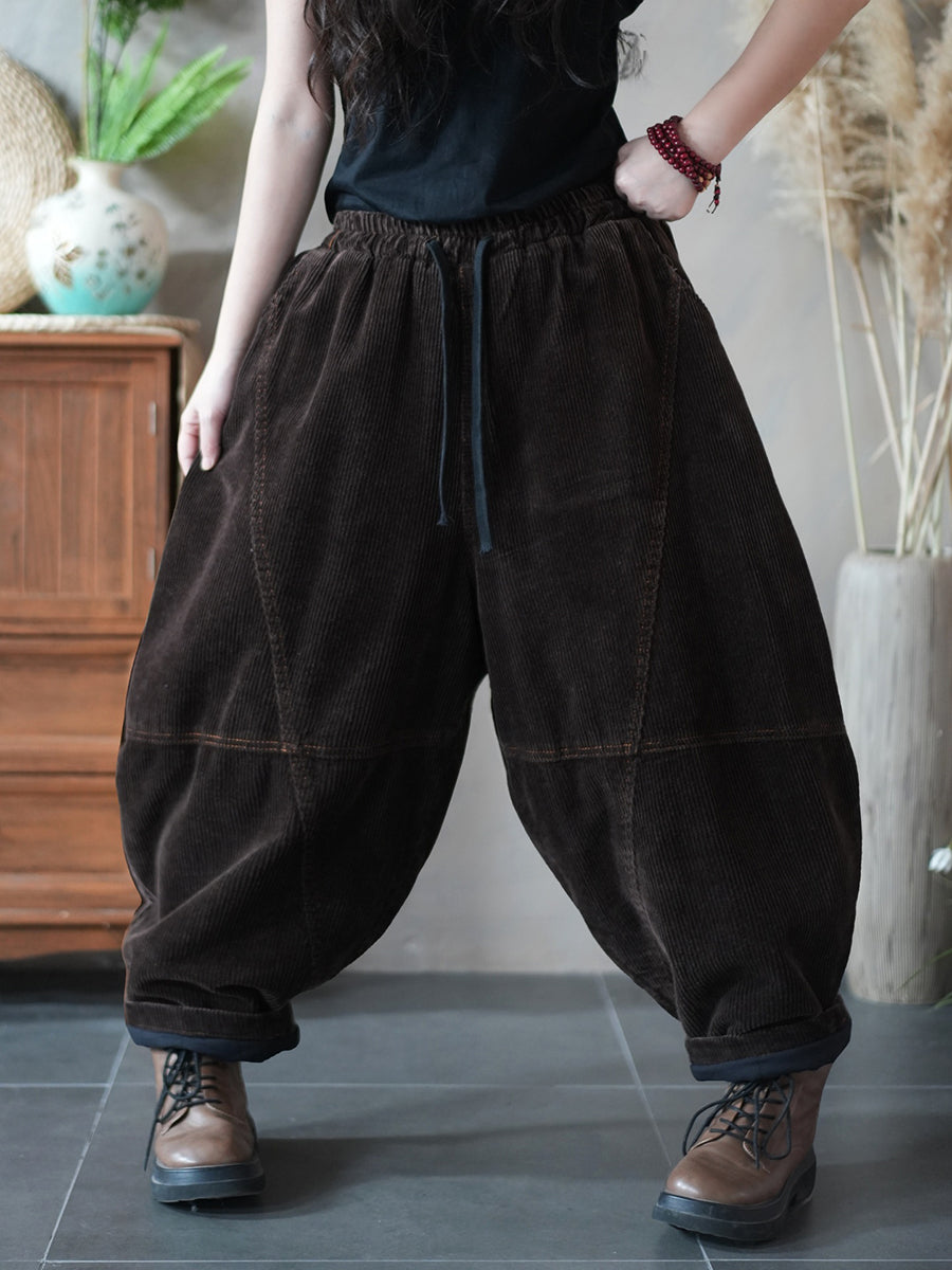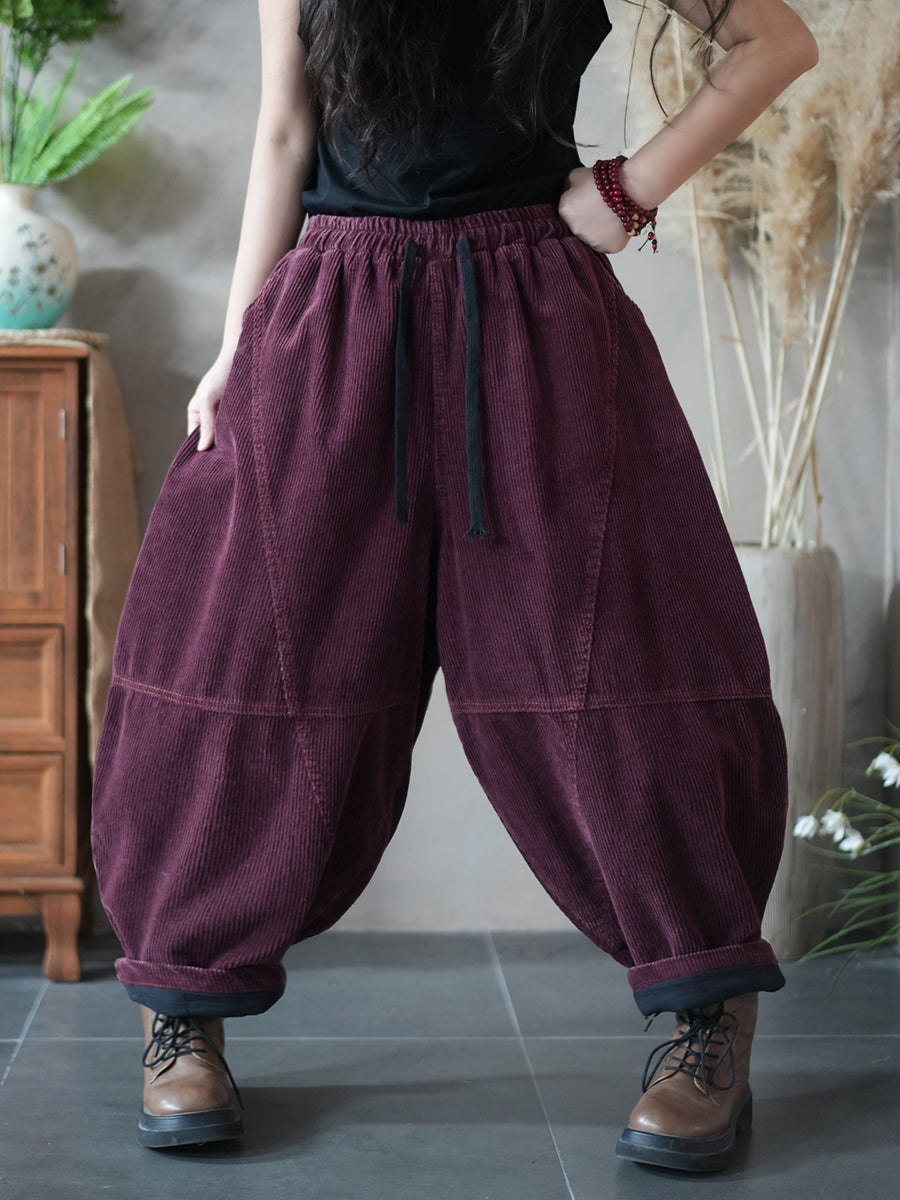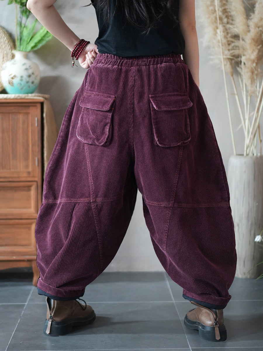 Calças de inverno femininas retrô de veludo cotelê acolchoadas em cores lisas