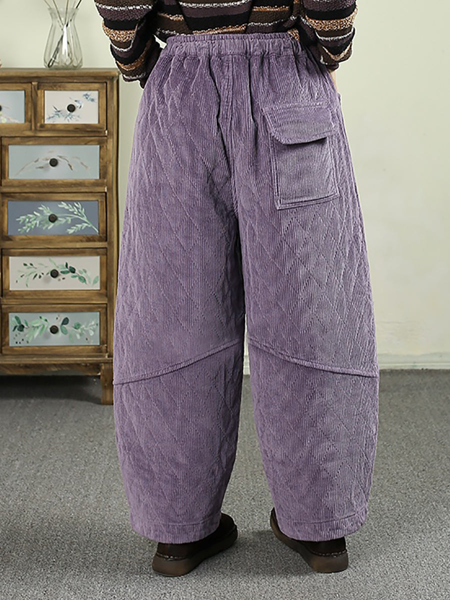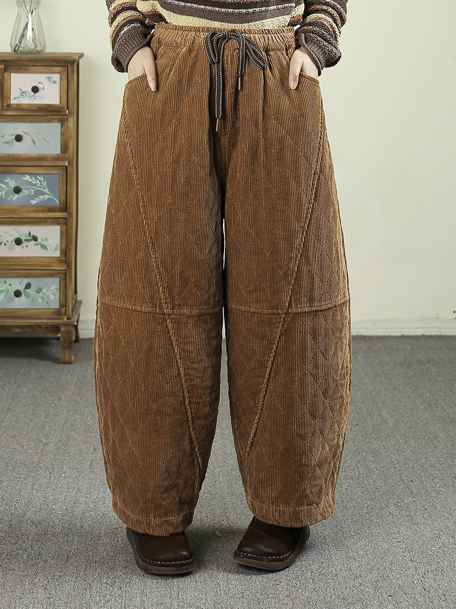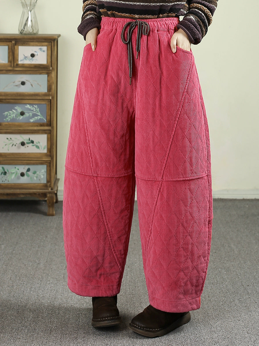 Calça Harem Feminina de Inverno Retrô em Veludo Cotelê Cor Sólida com Acolchoamento