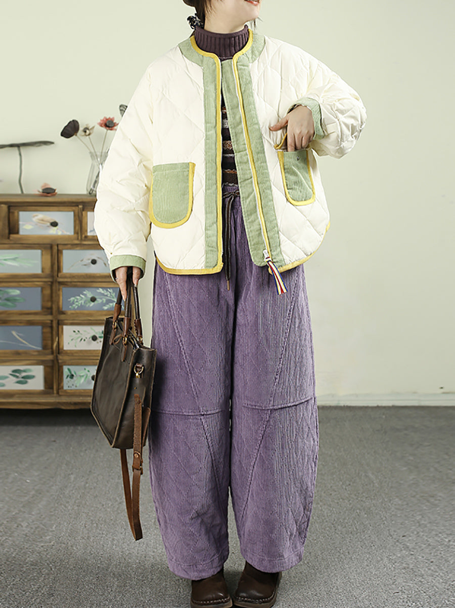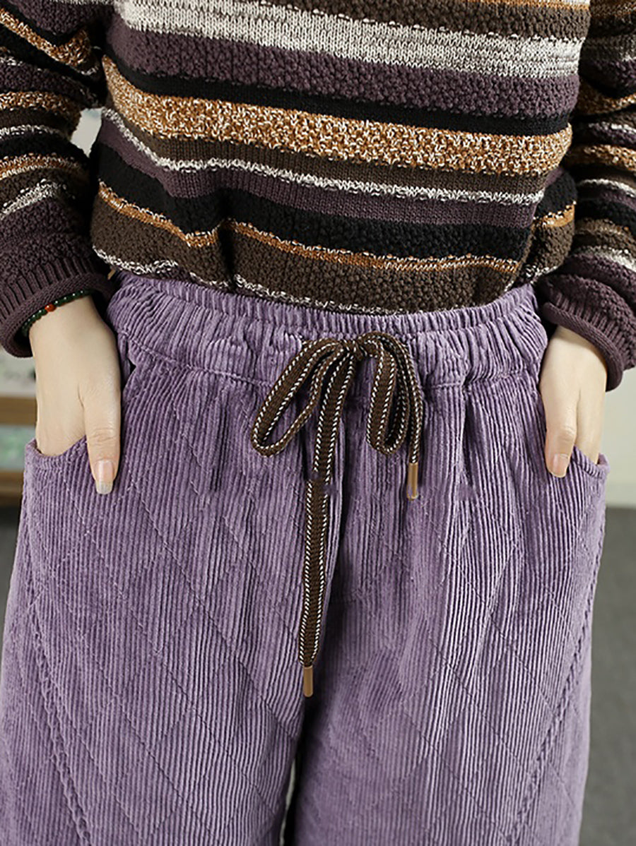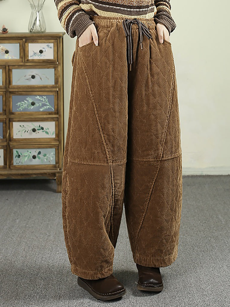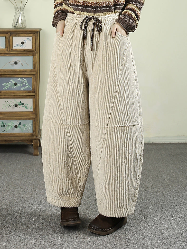 Calça Harem Feminina de Inverno Retrô em Veludo Cotelê Cor Sólida com Acolchoamento