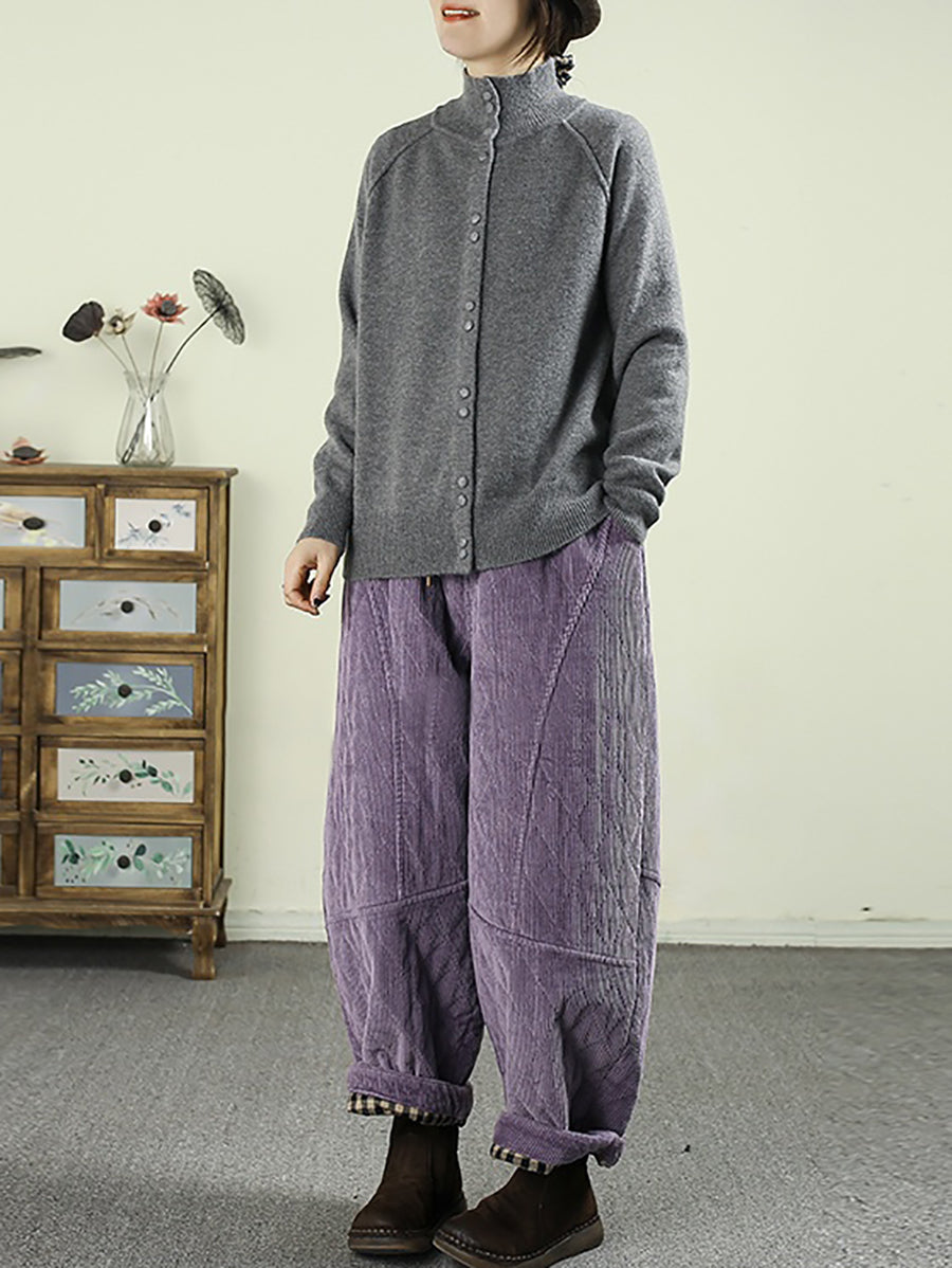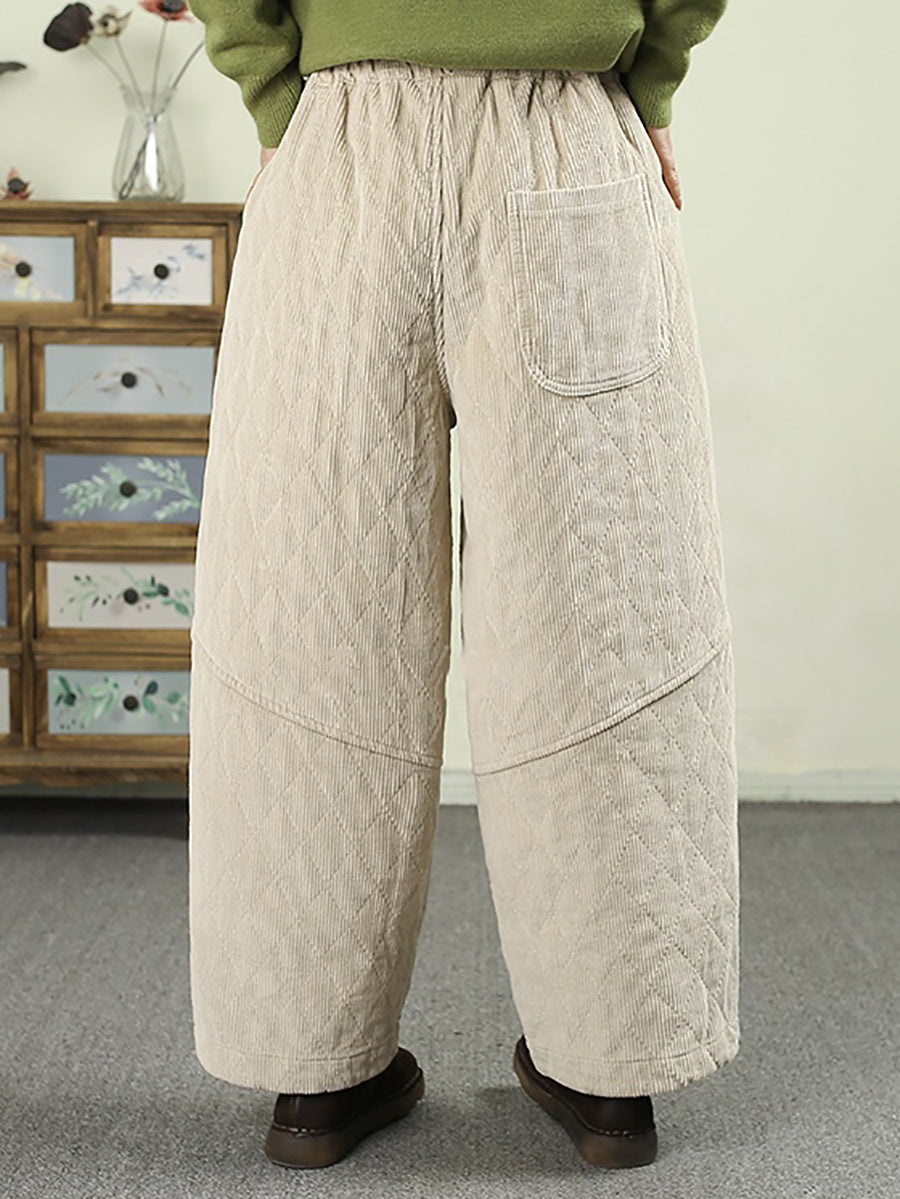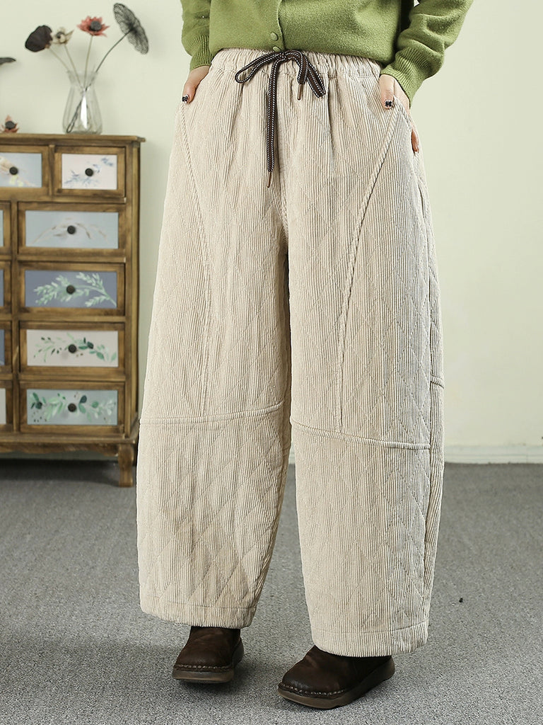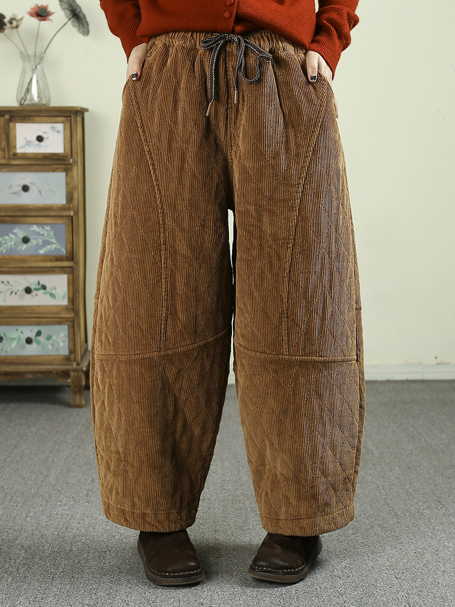 Calça Harem Feminina de Inverno Retrô em Veludo Cotelê Cor Sólida com Acolchoamento