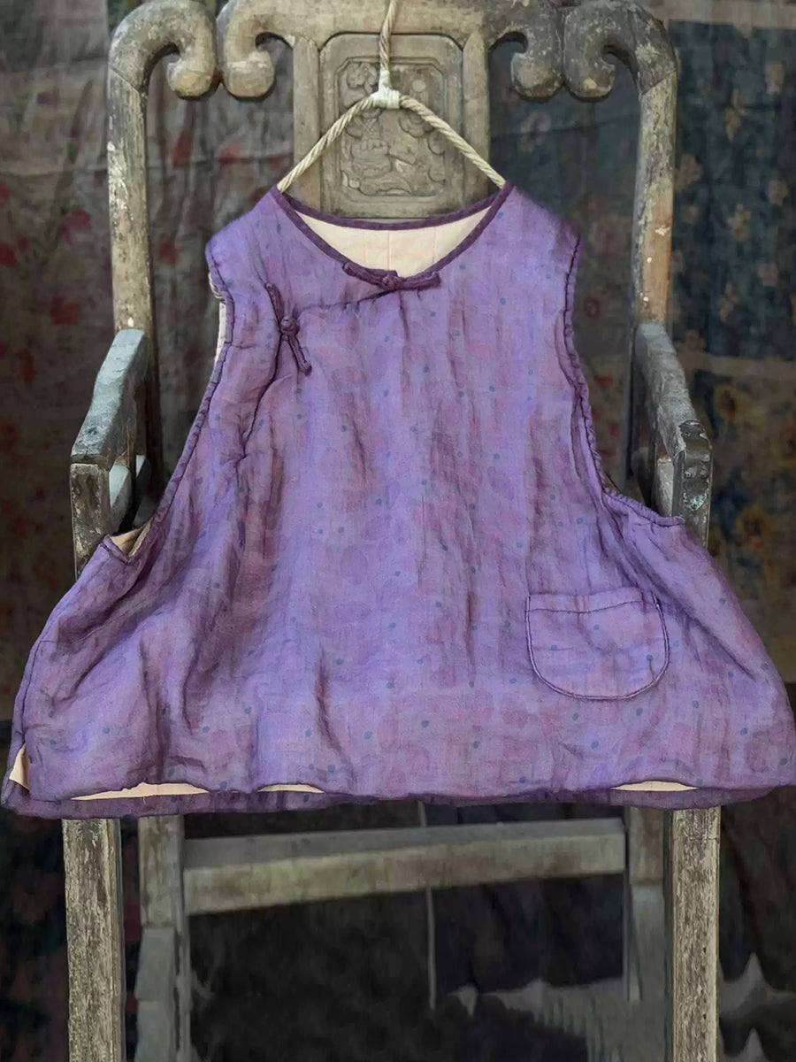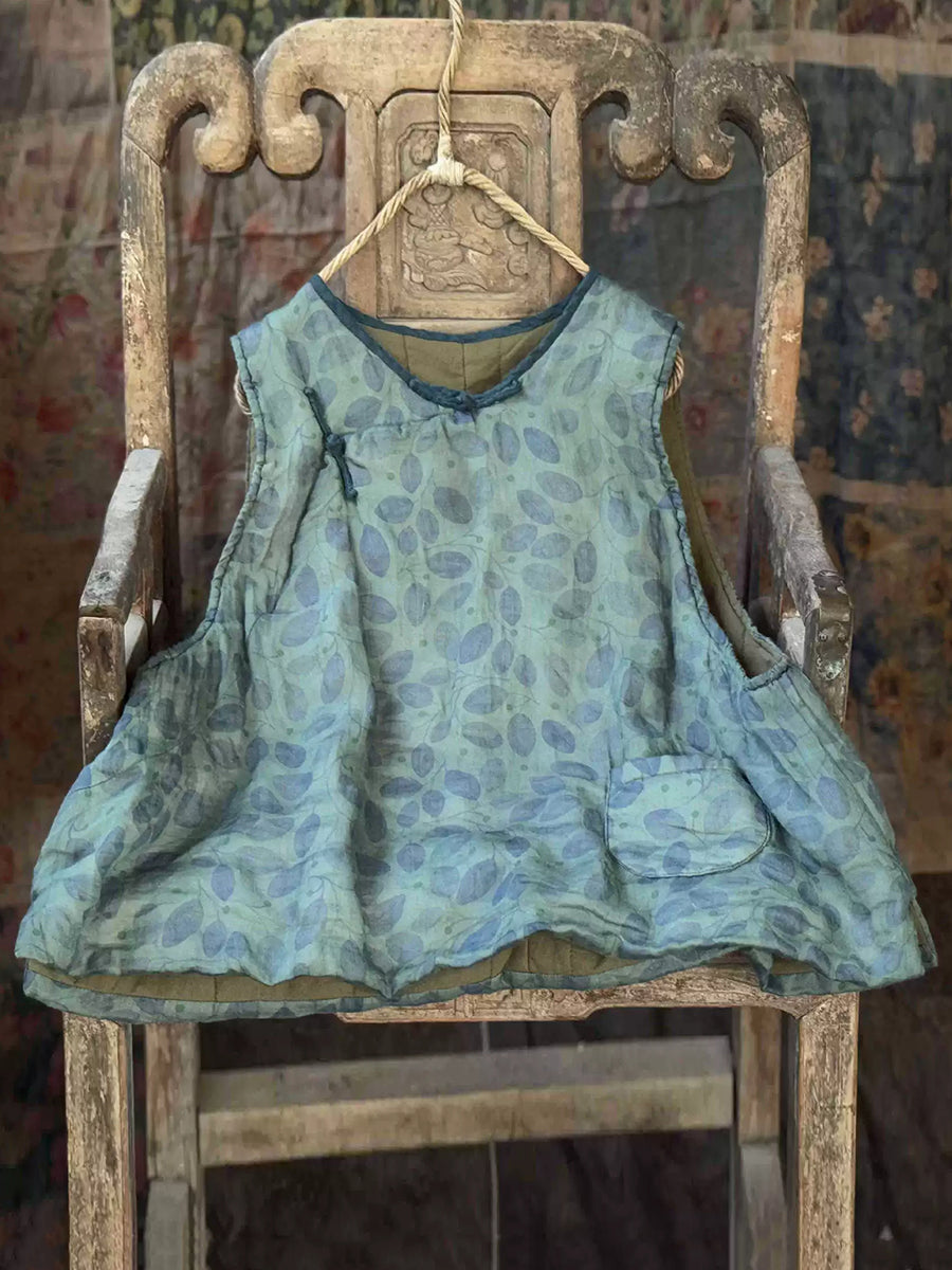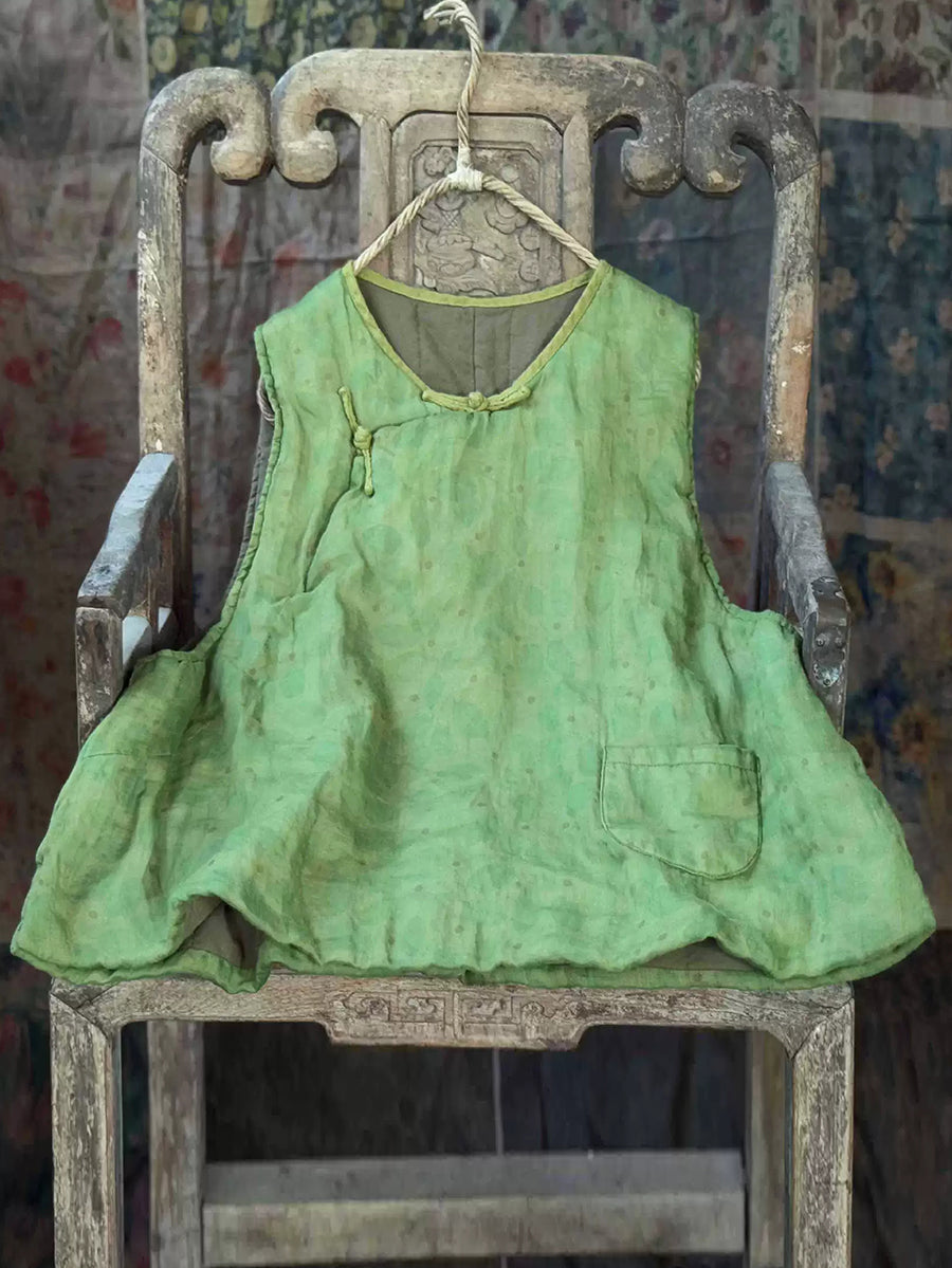Colete acolchoado feminino de inverno retrô em rami, cor lisa, gola redonda.