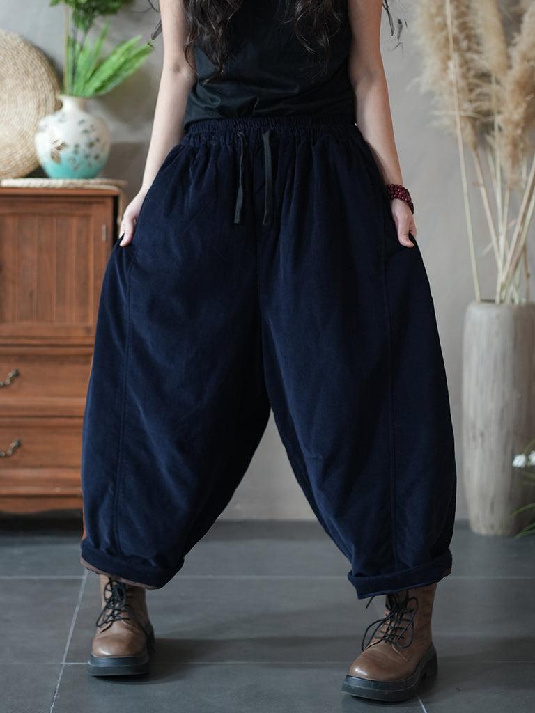 Calções de inverno femininos retrô com enchimento em cores lisas