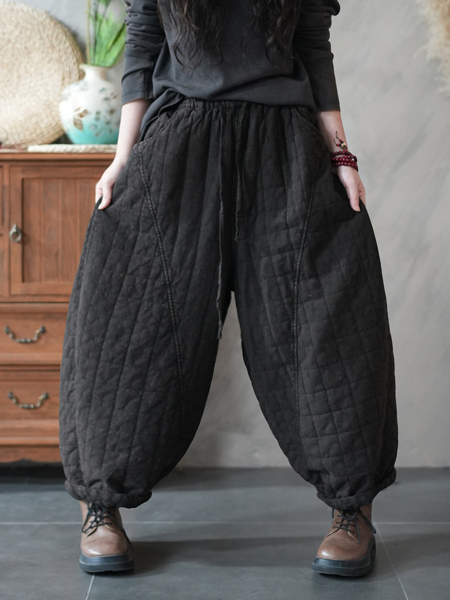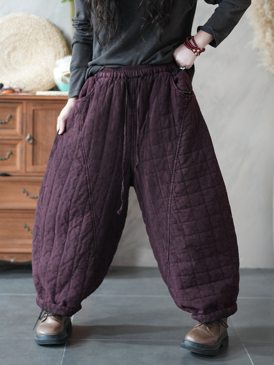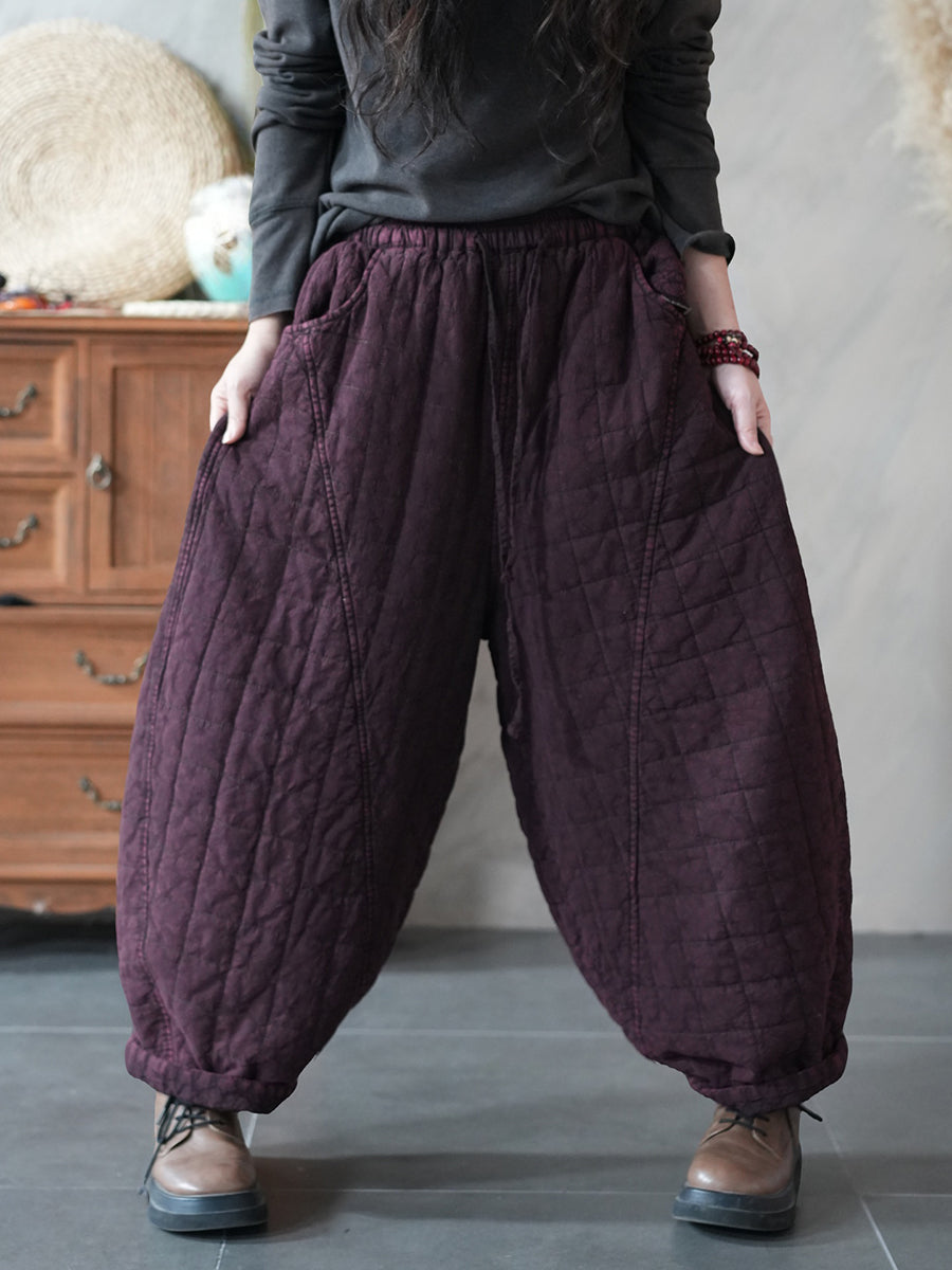 Calça Harem Acolchoada Feminina Retrô de Inverno em Cor Lisa