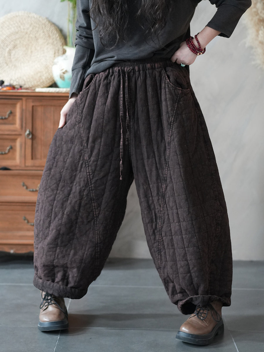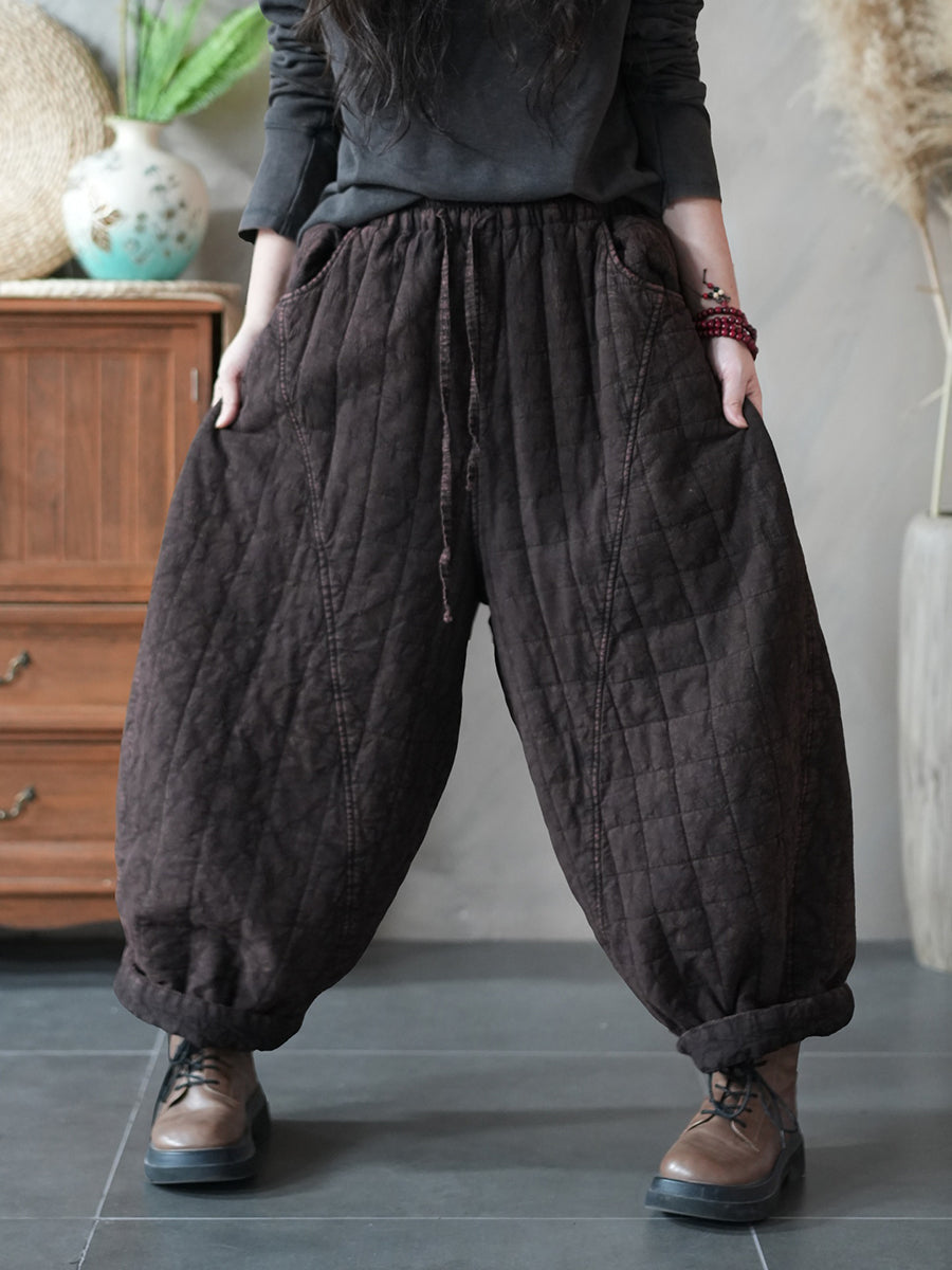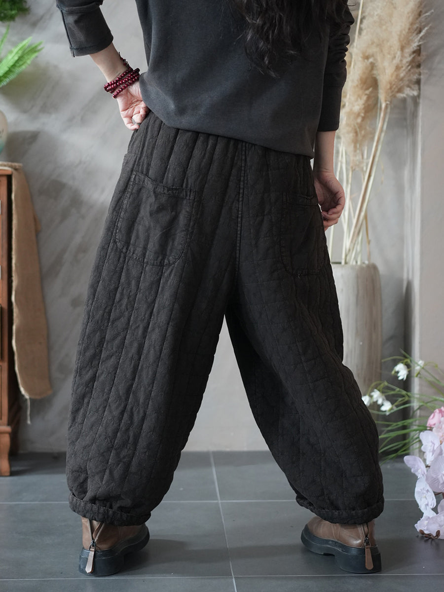Calça Harem Acolchoada Feminina Retrô de Inverno em Cor Lisa