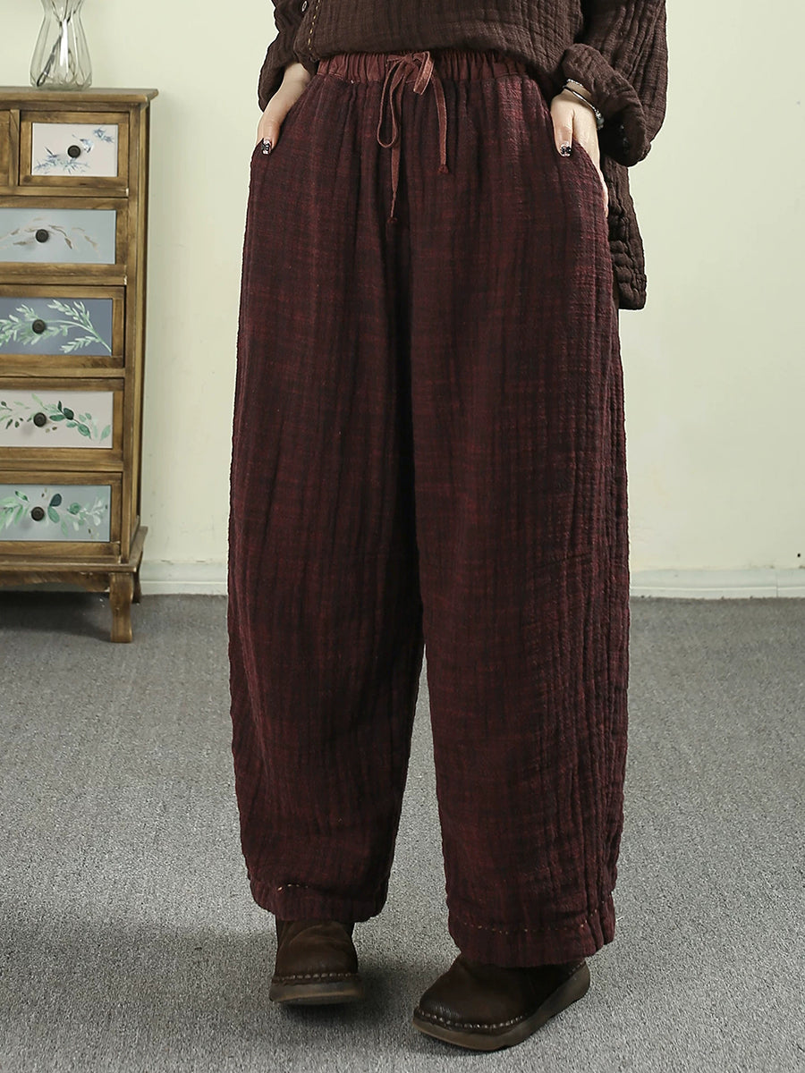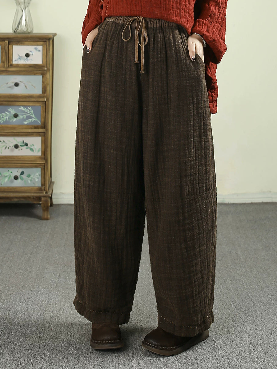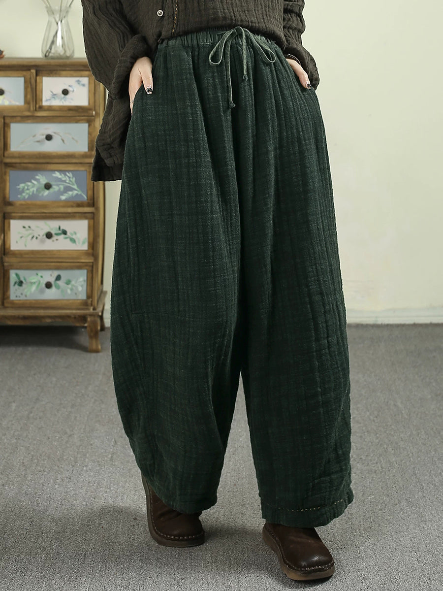 Calça Harem Acolchoada Feminina Retrô de Inverno em Cor Lisa