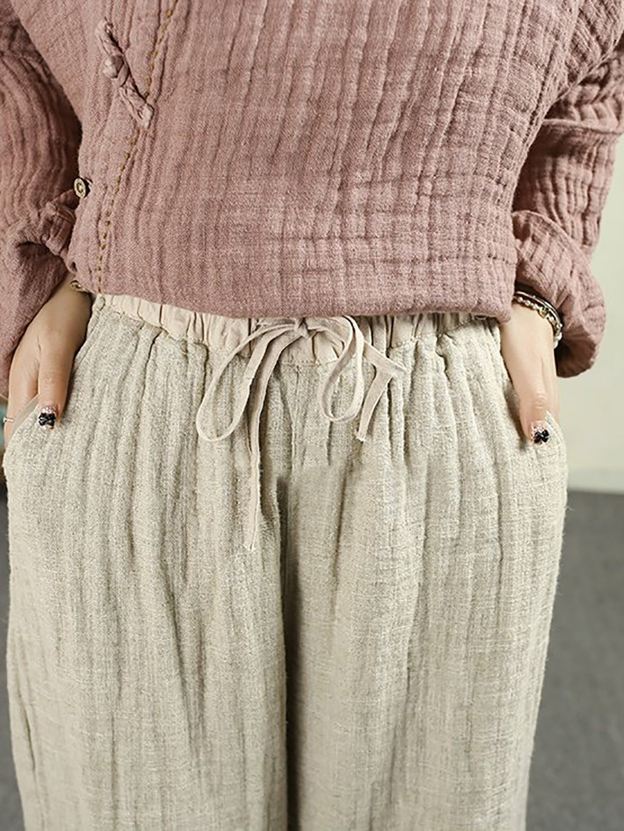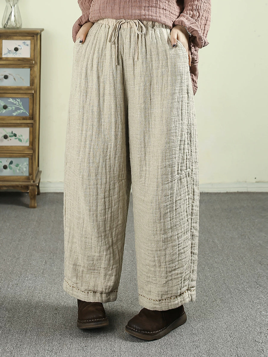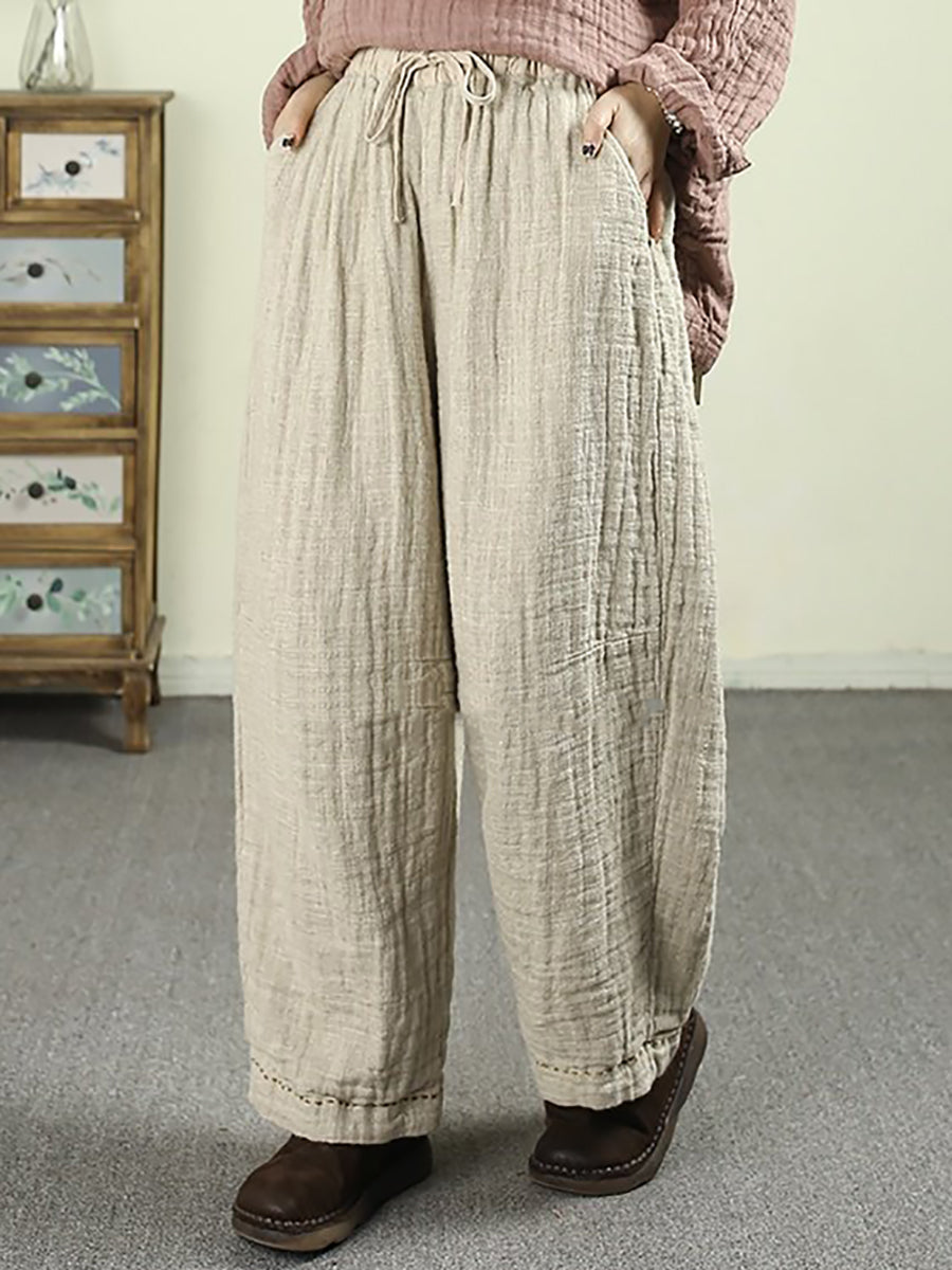 Calça Harem Acolchoada Feminina Retrô de Inverno em Cor Lisa