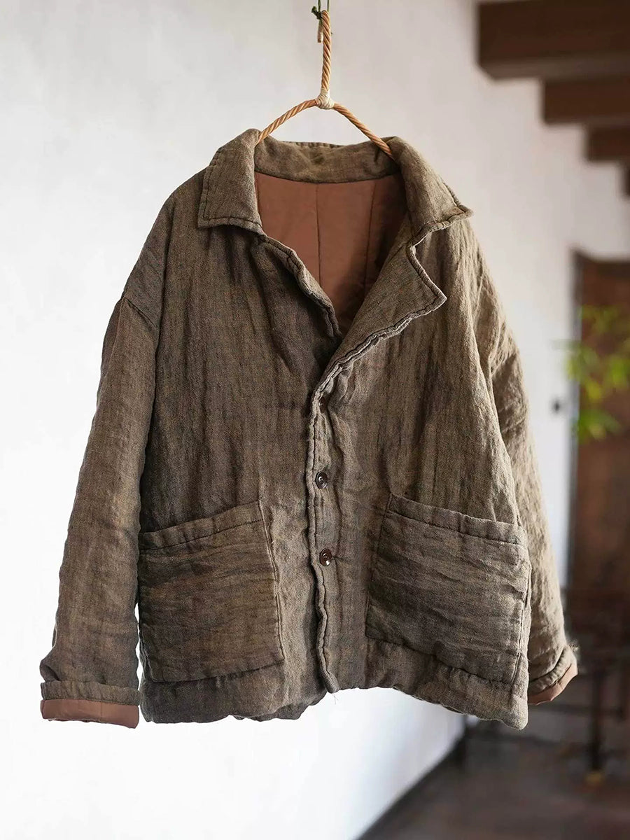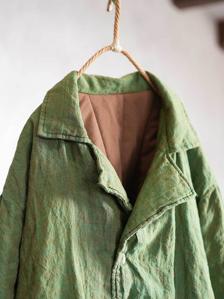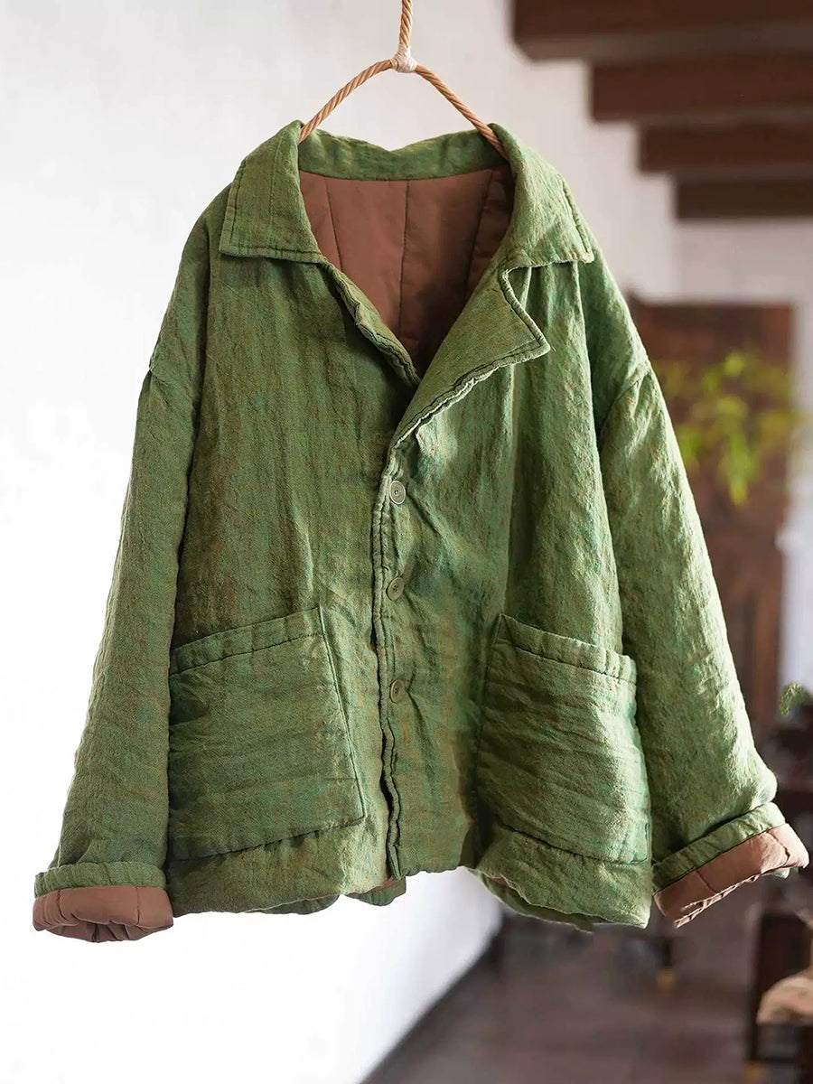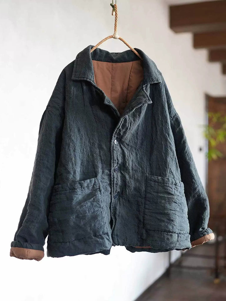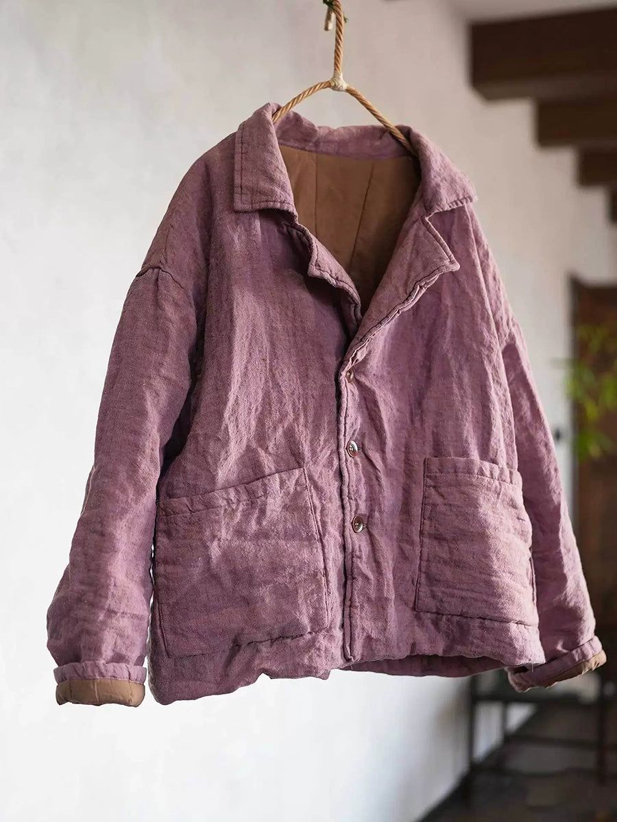 Casaco acolchoado feminino de inverno retrô em cor lisa com gola dobrável