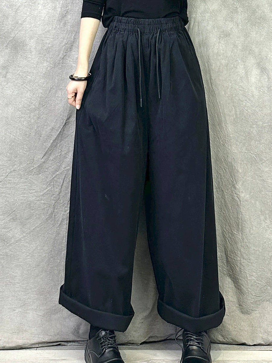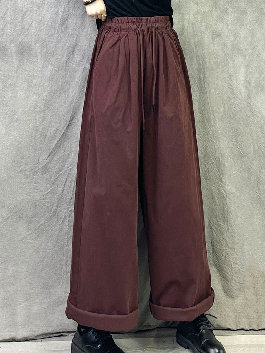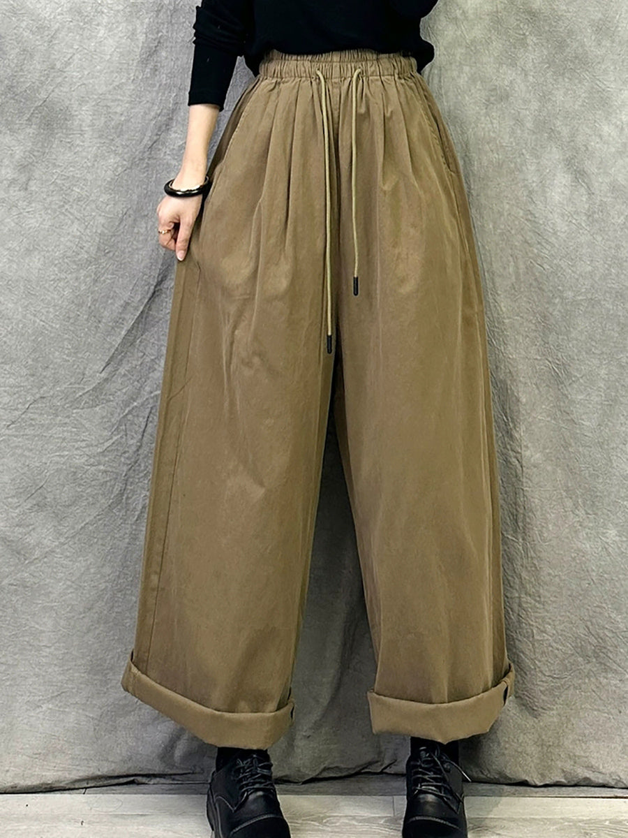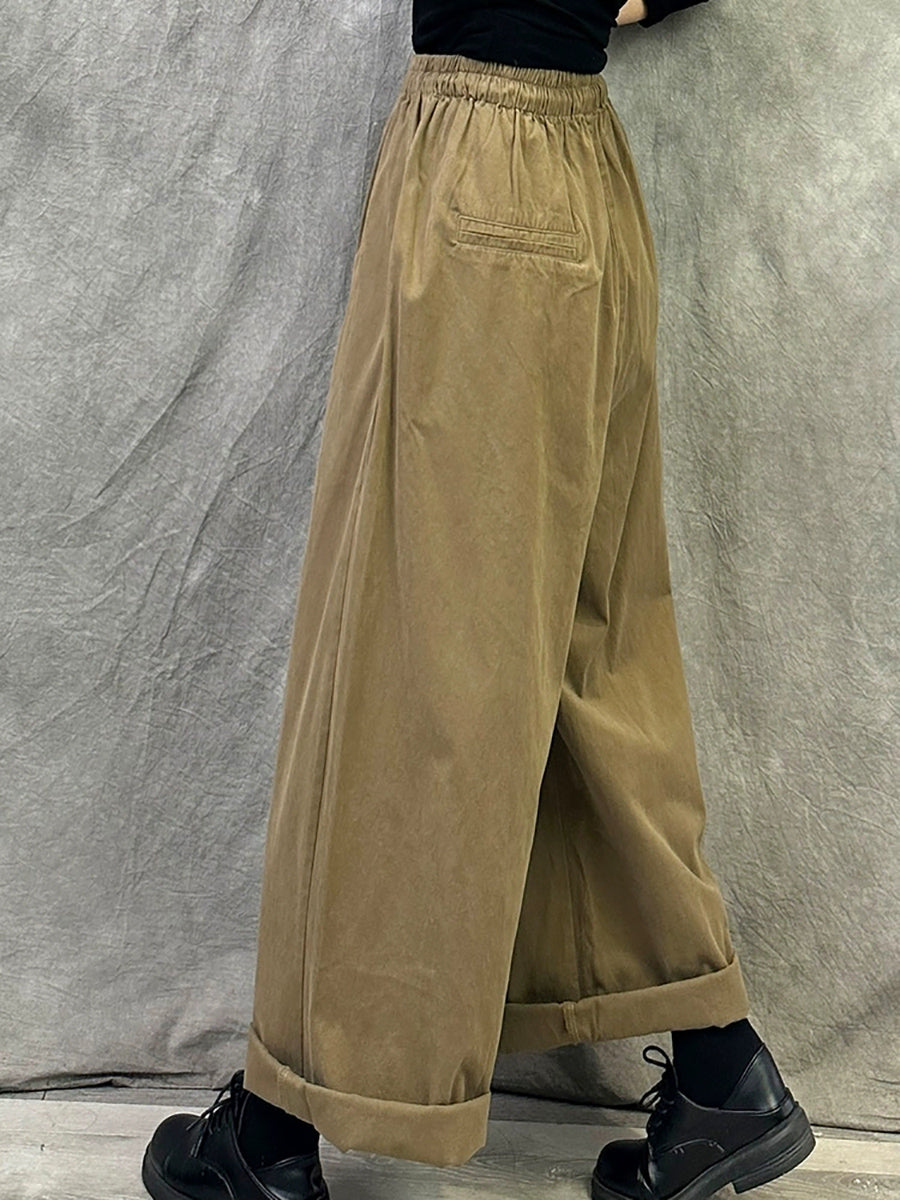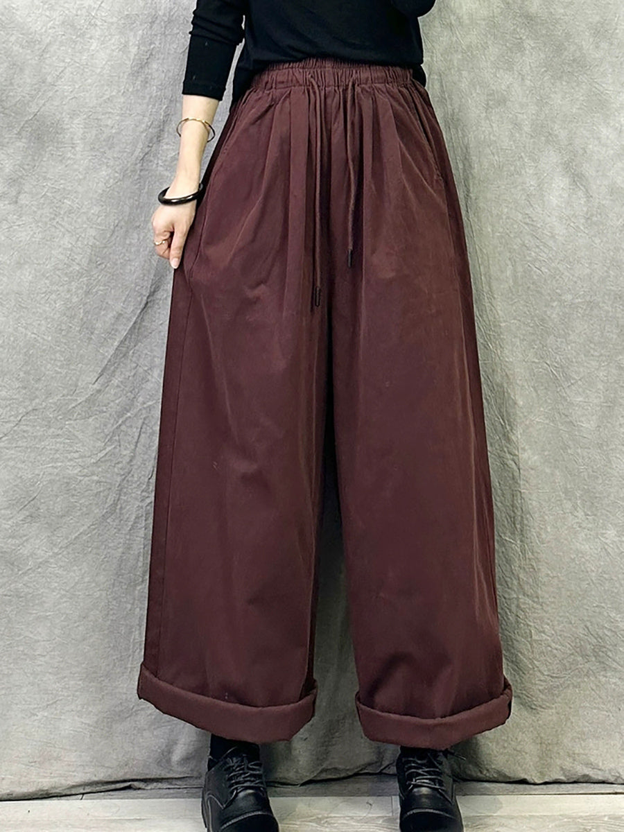 Calça feminina de inverno retrô de cor lisa com pernas largas