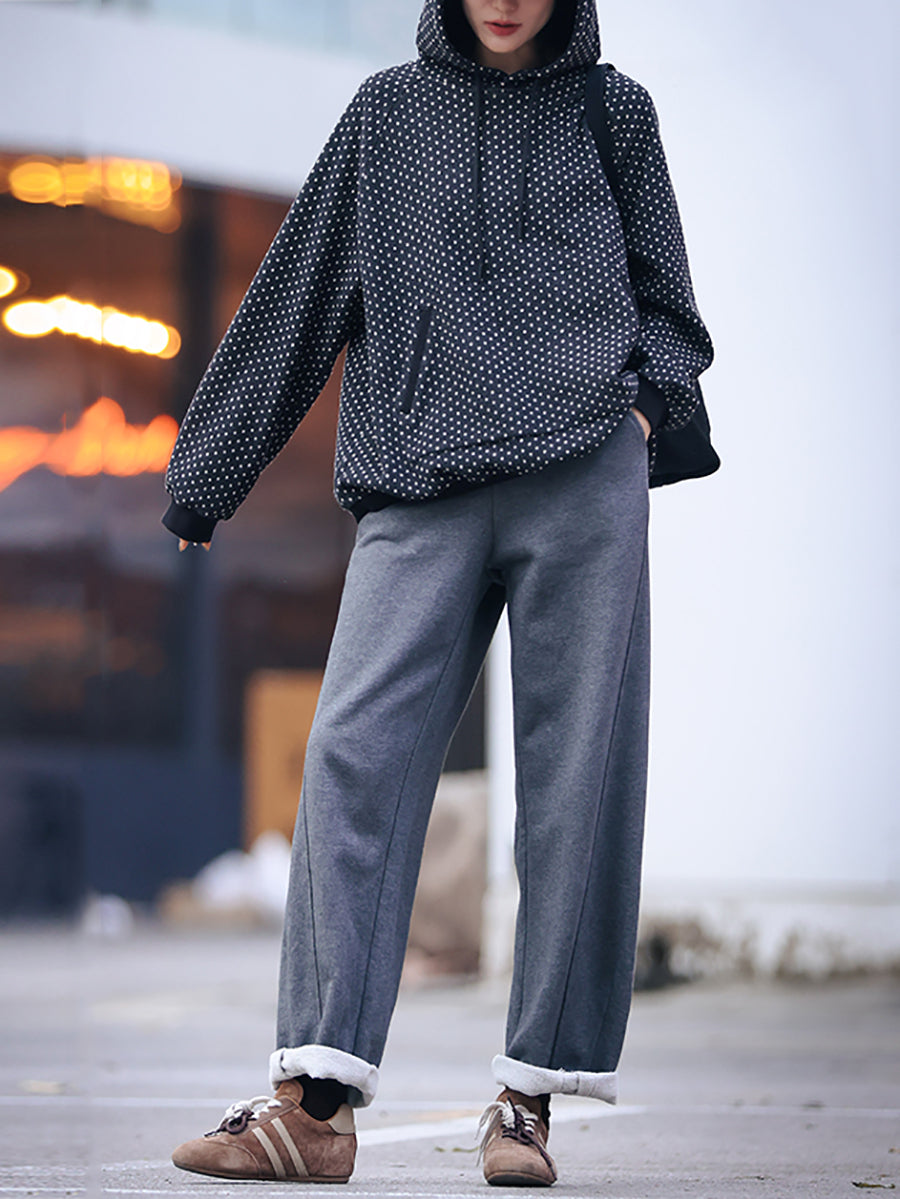 Moletom feminino de inverno com estampa vintage de bolinhas.