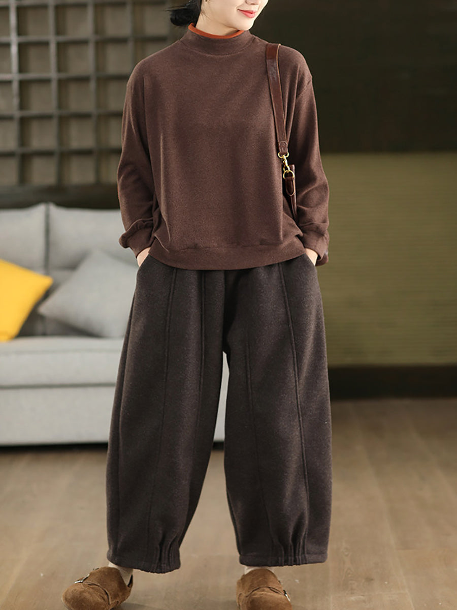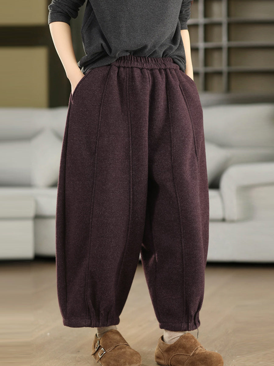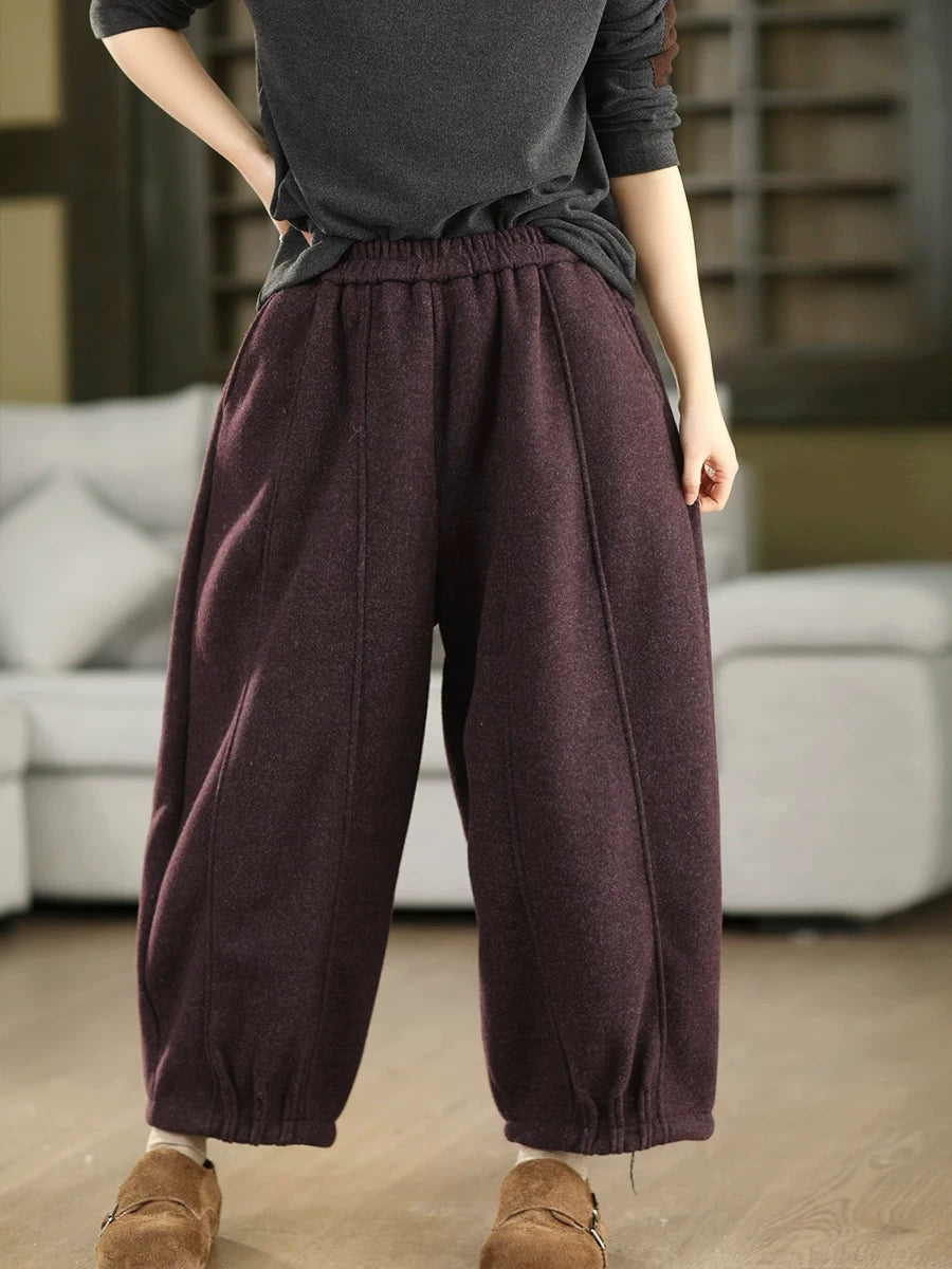 Calça Harem Feminina Vintage de Inverno com Forro de Lã