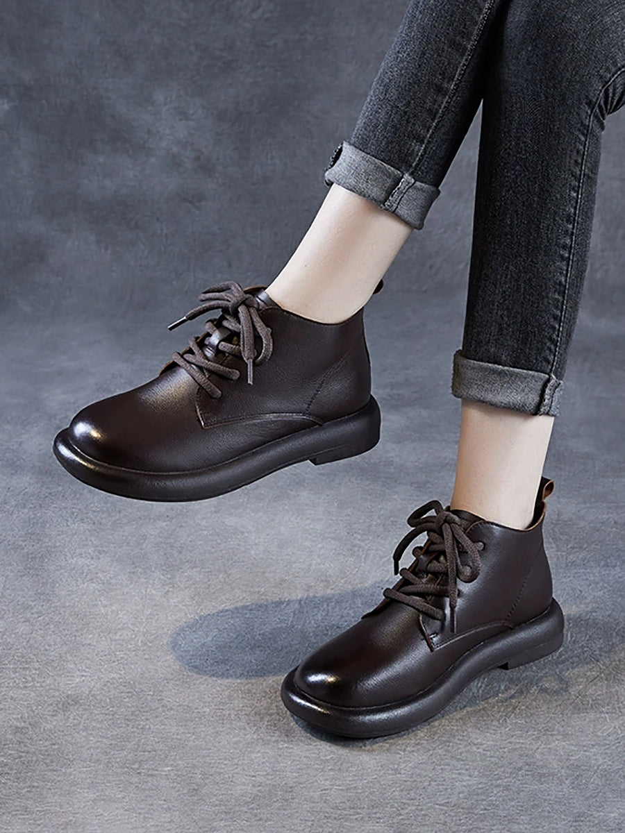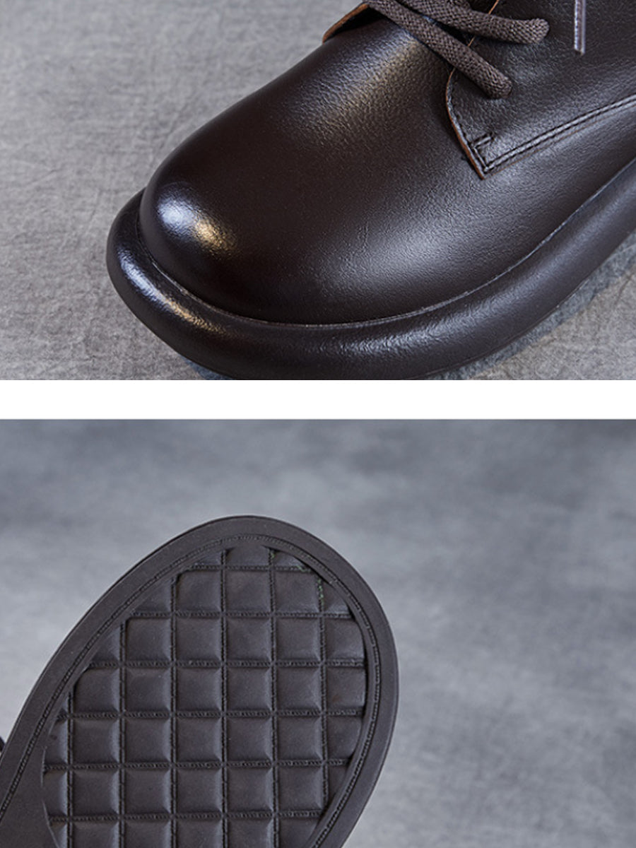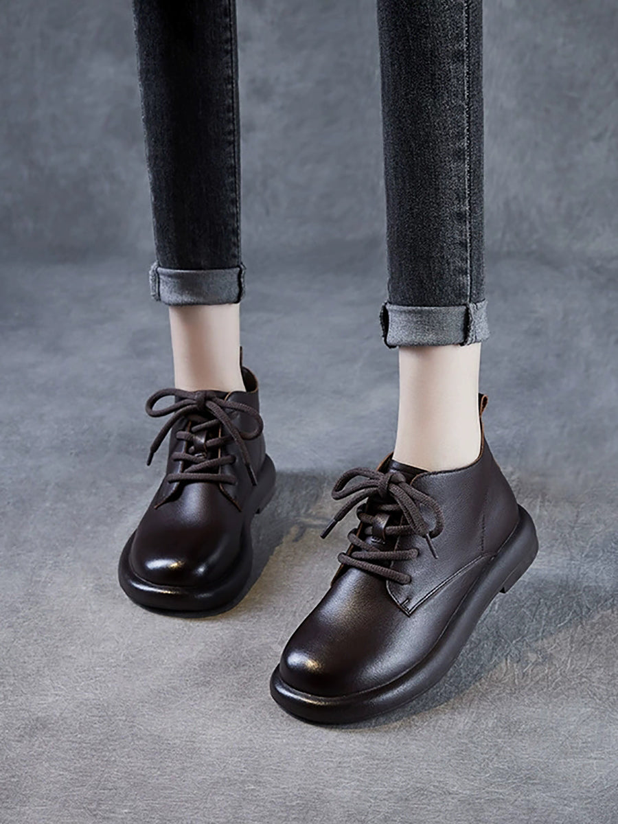 Botas de cano curto femininas de inverno em couro legítimo estilo vintage