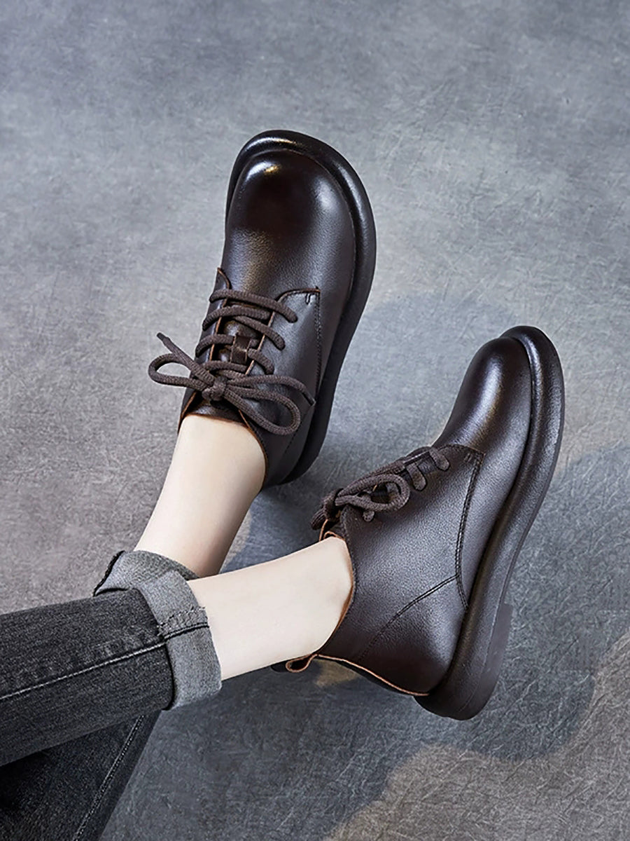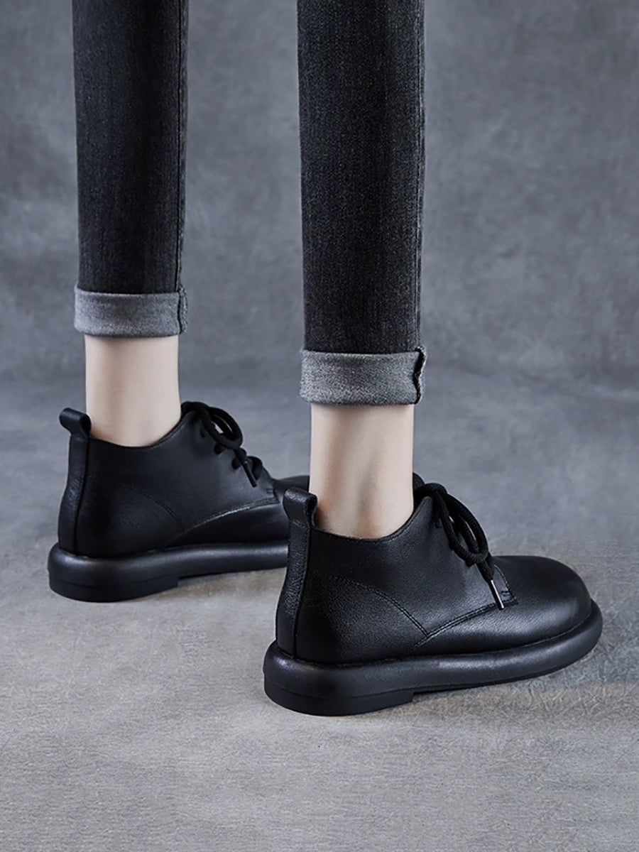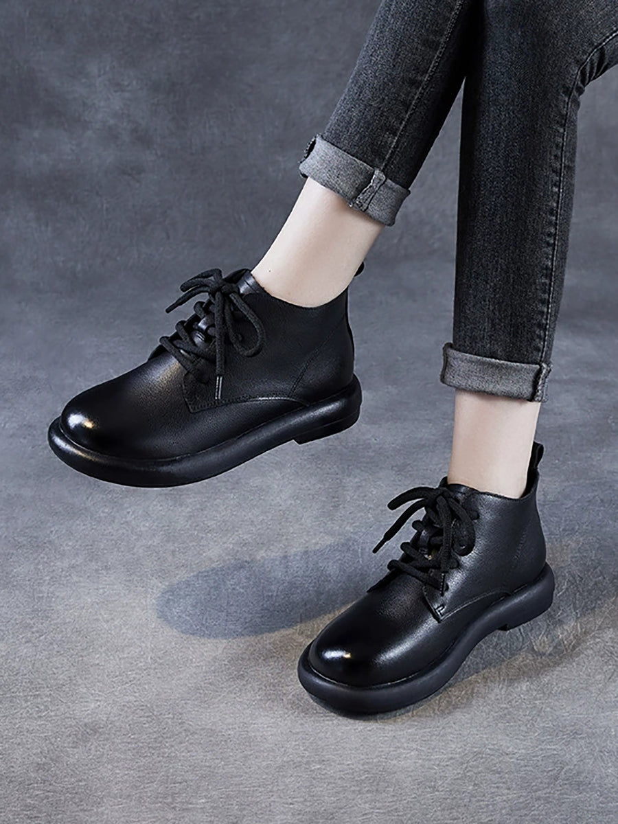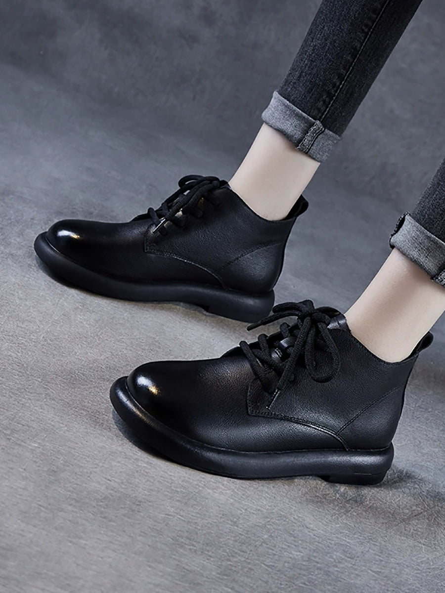 Botas de cano curto femininas de inverno em couro legítimo estilo vintage