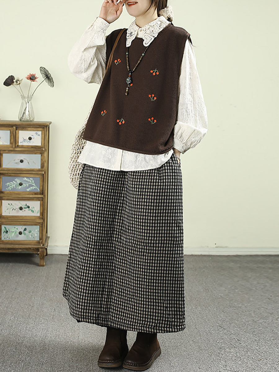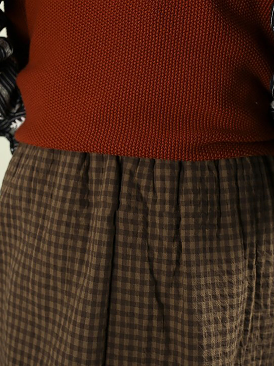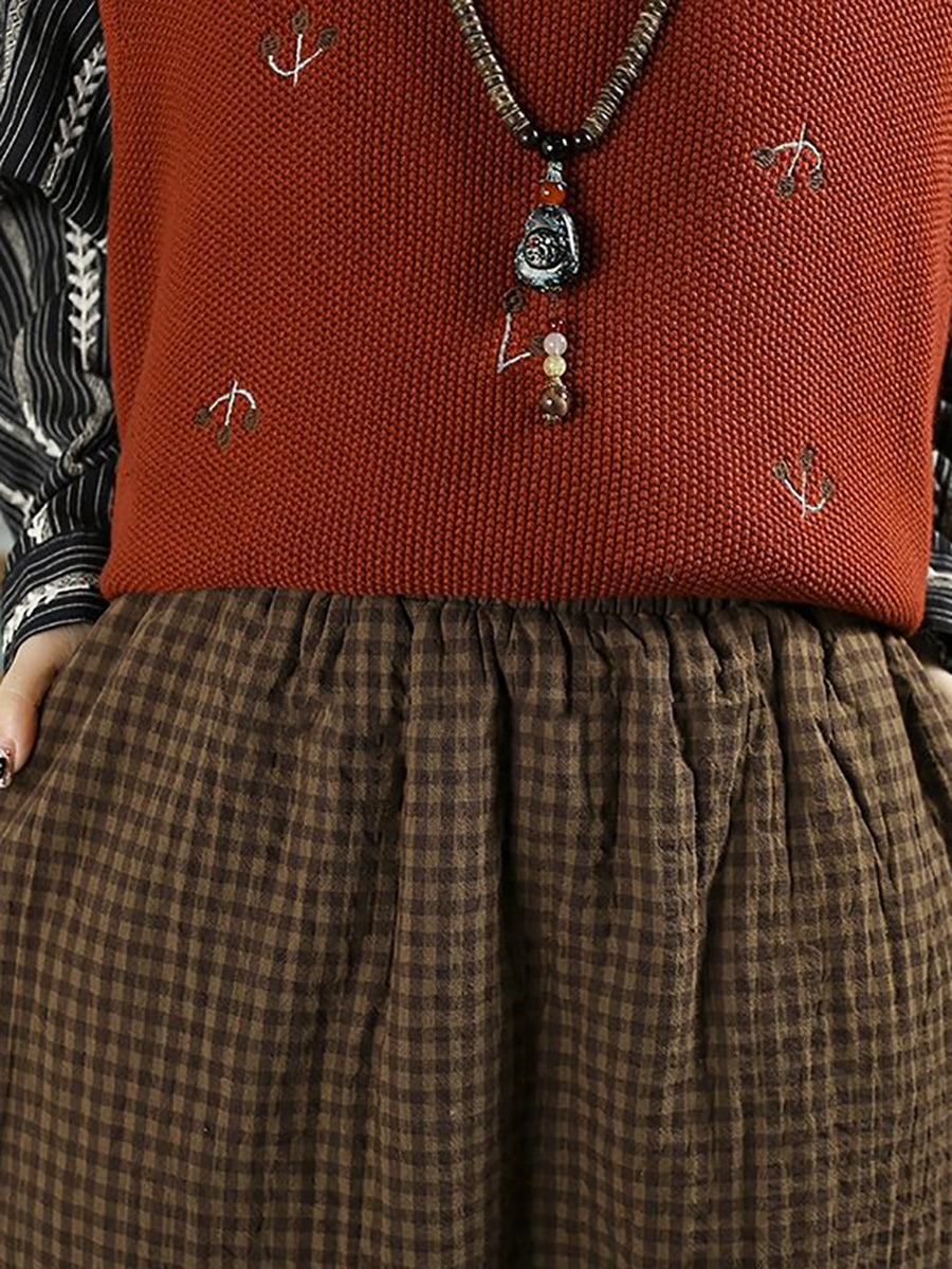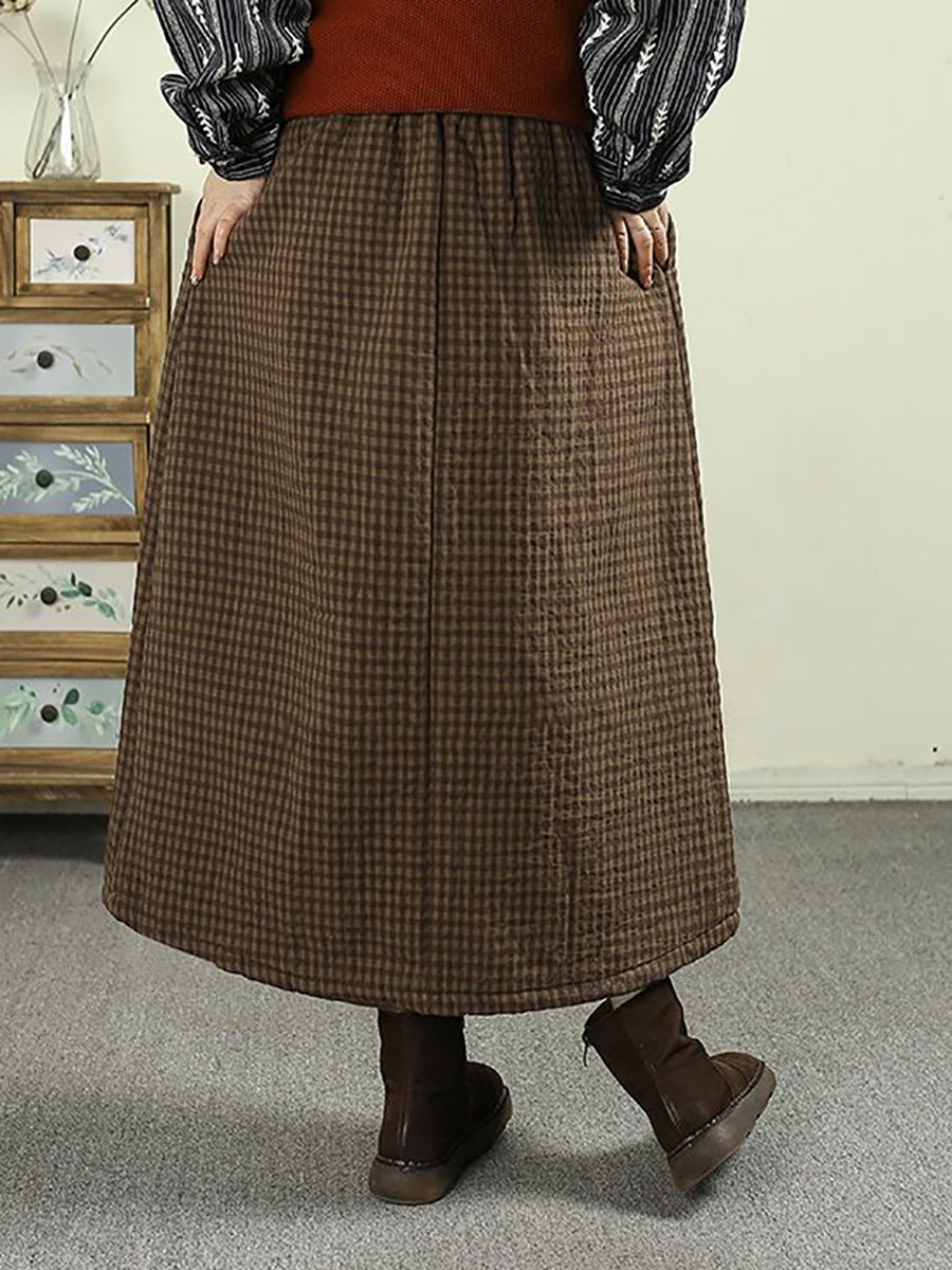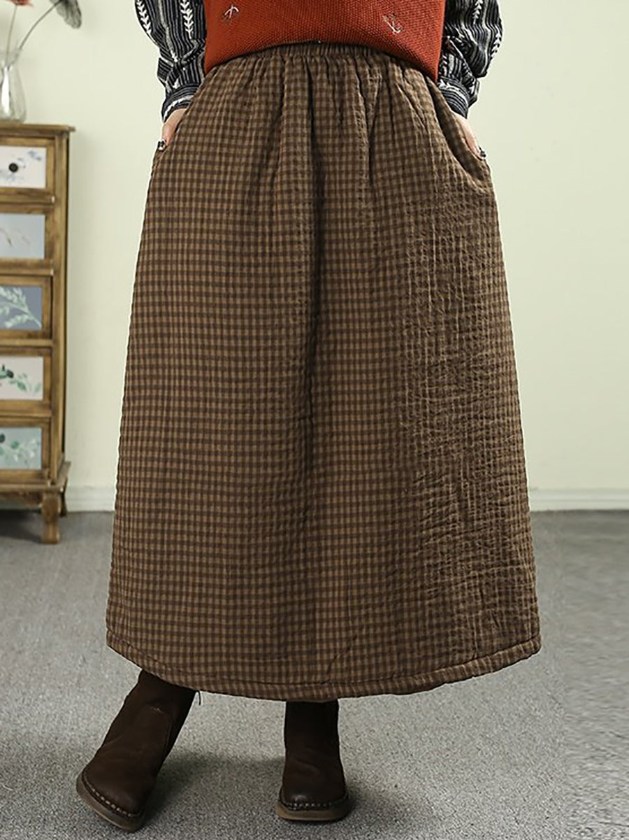 Saia acolchoada feminina vintage de inverno com estampa xadrez, 100% algodão.