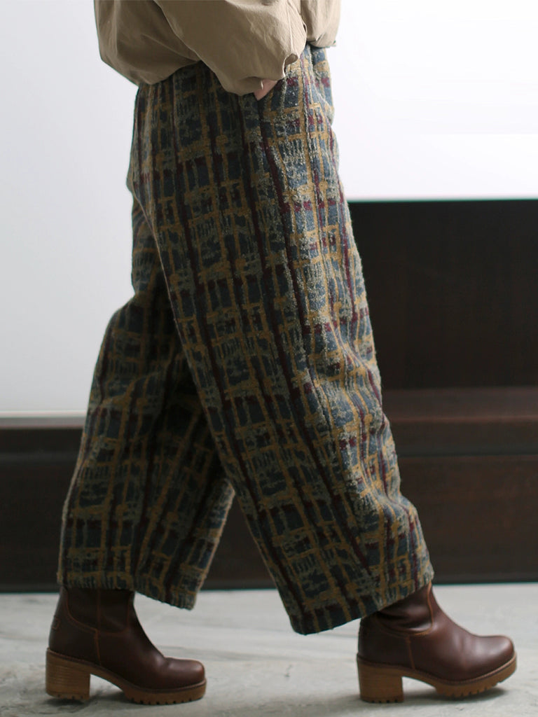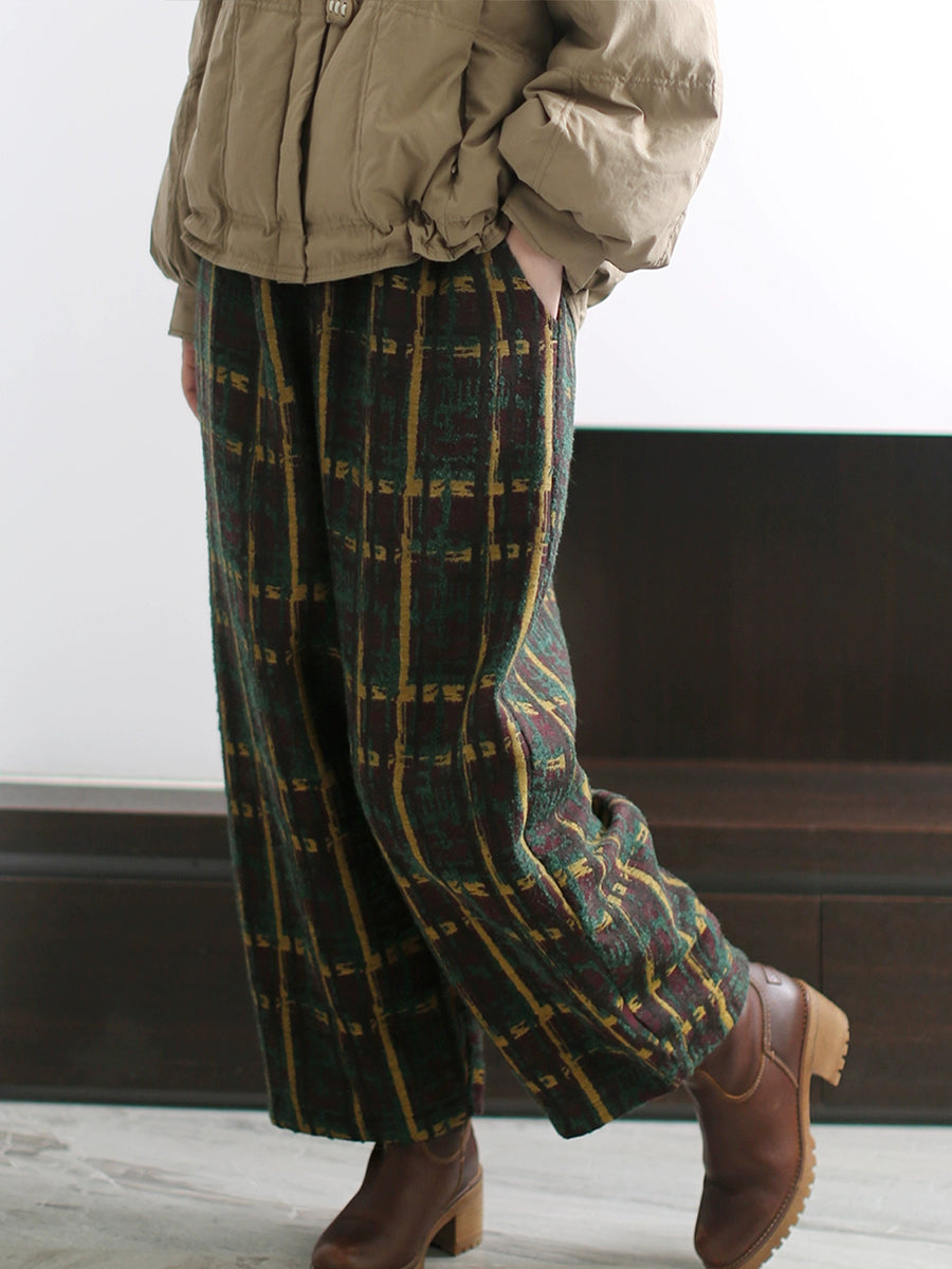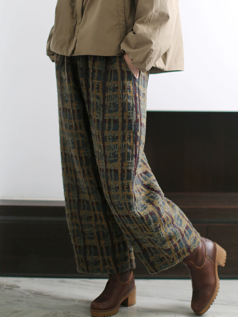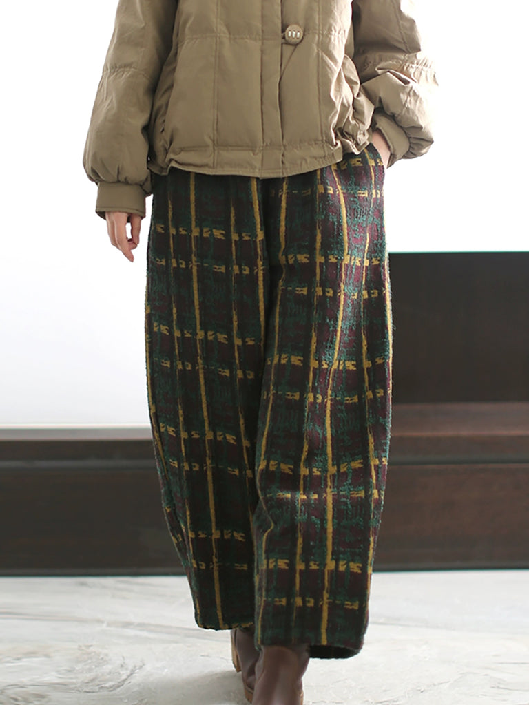 Calças harém femininas de inverno vintage xadrez jacquard de lã