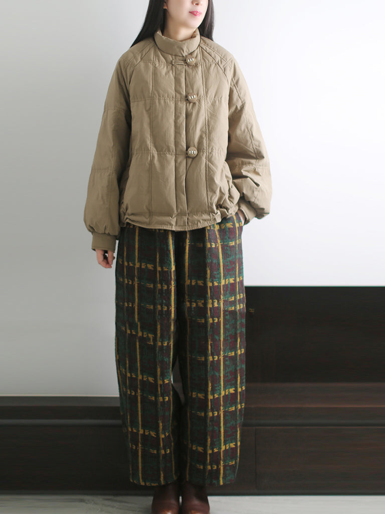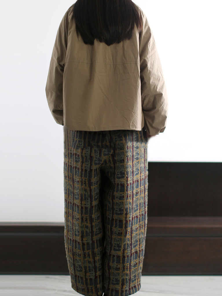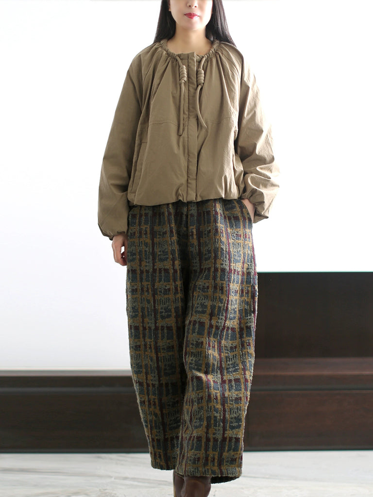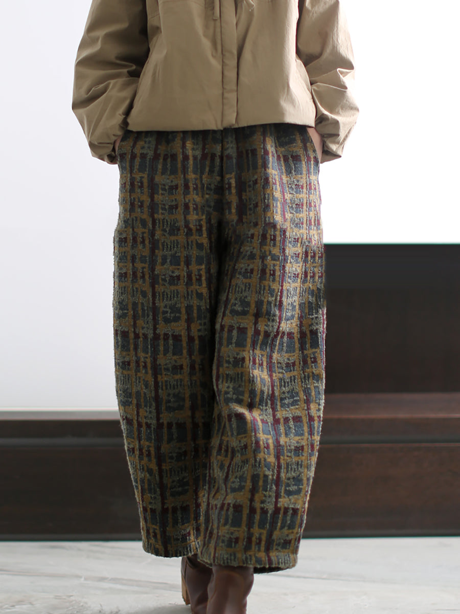 Calças harém femininas de inverno vintage xadrez jacquard de lã