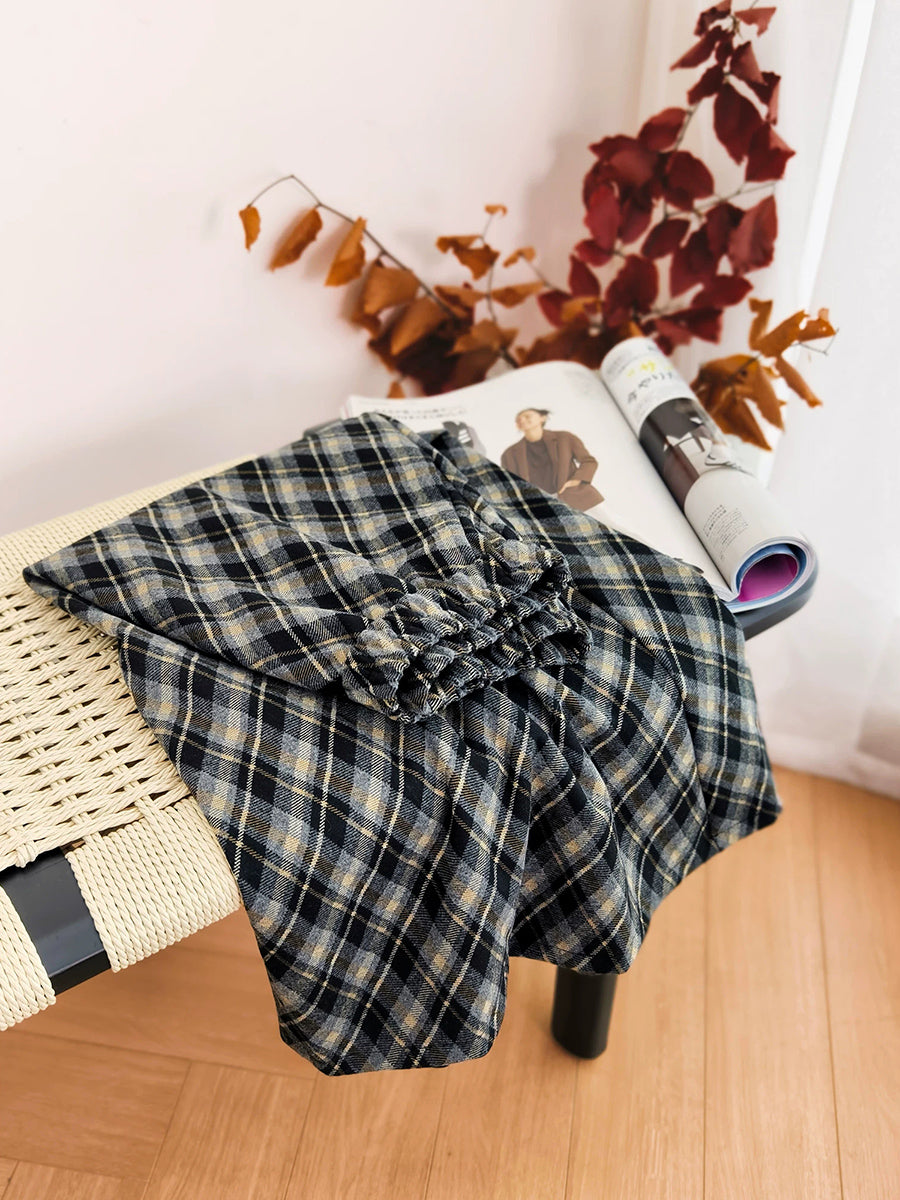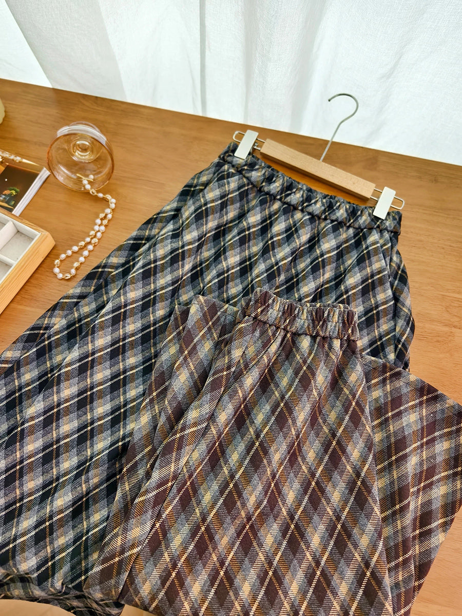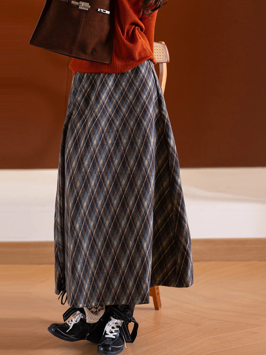 Saia grossa vintage de inverno com losangos para mulheres
