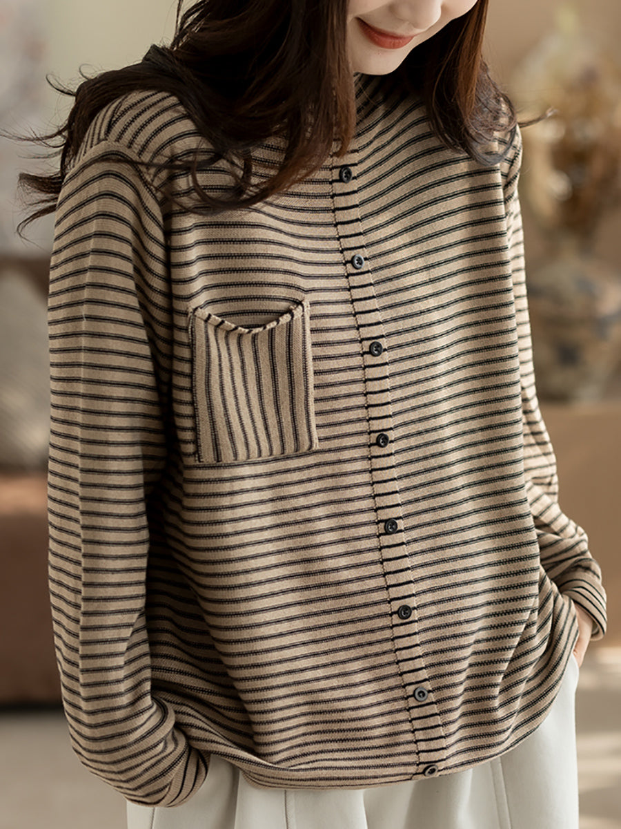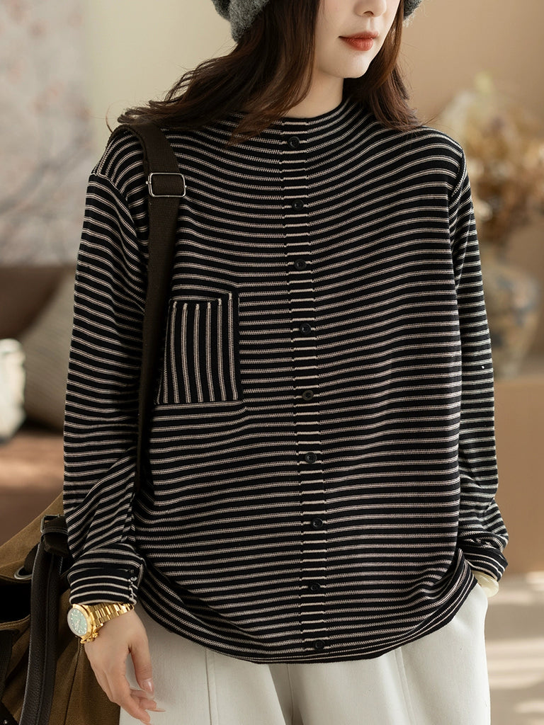 Confeccionada com uma mistura premium de 93,1% poliéster e 6,9% elastano, esta blusa de gola alta feminina oferece conforto e durabilidade excepcionais. A clássica estampa listrada adiciona um toque de sofisticação atemporal, enquanto as mangas compridas regulares proporcionam diversas opções de sobreposição de peças. Com um design casual, esta peça transita facilmente do outono para o inverno, tornando-se um item essencial para qualquer guarda-roupa sazonal.