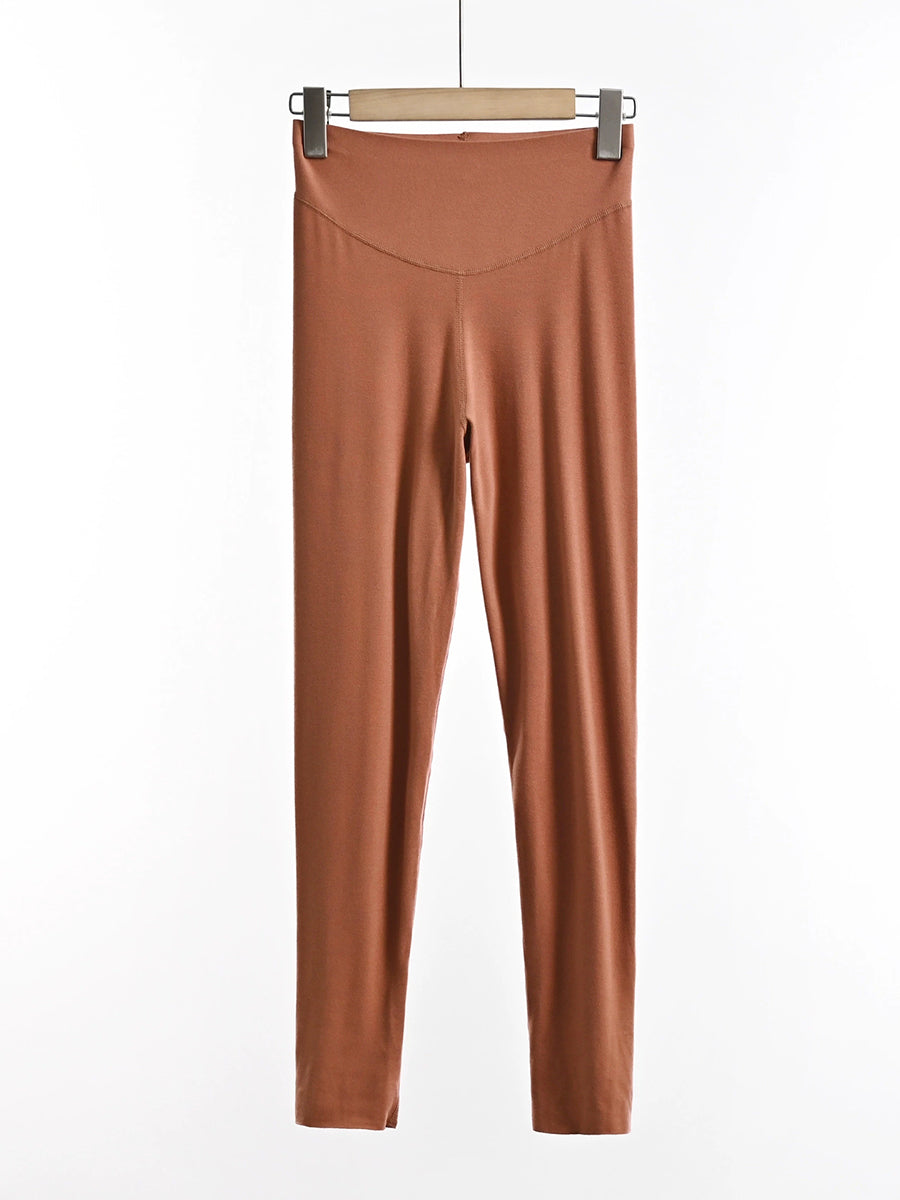 Leggings femininas de inverno, quentes, de cor lisa e cintura alta.