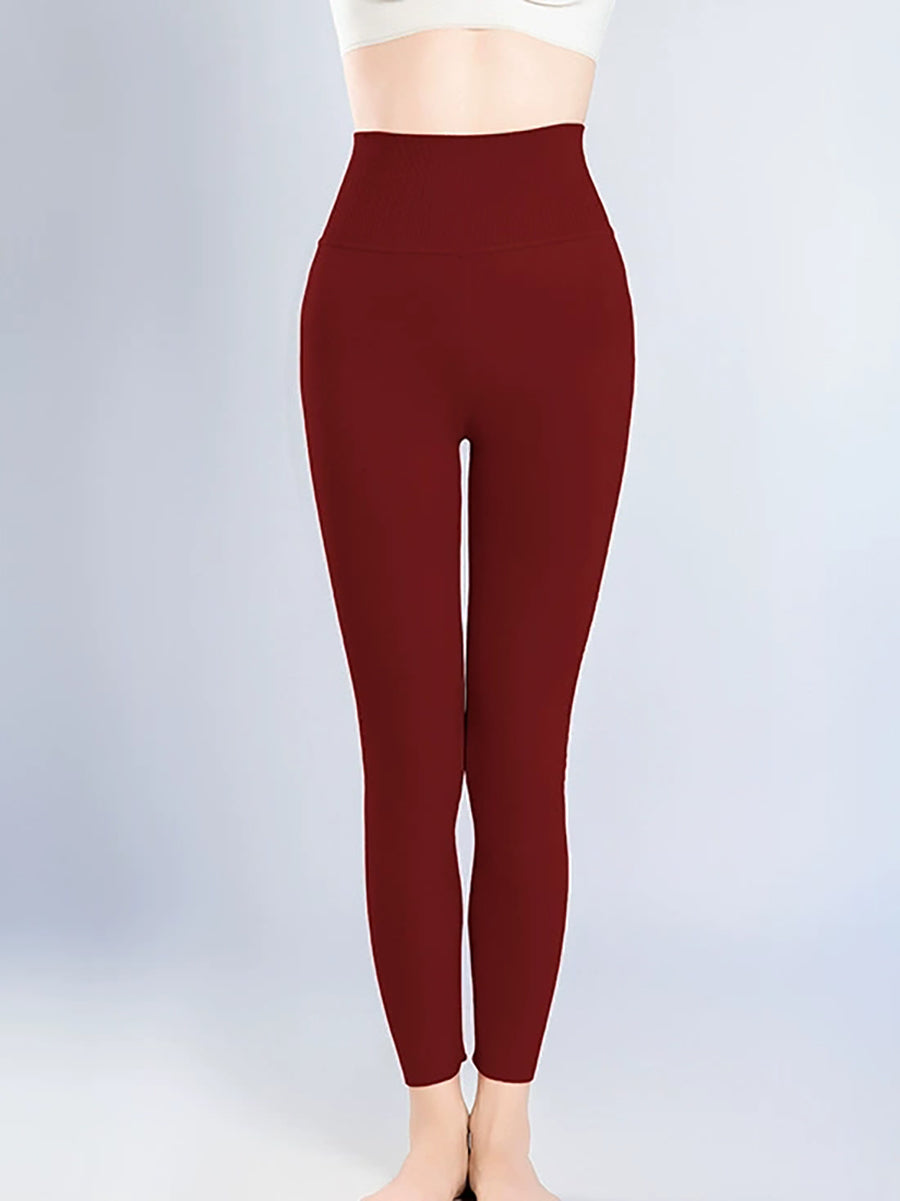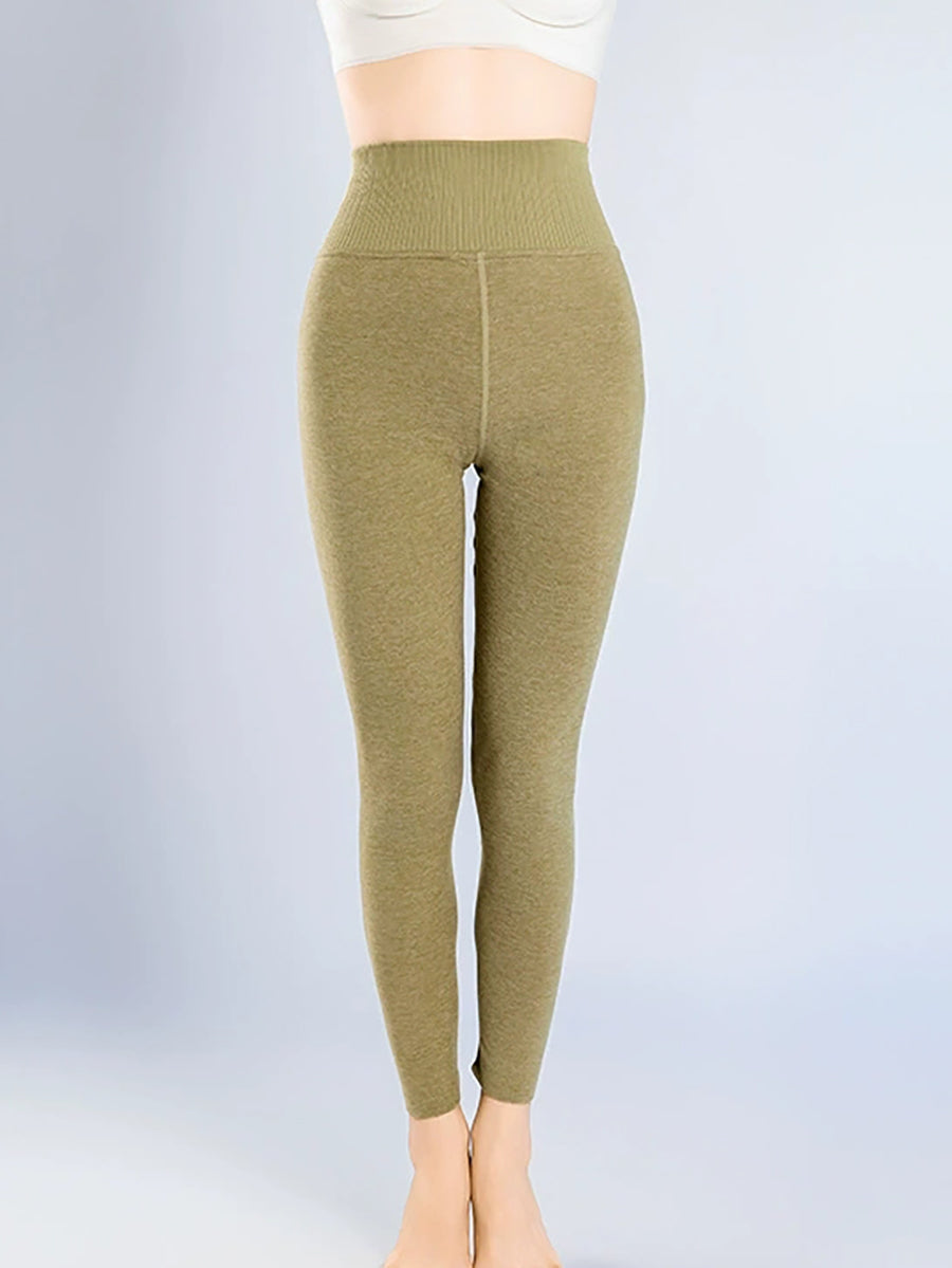 Calça legging feminina de inverno, quente e lisa, de cintura alta.