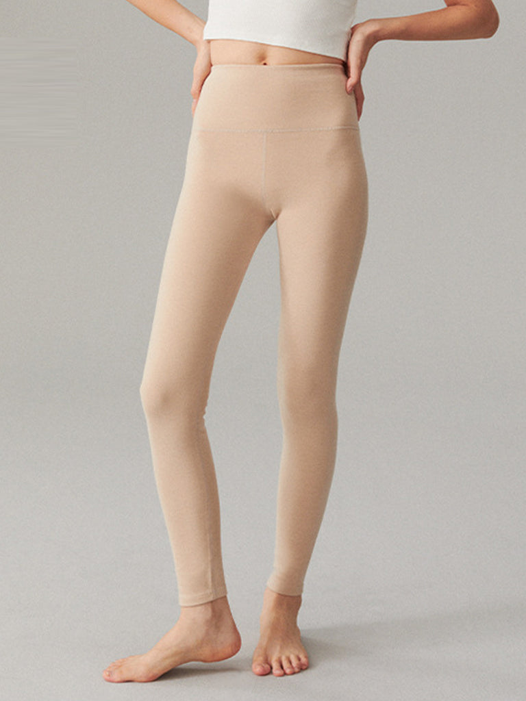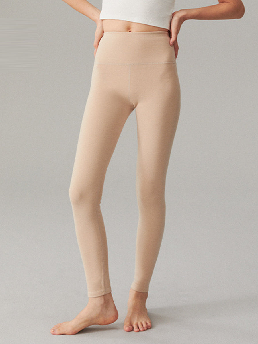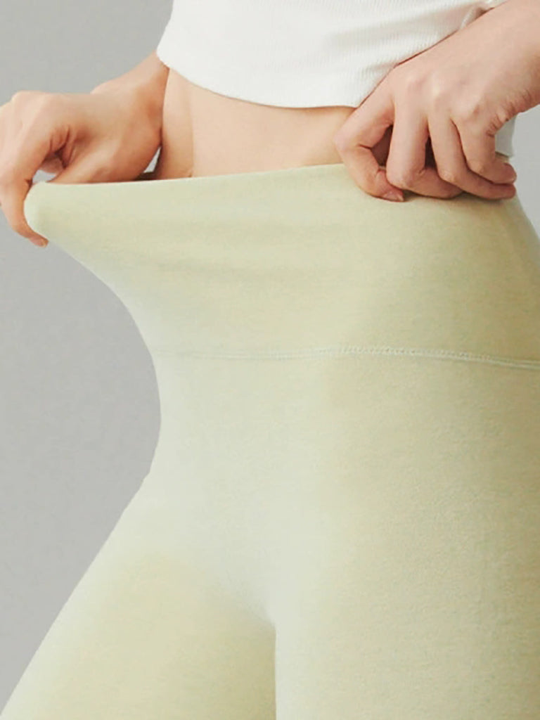 Leggings femininas de inverno, quentes, de cor lisa e cintura alta.