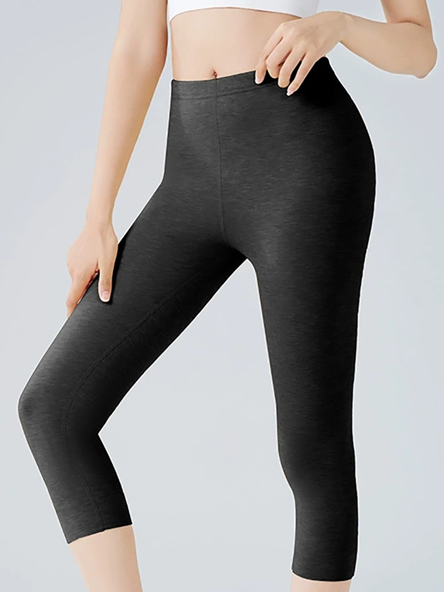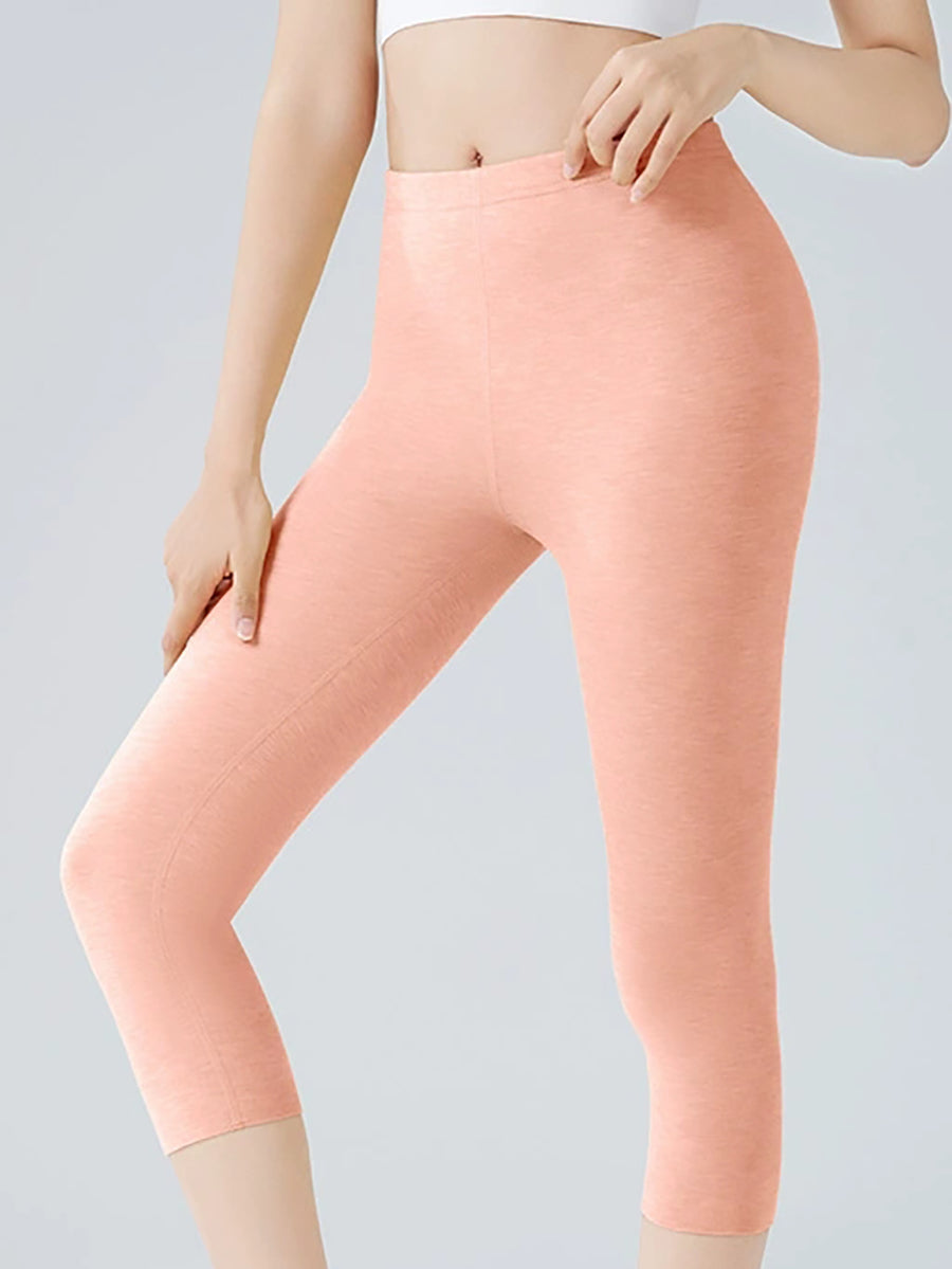 Calça legging curta feminina de inverno, quente e lisa, de cintura alta.